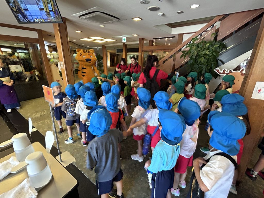 楽しかったお泊り保育もこれで終わりです。最後はしぎとらくんに見送ってもらいバスに乗り込みました。