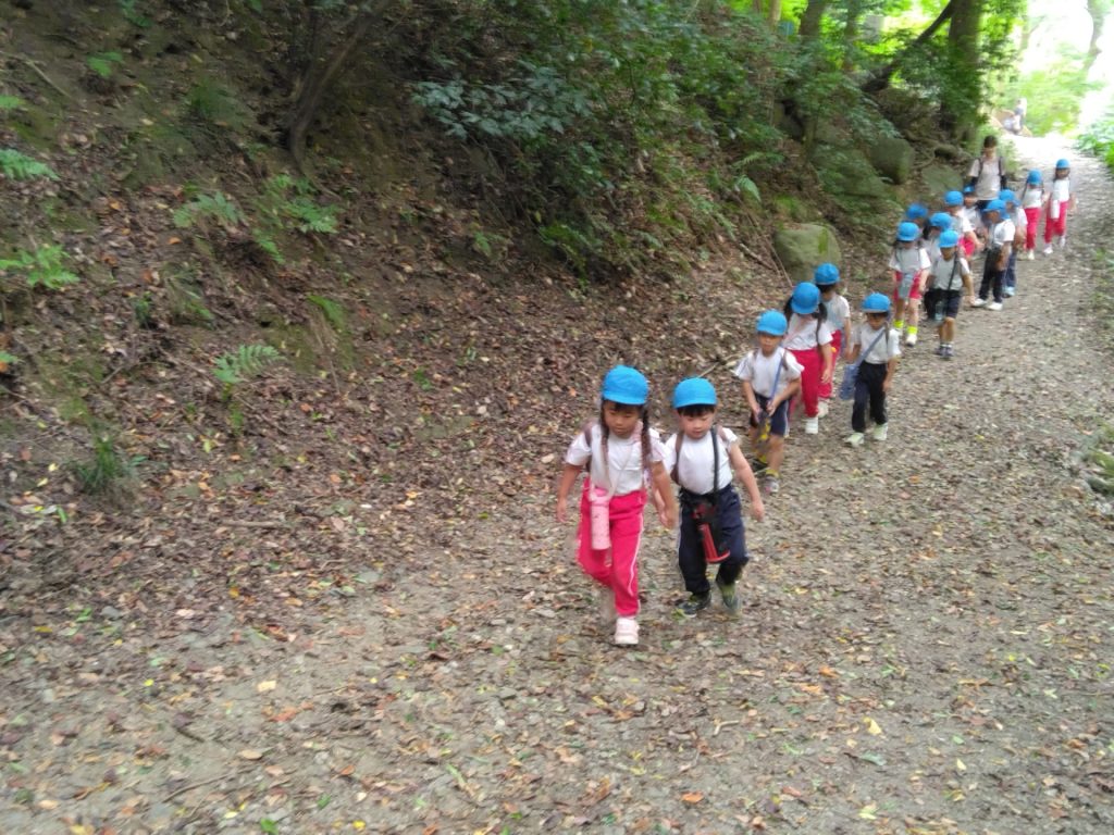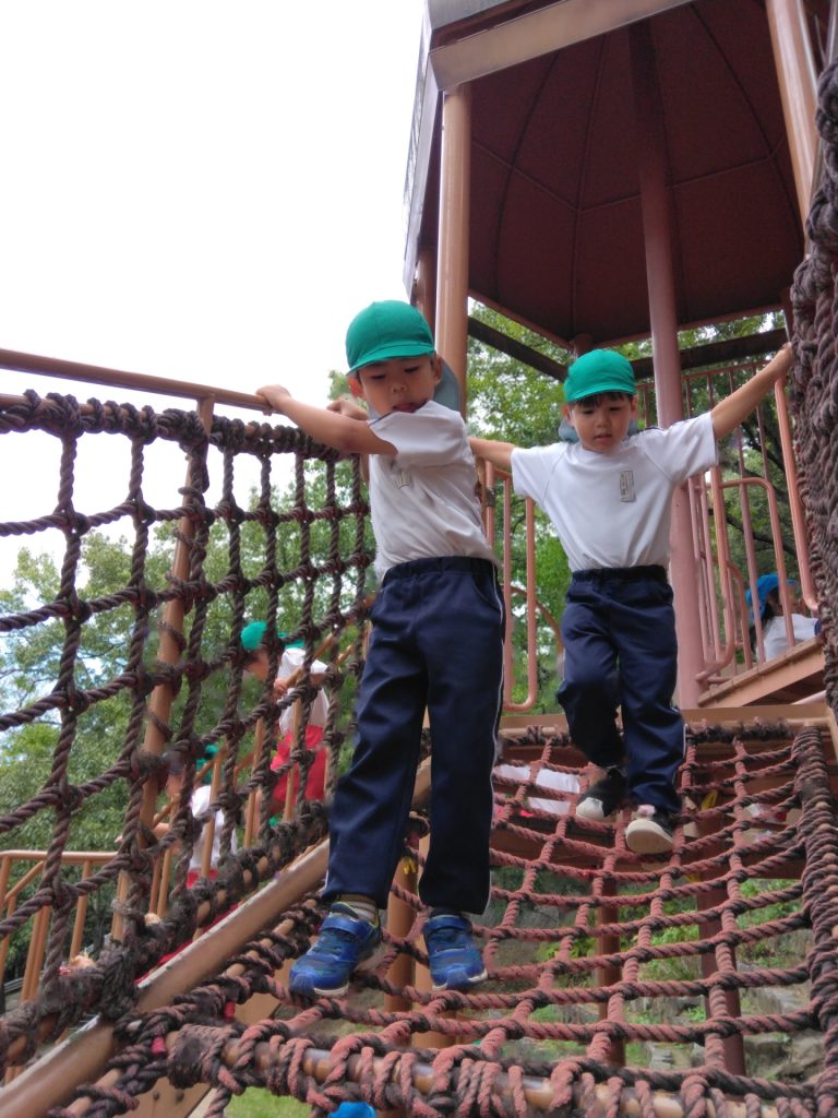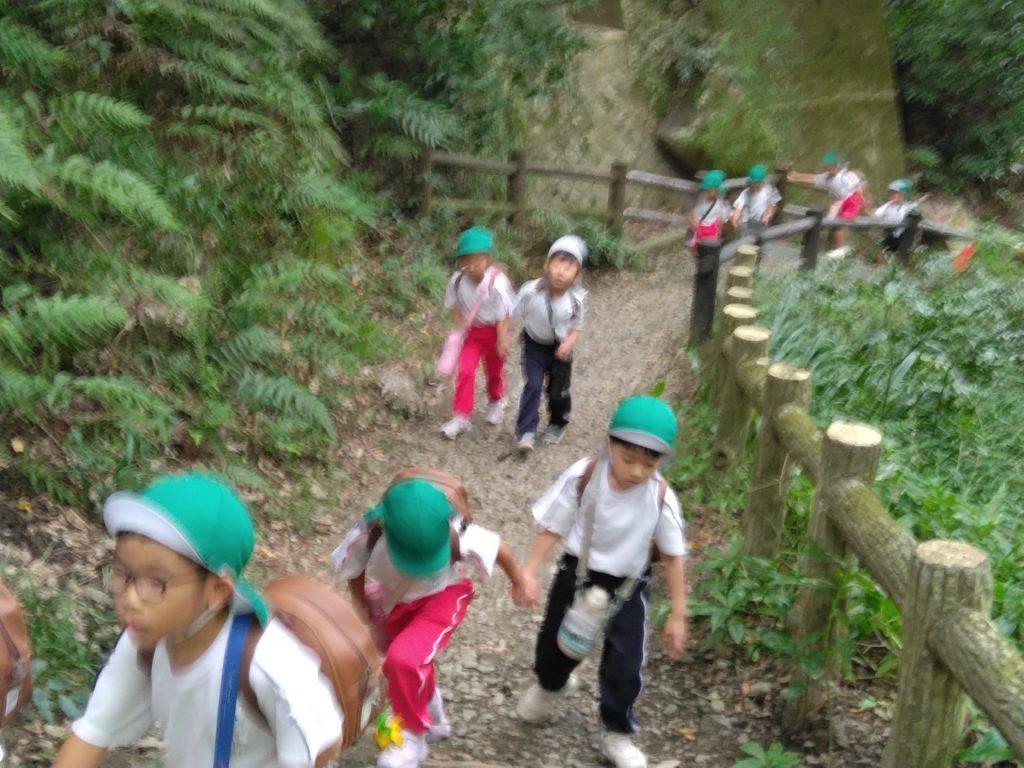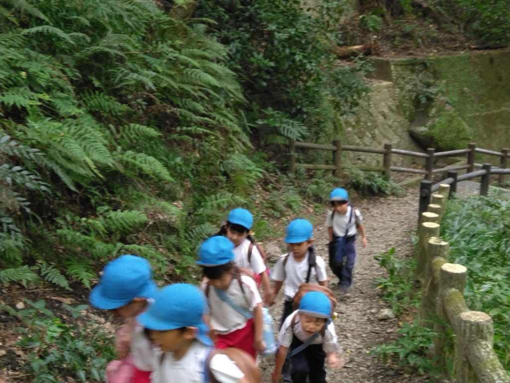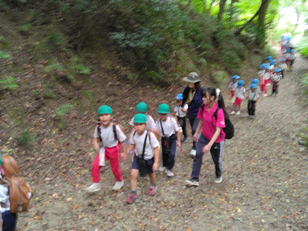 今日は4・5歳児クラスが枚岡公園へどんぐり拾いに行きました。電車に乗って出かけました。
