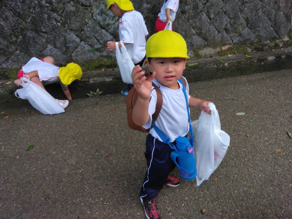 きれいなどんぐりを厳選しながら拾っている子、とりあえず見つけたどんぐりは全部拾う子、みどりのどんぐり、帽子付きどんぐりなどレアな物をうれしそうに集めている子など人それぞれのどんぐりひろいでした😁