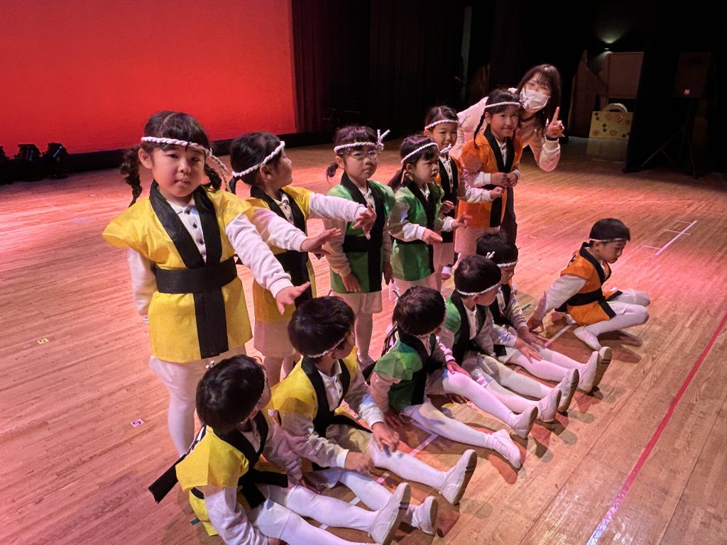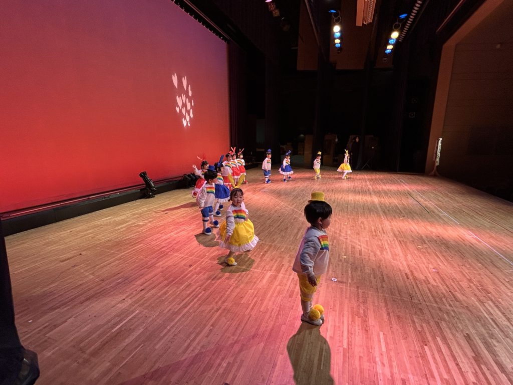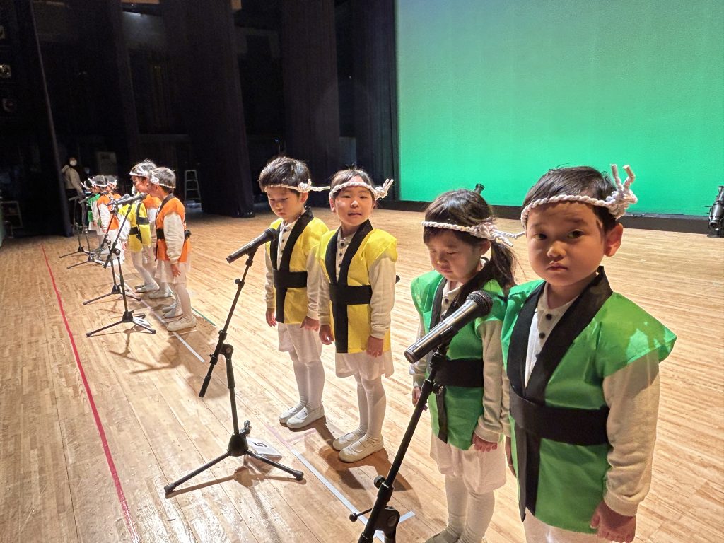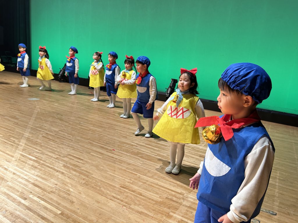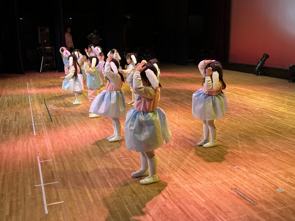 いよいよ明日は発表会です。今日は最後の練習、ほかのクラスのおともだちの頑張りをみんなで見学に行きました。約1ヶ月間練習してきた成果をおうちの人にみてもらうのを子どもたちも楽しみにしています。