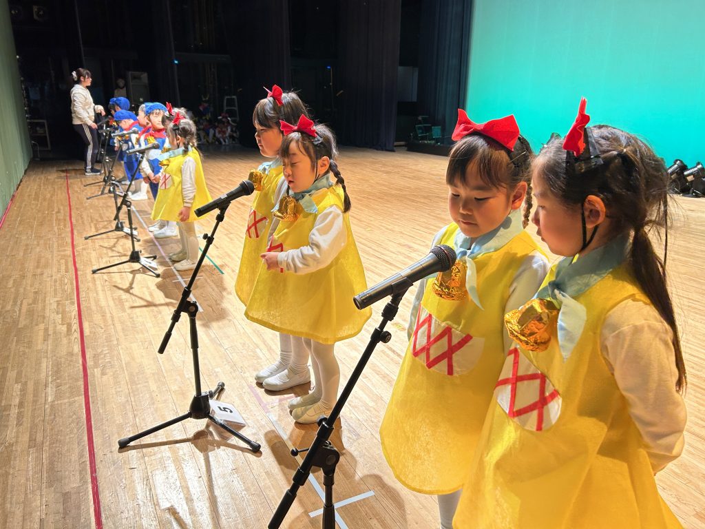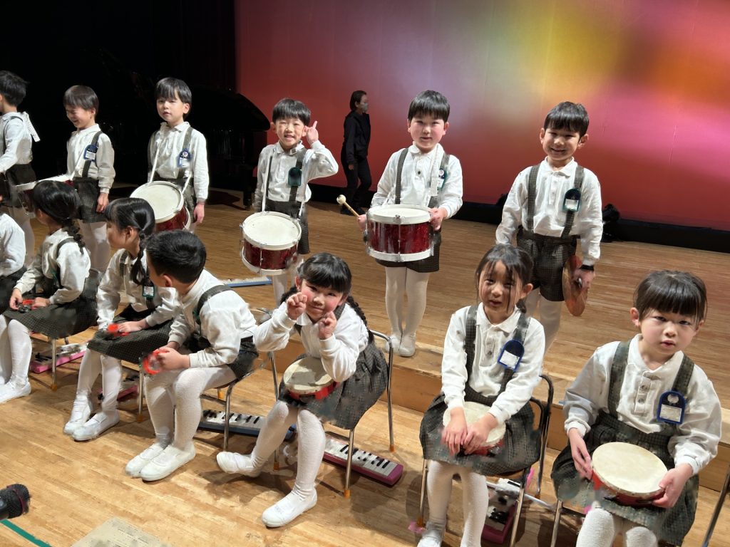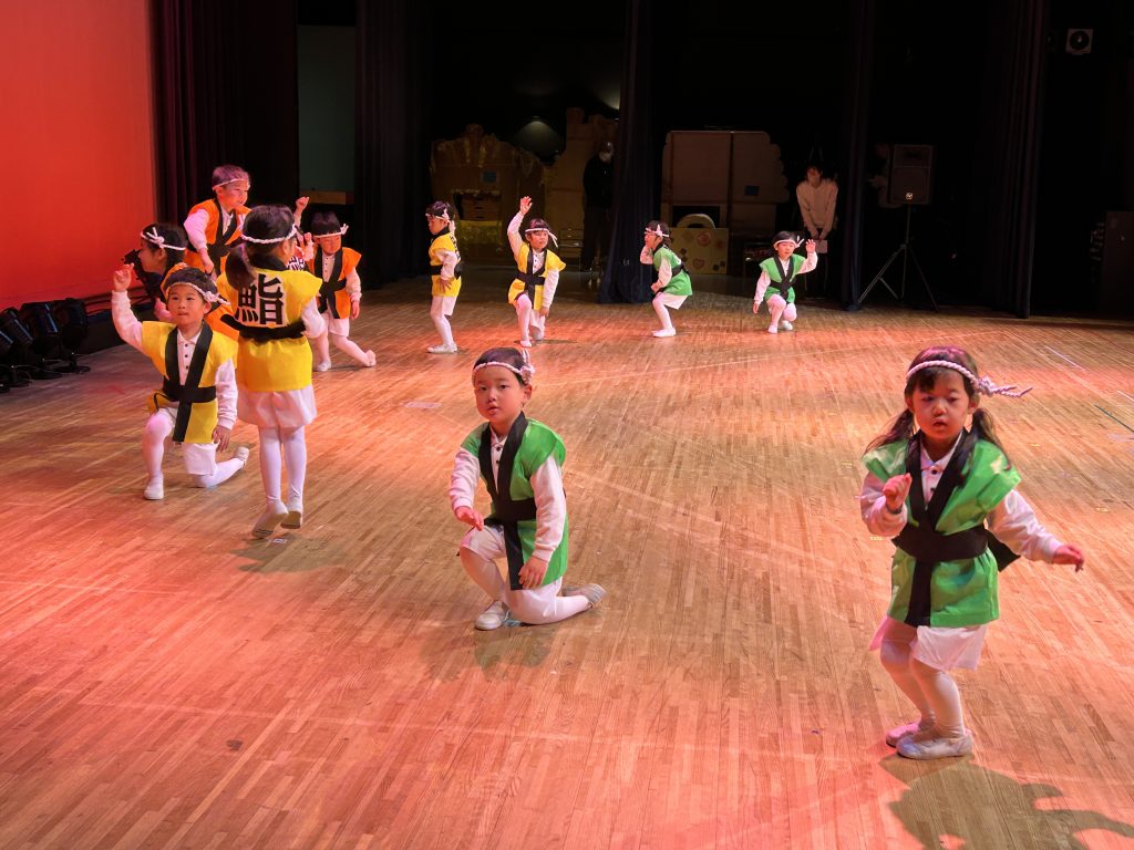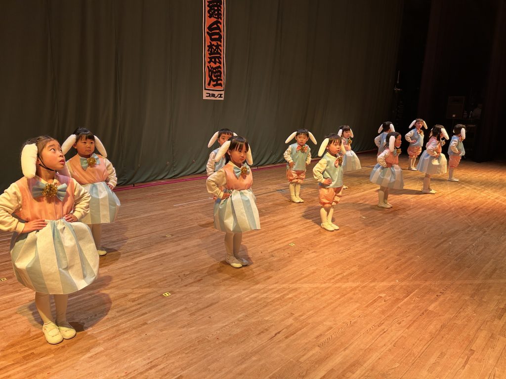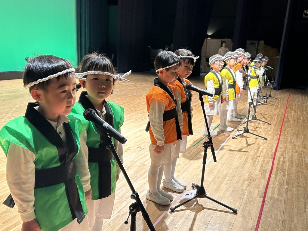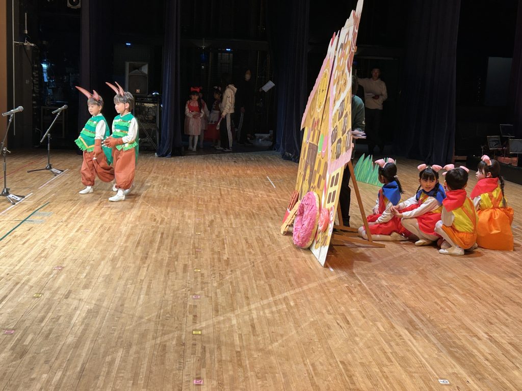 いよいよ明日は発表会です。今日は最後の練習、ほかのクラスのおともだちの頑張りをみんなで見学に行きました。約1ヶ月間練習してきた成果をおうちの人にみてもらうのを子どもたちも楽しみにしています。