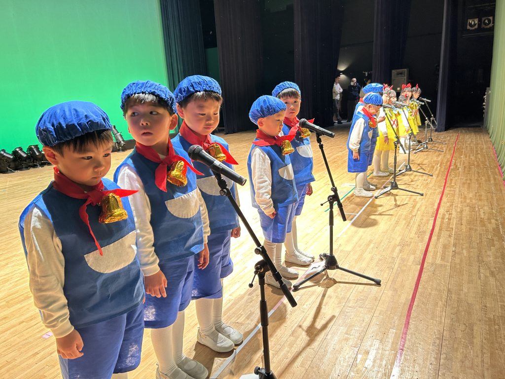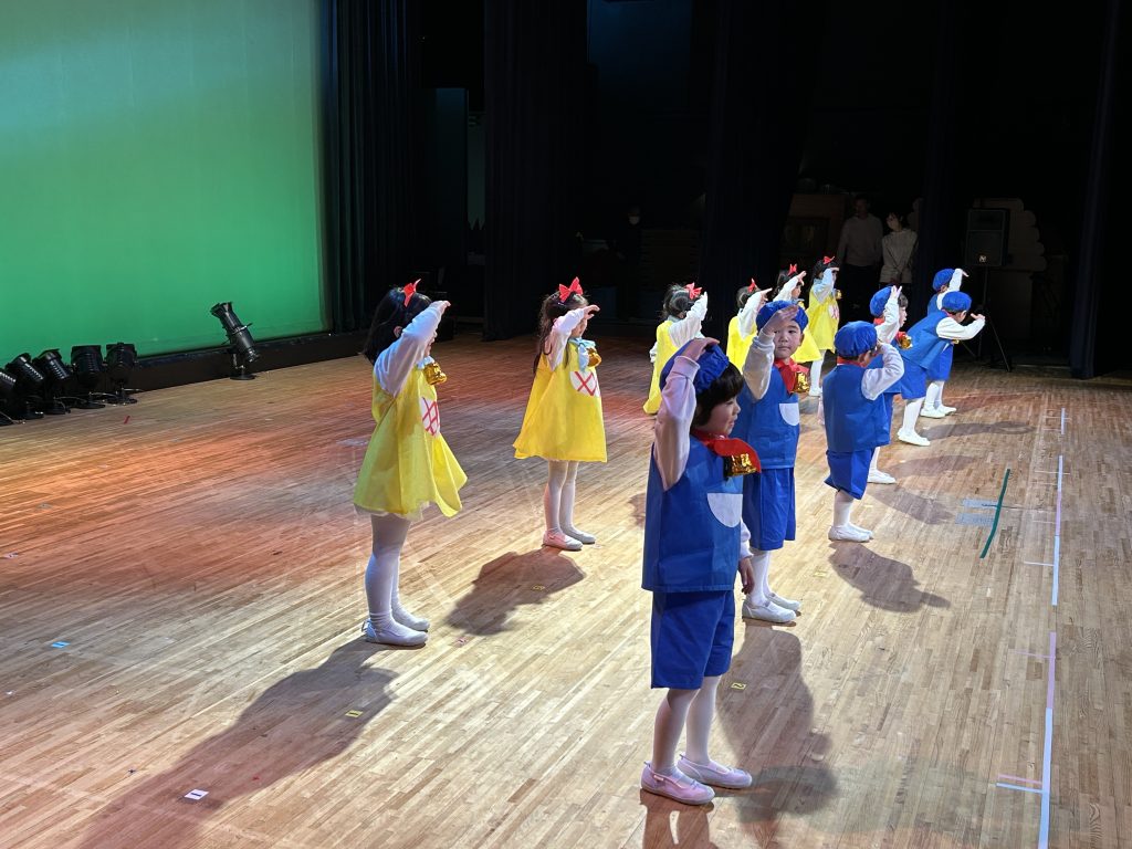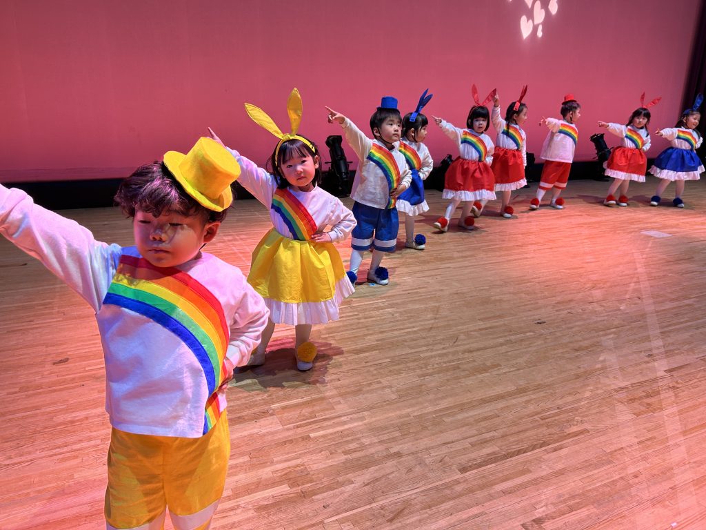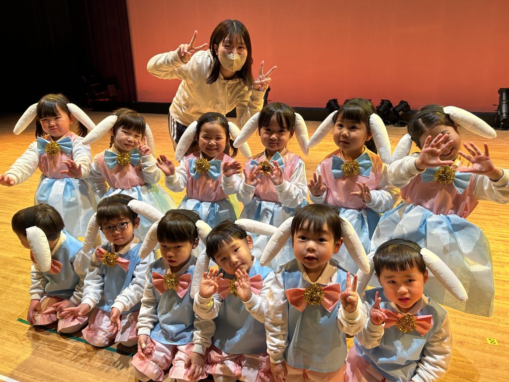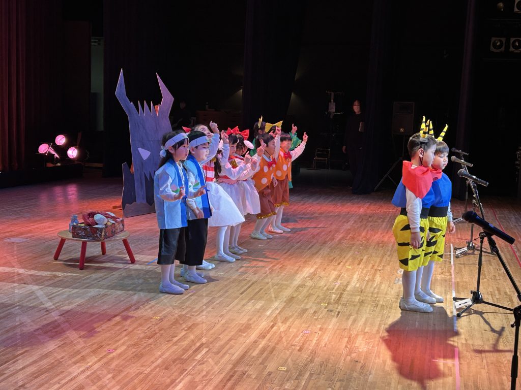 いよいよ明日は発表会です。今日は最後の練習、ほかのクラスのおともだちの頑張りをみんなで見学に行きました。約1ヶ月間練習してきた成果をおうちの人にみてもらうのを子どもたちも楽しみにしています。