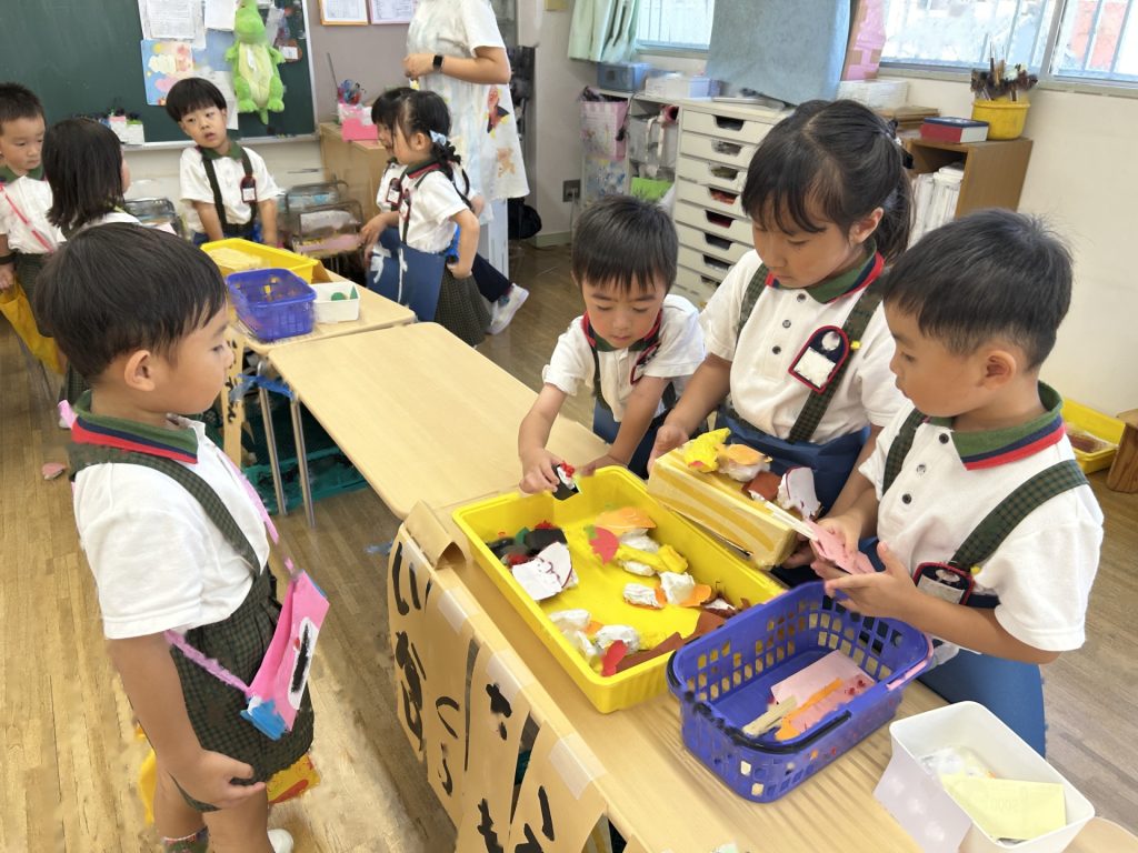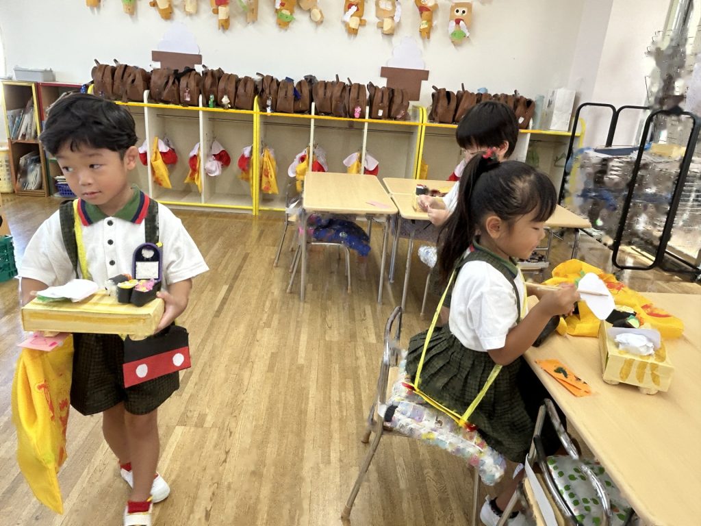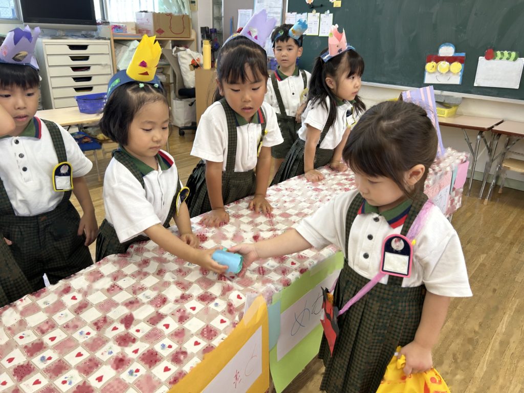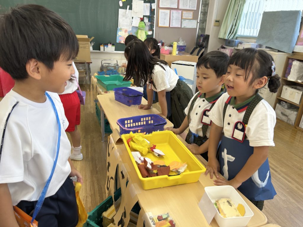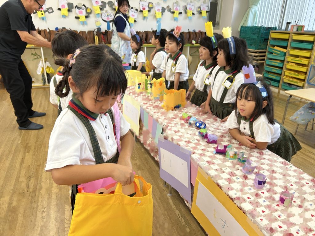 1人3個だよと話をしてから始めたのですが、7個買っているおともだちもいました(後で返却にいきました)😁みんなそれぞれおみせやさんごっこを楽しんでいましたよ。