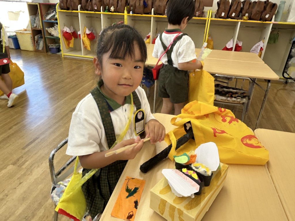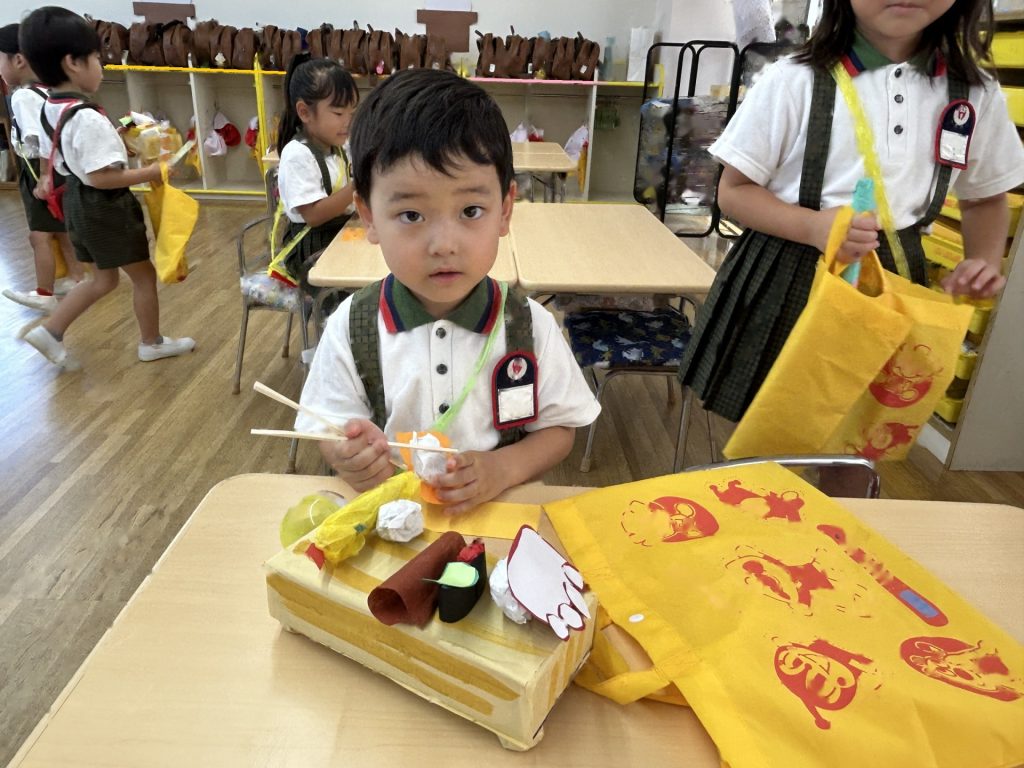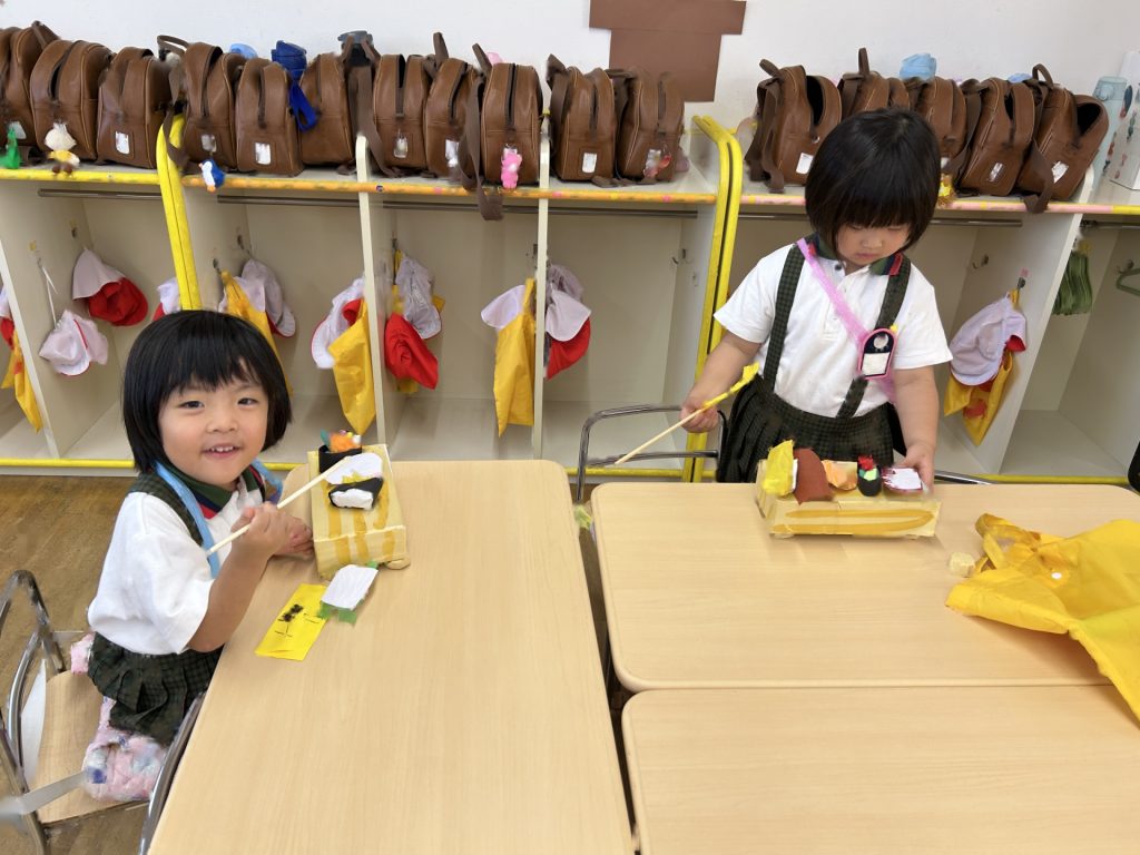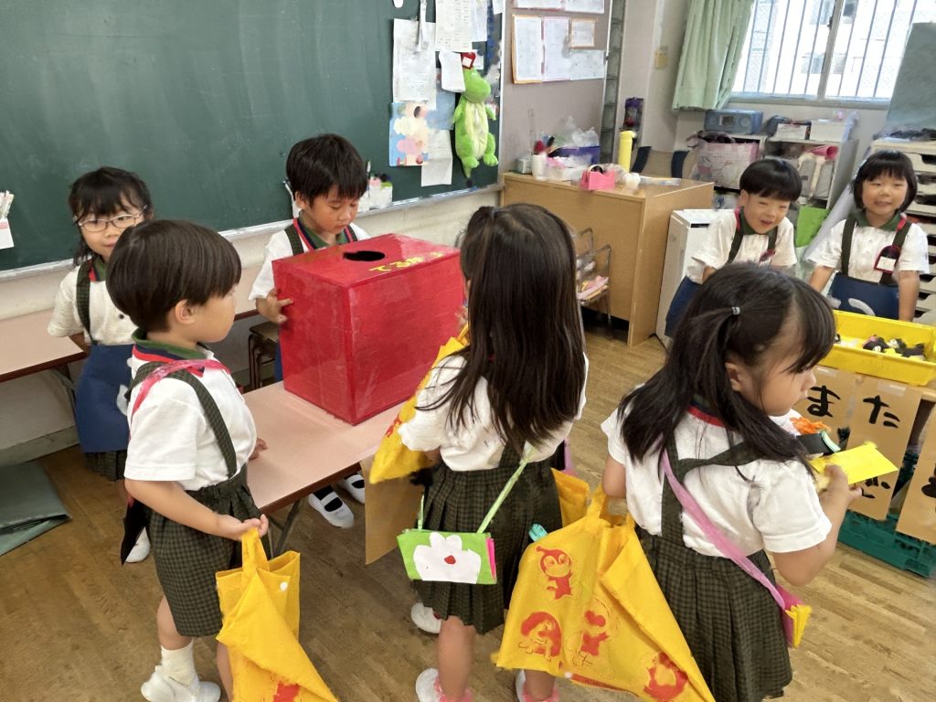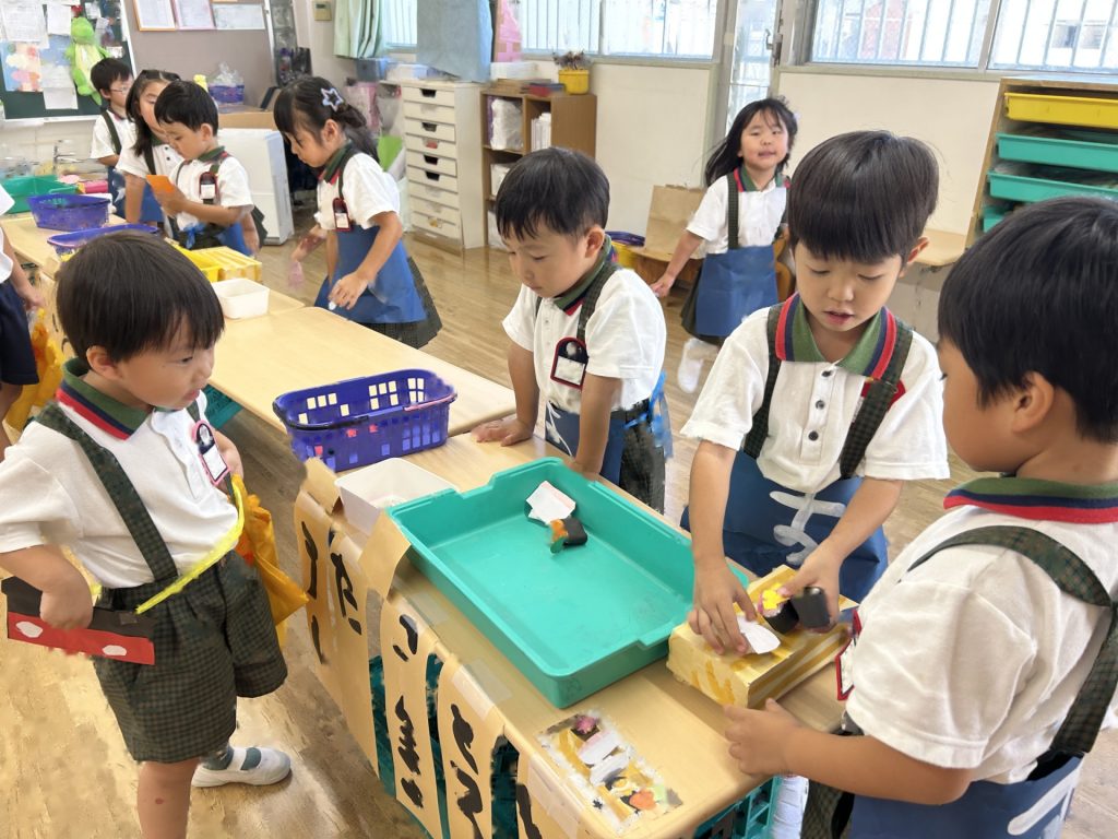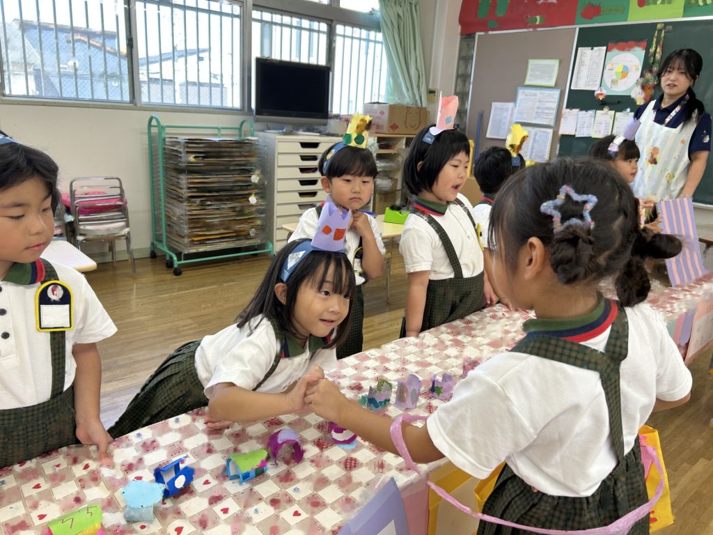 1人3個だよと話をしてから始めたのですが、7個買っているおともだちもいました(後で返却にいきました)😁みんなそれぞれおみせやさんごっこを楽しんでいましたよ。