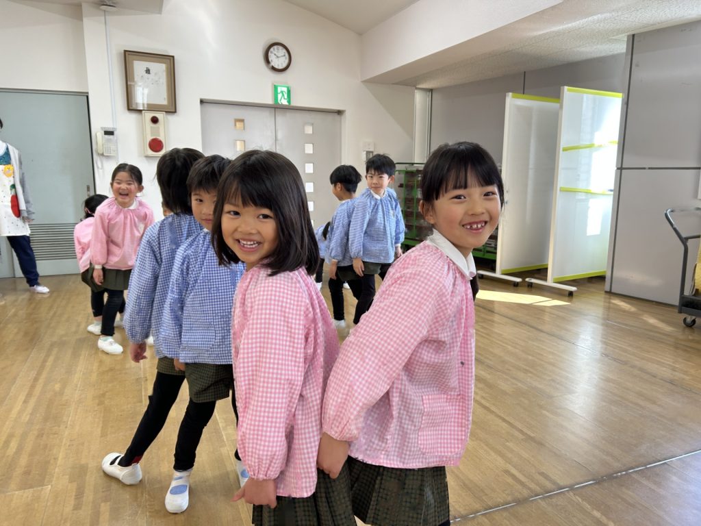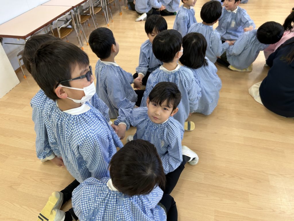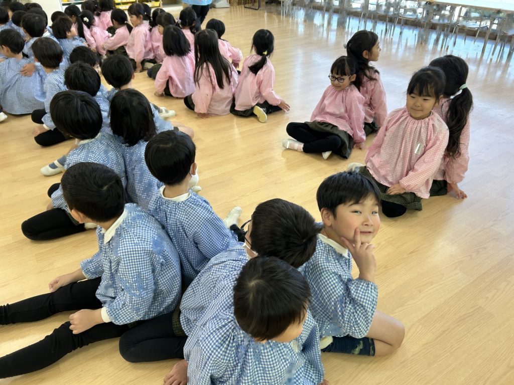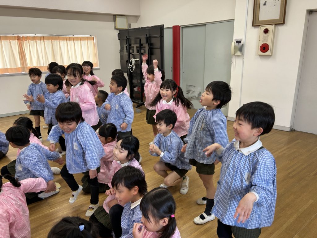 だんだんと難易度があがり最後は「ゴールデンレトリバー」等長い名前になりました。人数より多く集まった場合にどうやって分かれるかがうまくいかずに止まっているグループが多かったです。例えば5人組の時に6人のグループが誰も抜けずにずっとそのまま。中にはじゃんけんで決めているグループもありましたが、周りを見ながらほかの少ないグループを見つけて、さっと移動できるおともだちはなかなかいず、単純なのですが実は奥が深いゲームだなと思いました😊