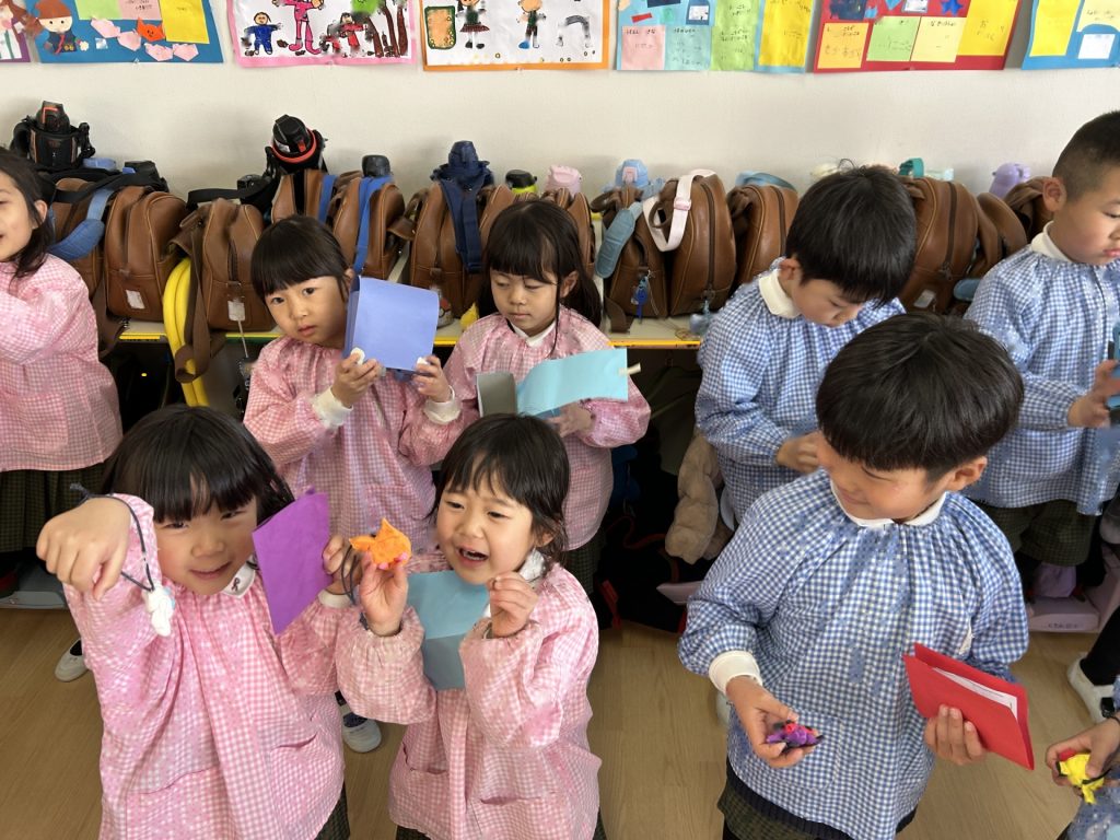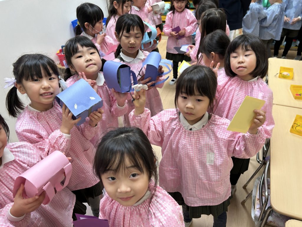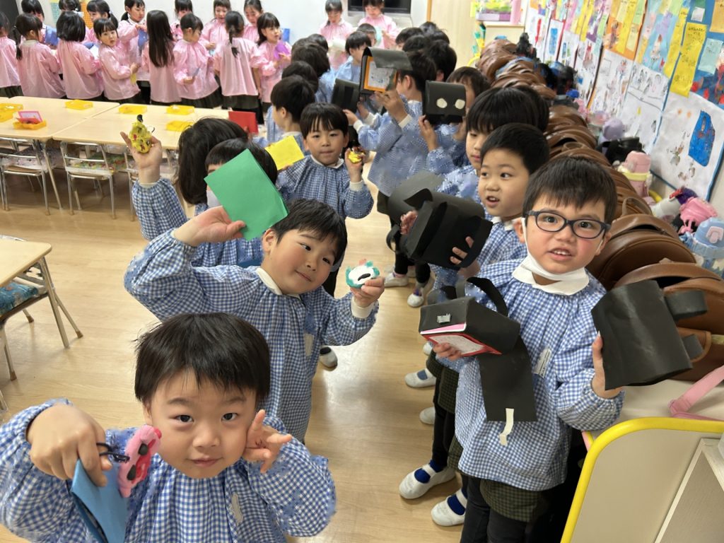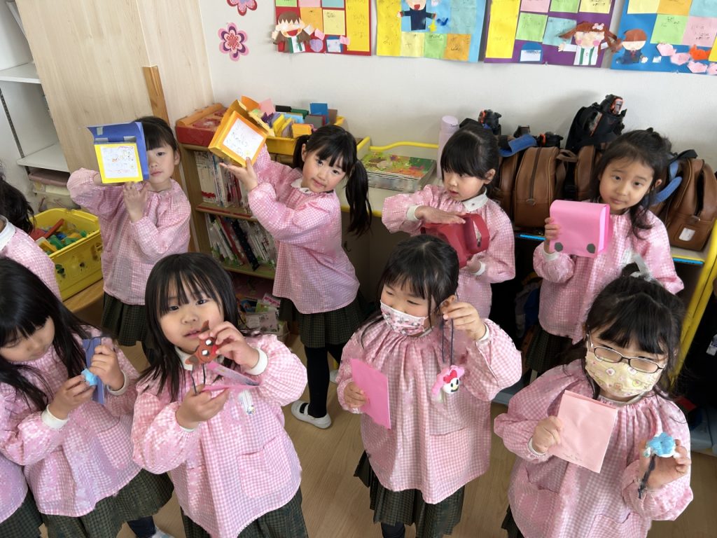 5歳児さんからは紙粘土のキーホルダーを、4歳児さんからはランドセル型の小物入れをプレゼントしました。ランドセルはお手紙でランドセルの色を聞いてその色で作ってくれましたよ🎒