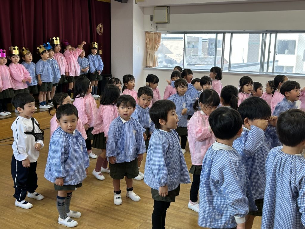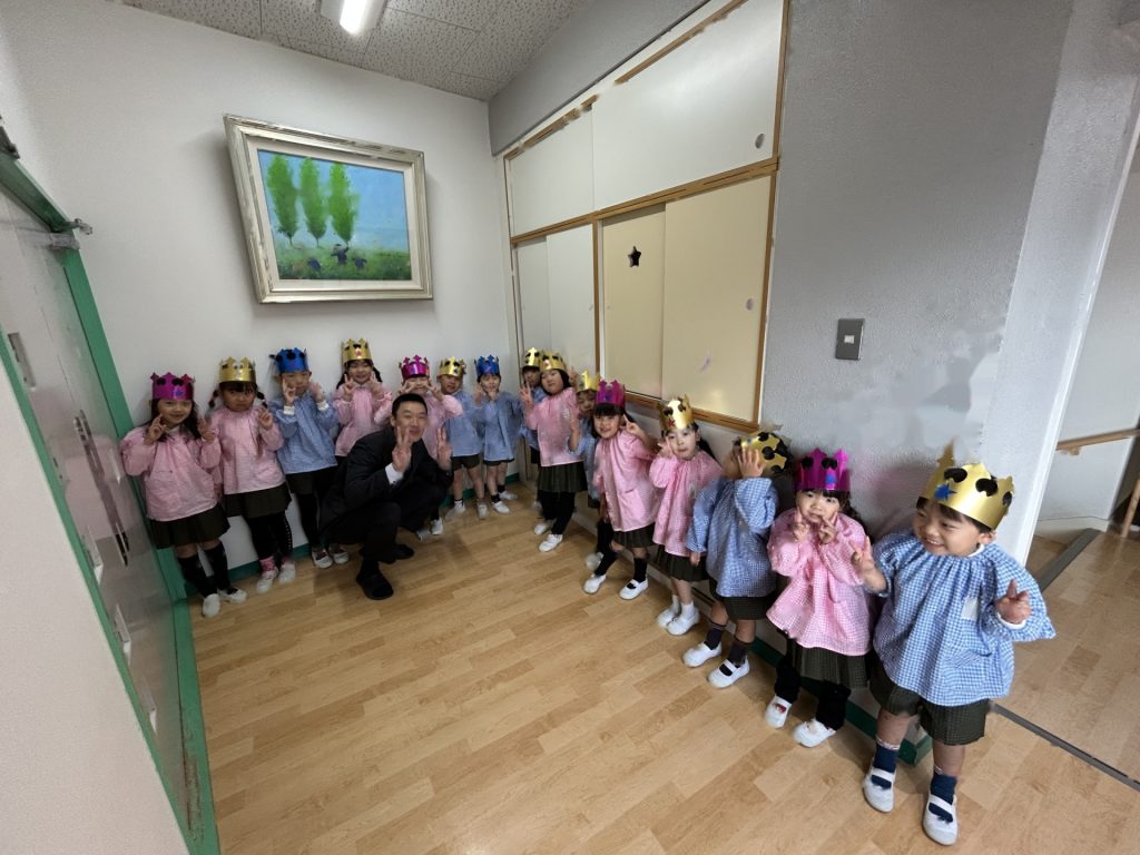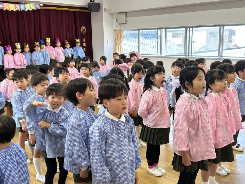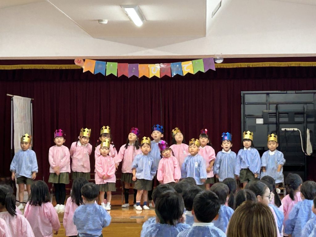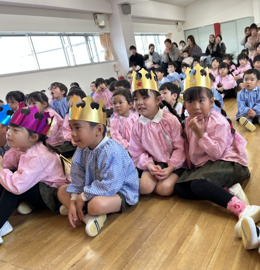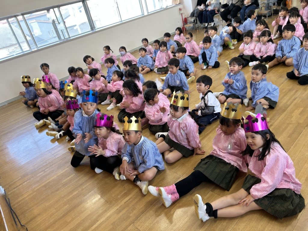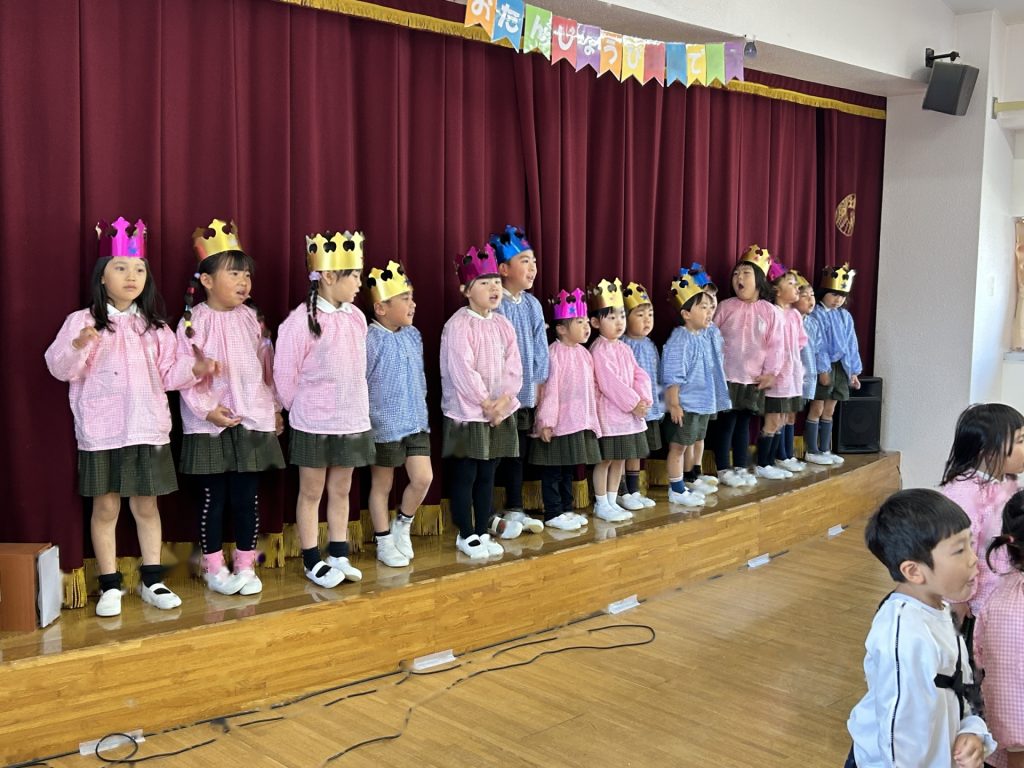 園長先生に冠をかぶせてもらって入場し、ひとりひとり発表しました。