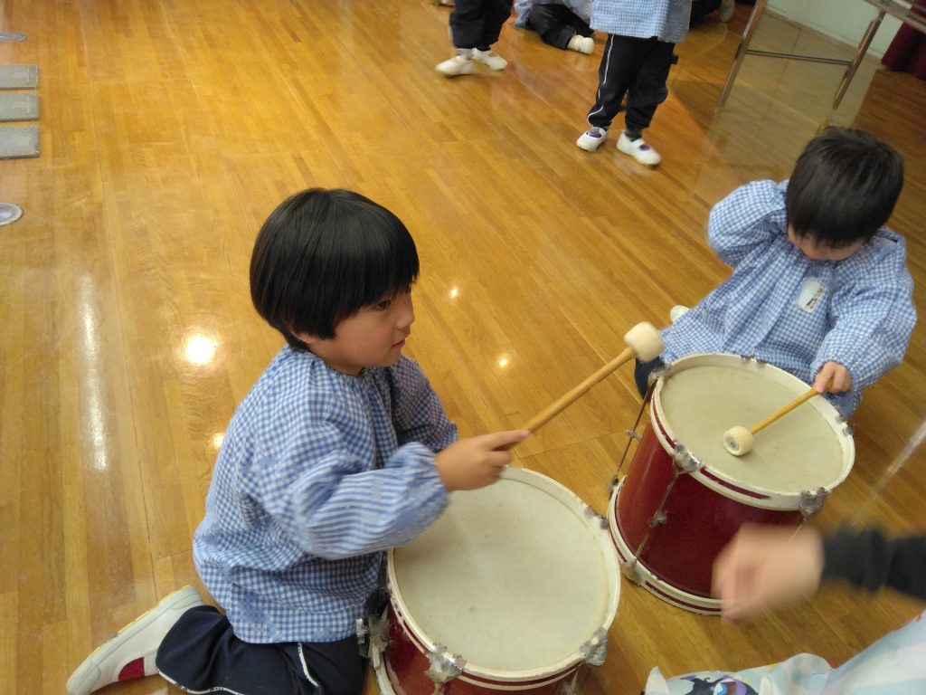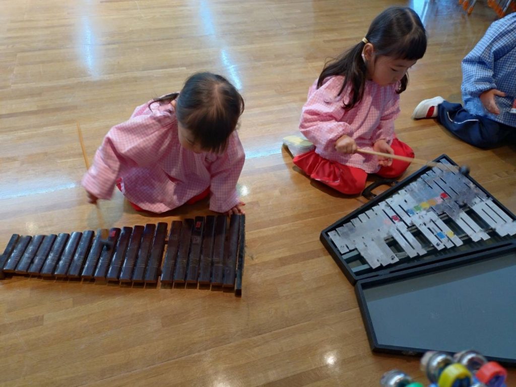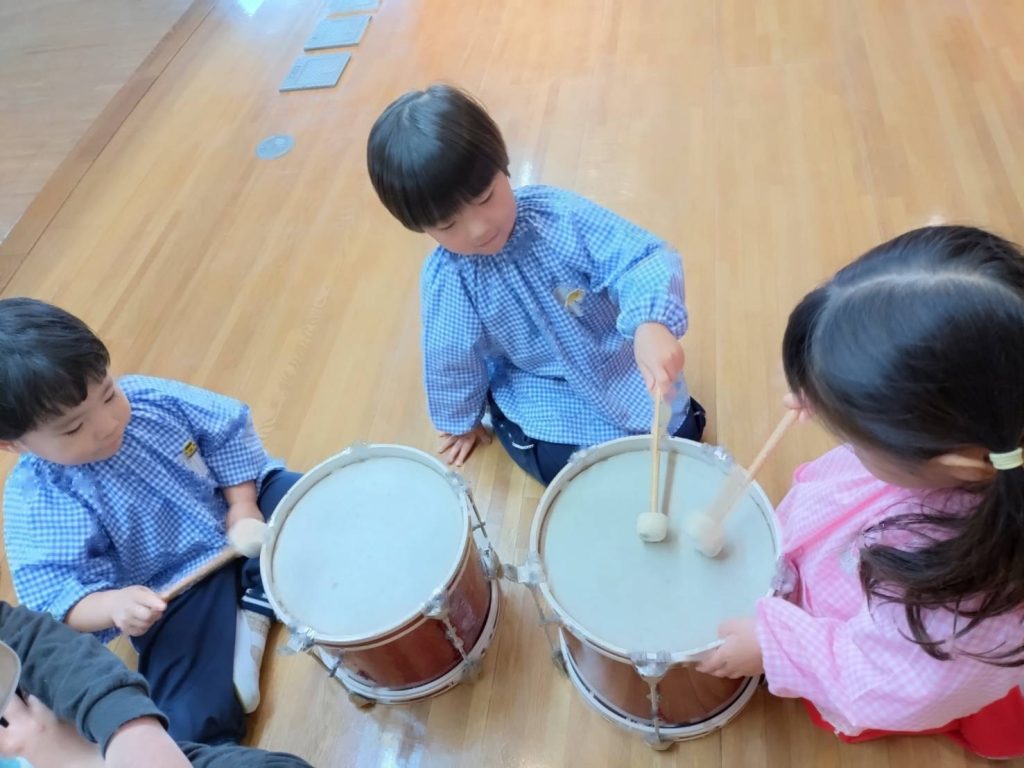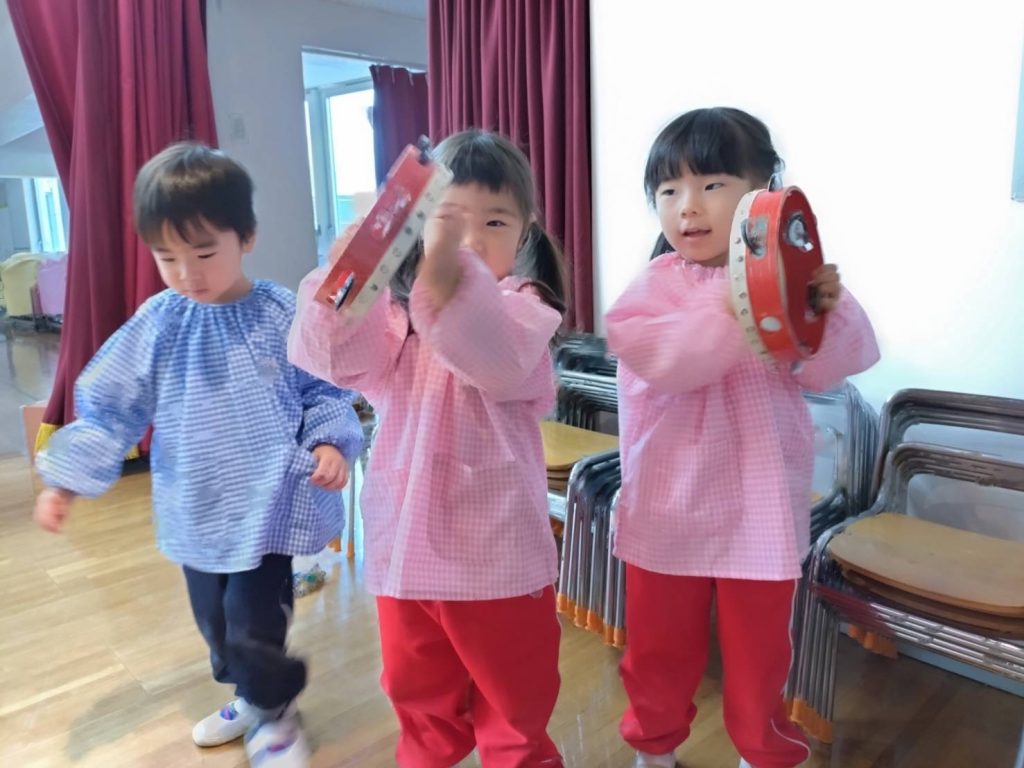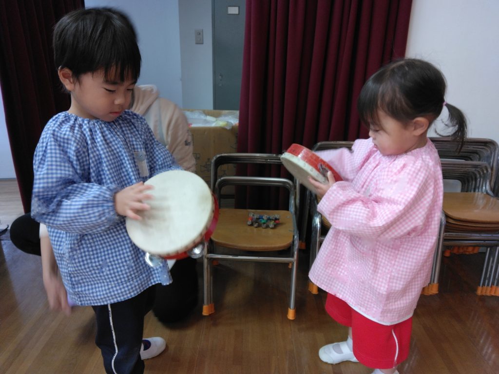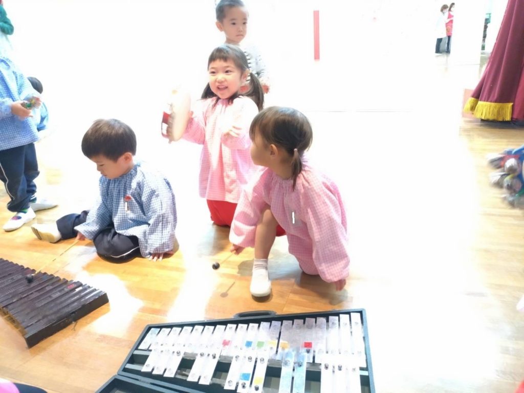 お誕生日会の後、ゆりぐみのおともだちが楽器遊びを楽しみました。