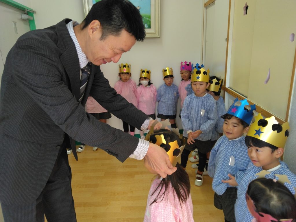 今日はももぐみ、すみれぐみ、たんぽぽぐみ、ゆりぐみのお部屋にはいってくれました。明日はあやめぐみ、こすもすぐみ、ひまわりぐみ、たんぽぽぐみのお部屋にきてくれます。