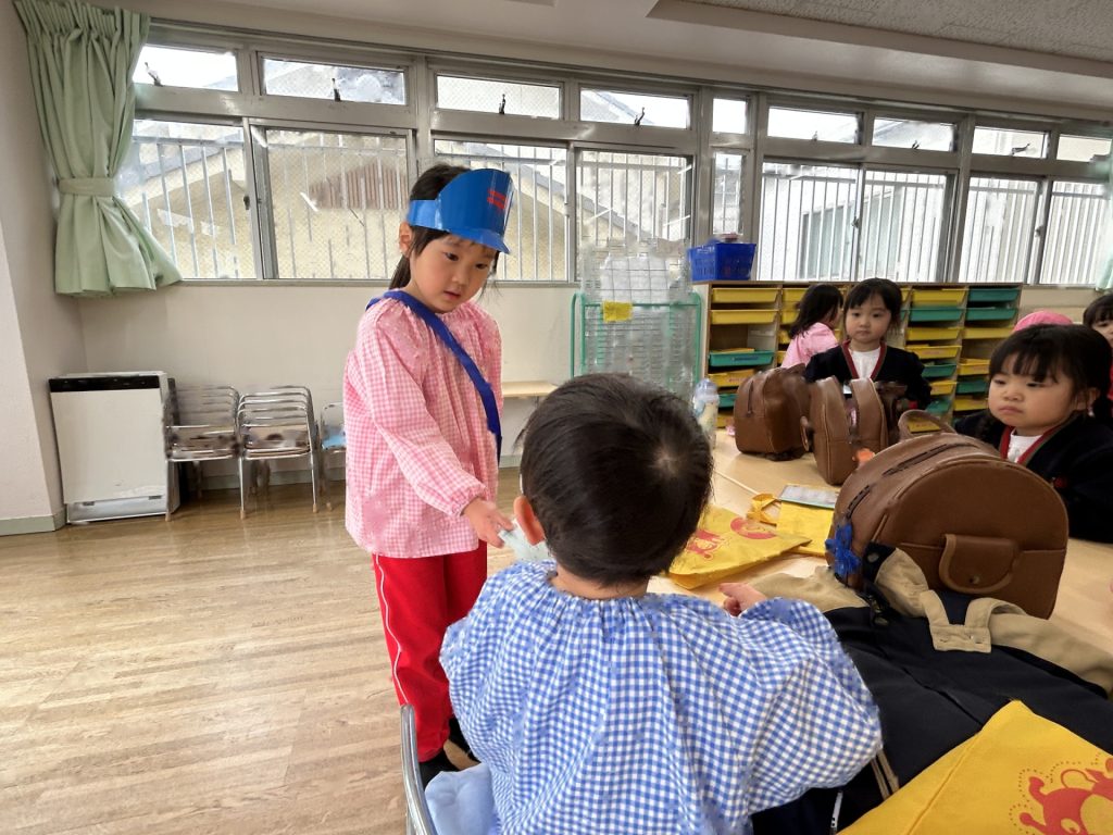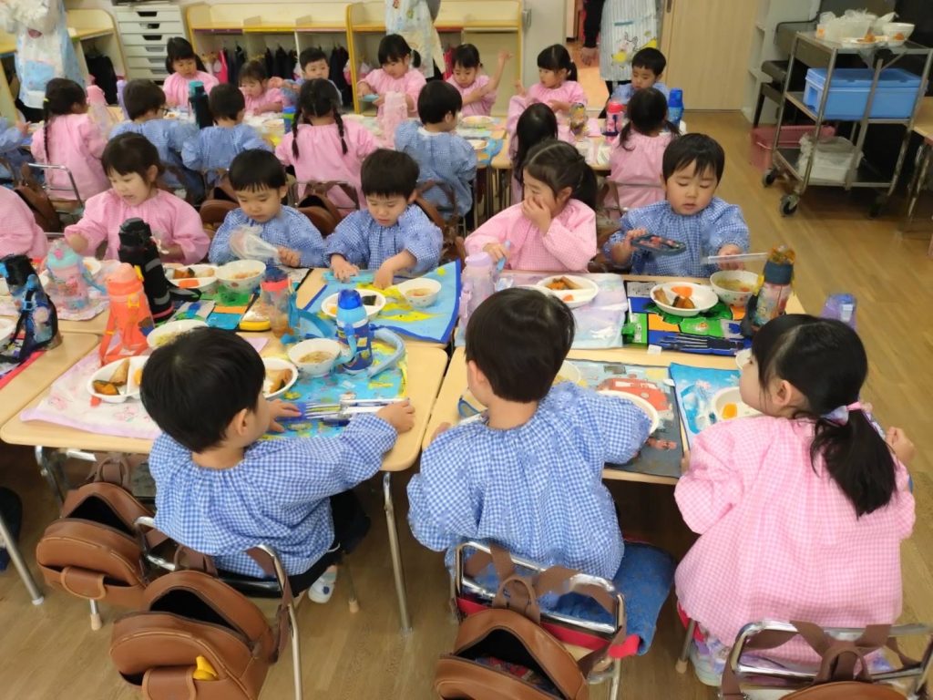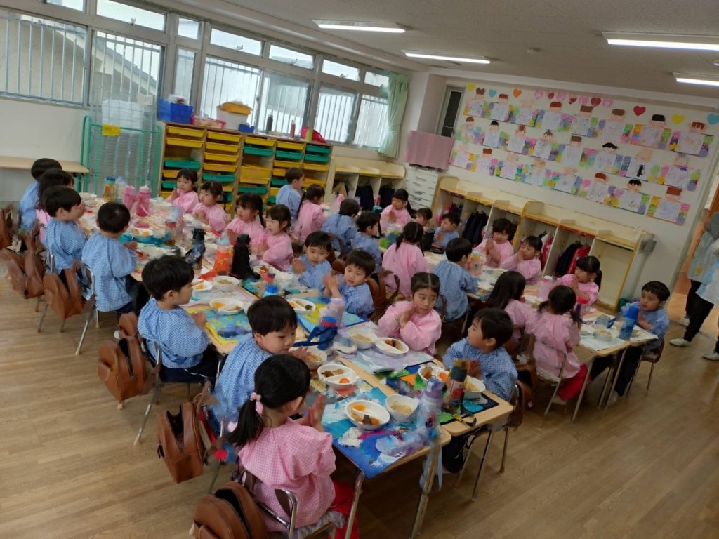 その後はすみれ組の部屋で一緒に給食を食べました。