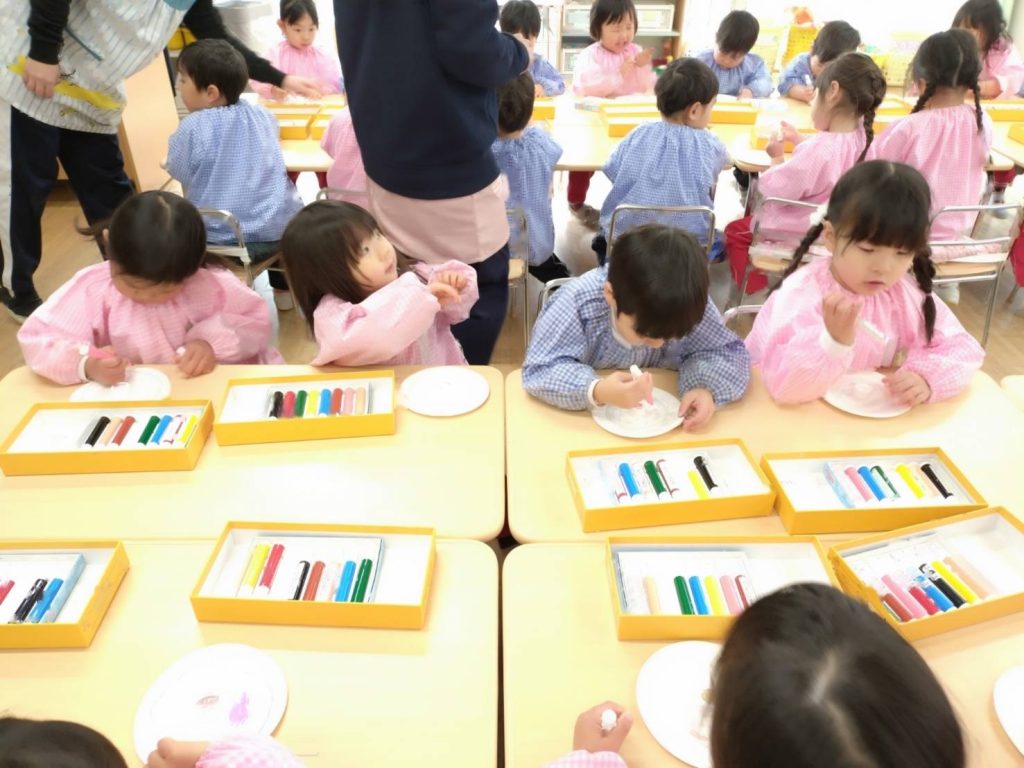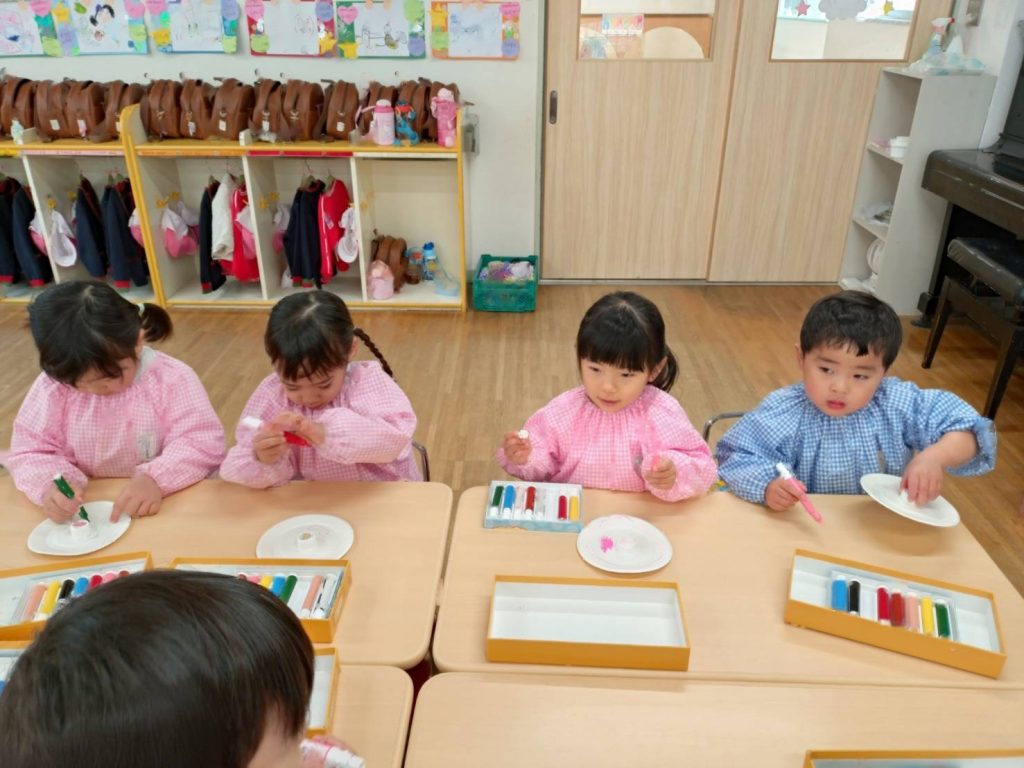 ゆりぐみさんの2月の3歳児クラス体験に今日はももぐみへお邪魔しました。