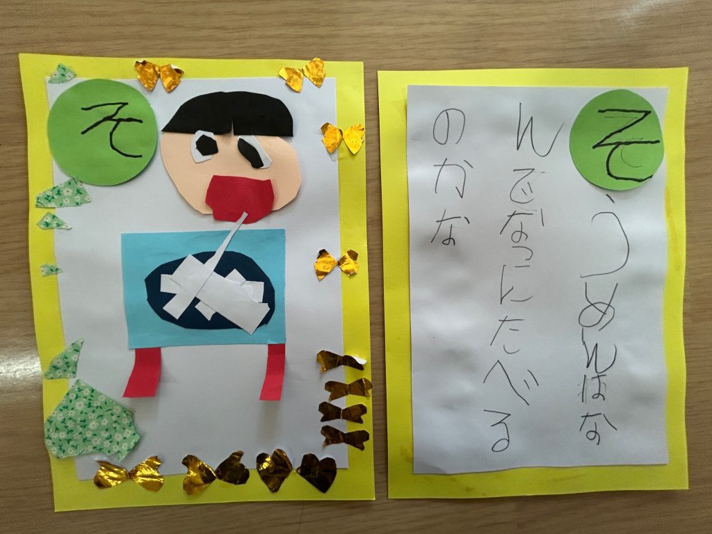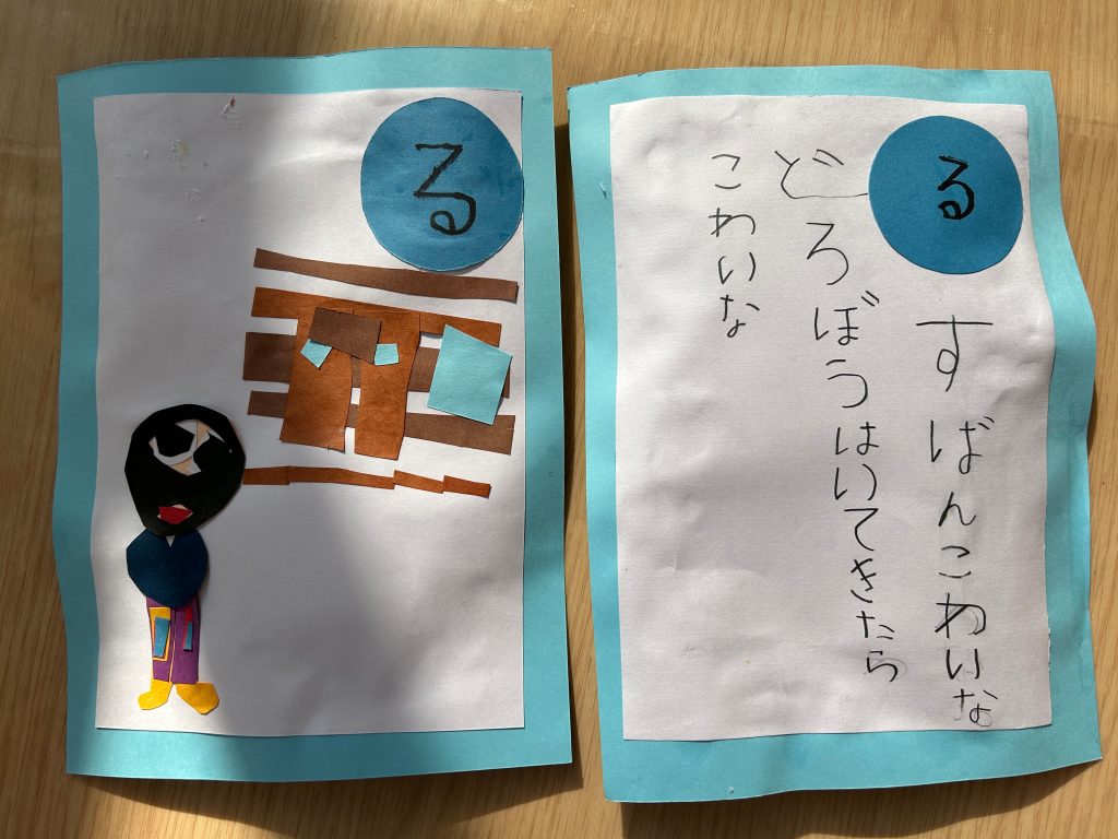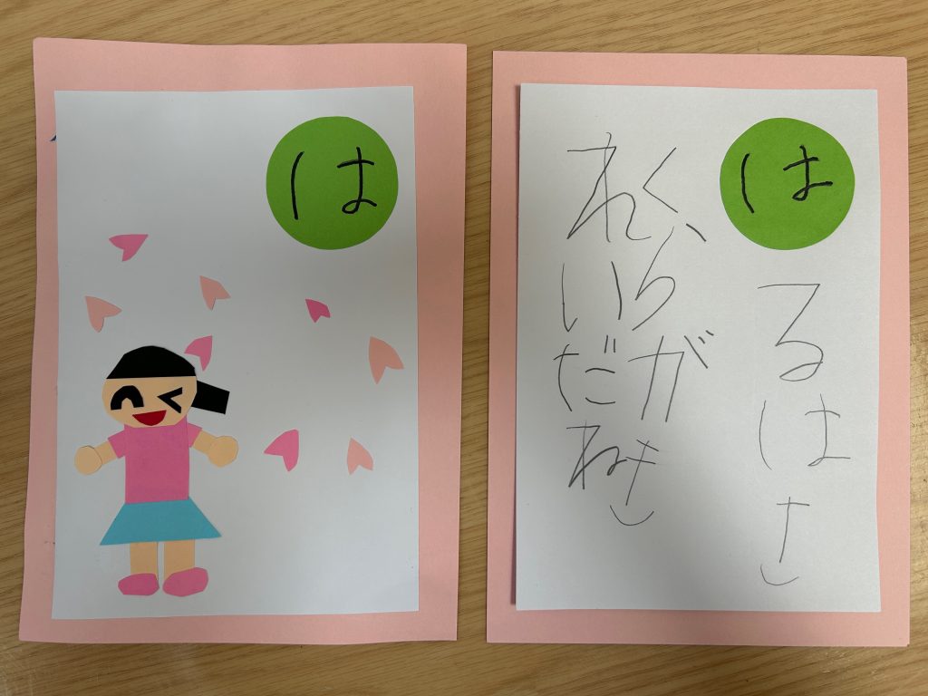 昨日お伝えしたように5歳児クラスの次の壁面は手作りカルタを飾ります。