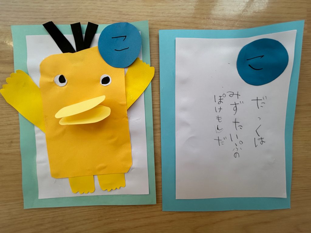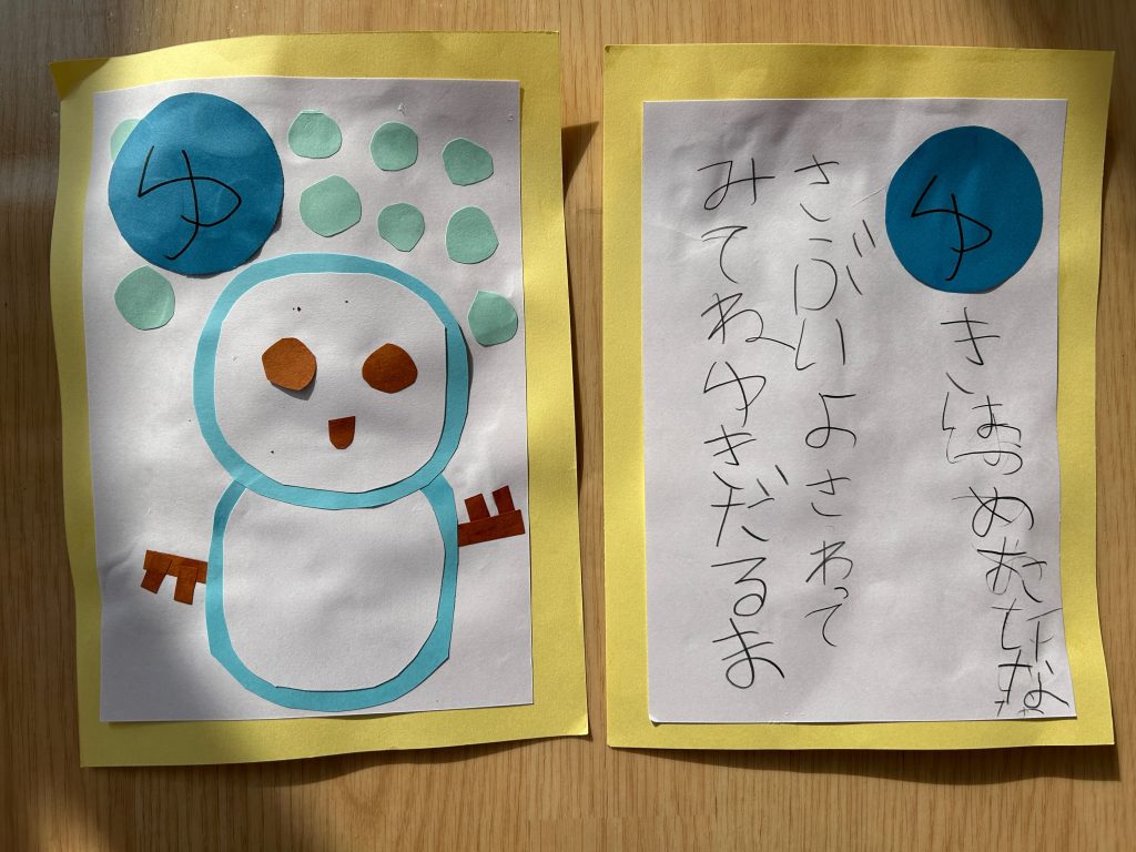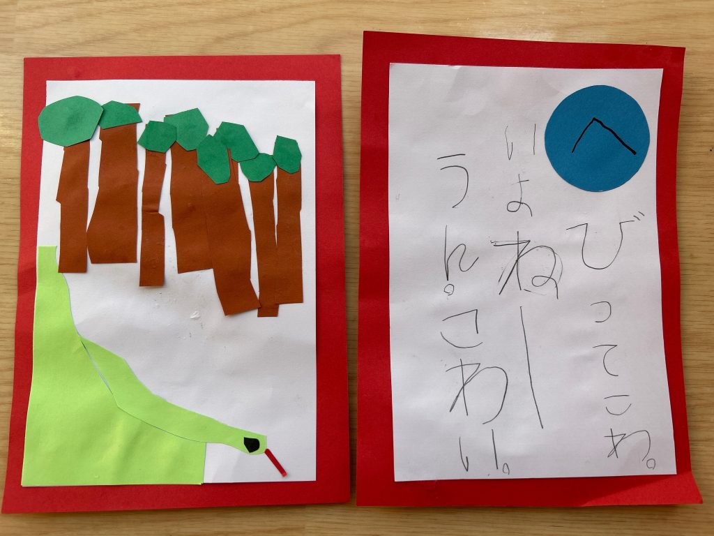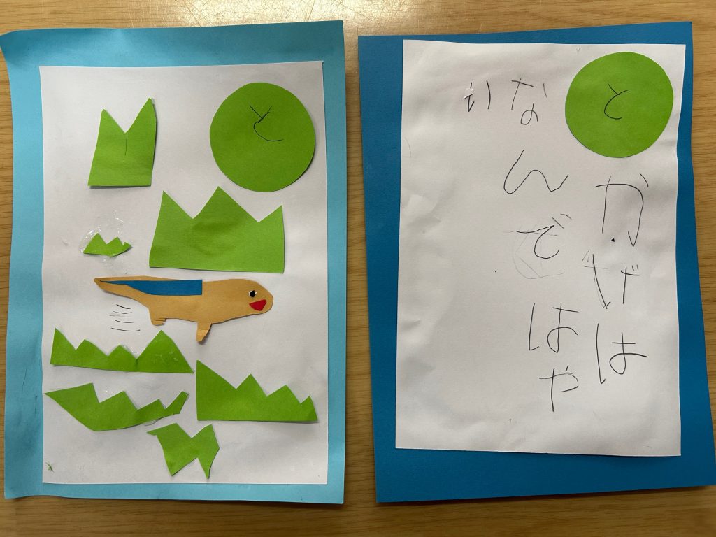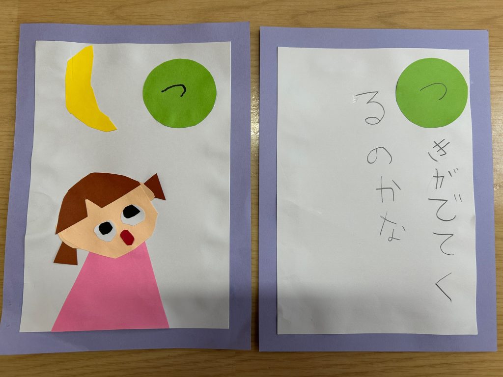 カルタ遊びをしてからカルタづくりに挑戦!!自分でいちから読み札を考えていきました。「〇〇は〇〇です」という文がおおかったのですが中には疑問文になっていたり、会話になっていたり、子どもらしい面白い文もたくさんありました。
