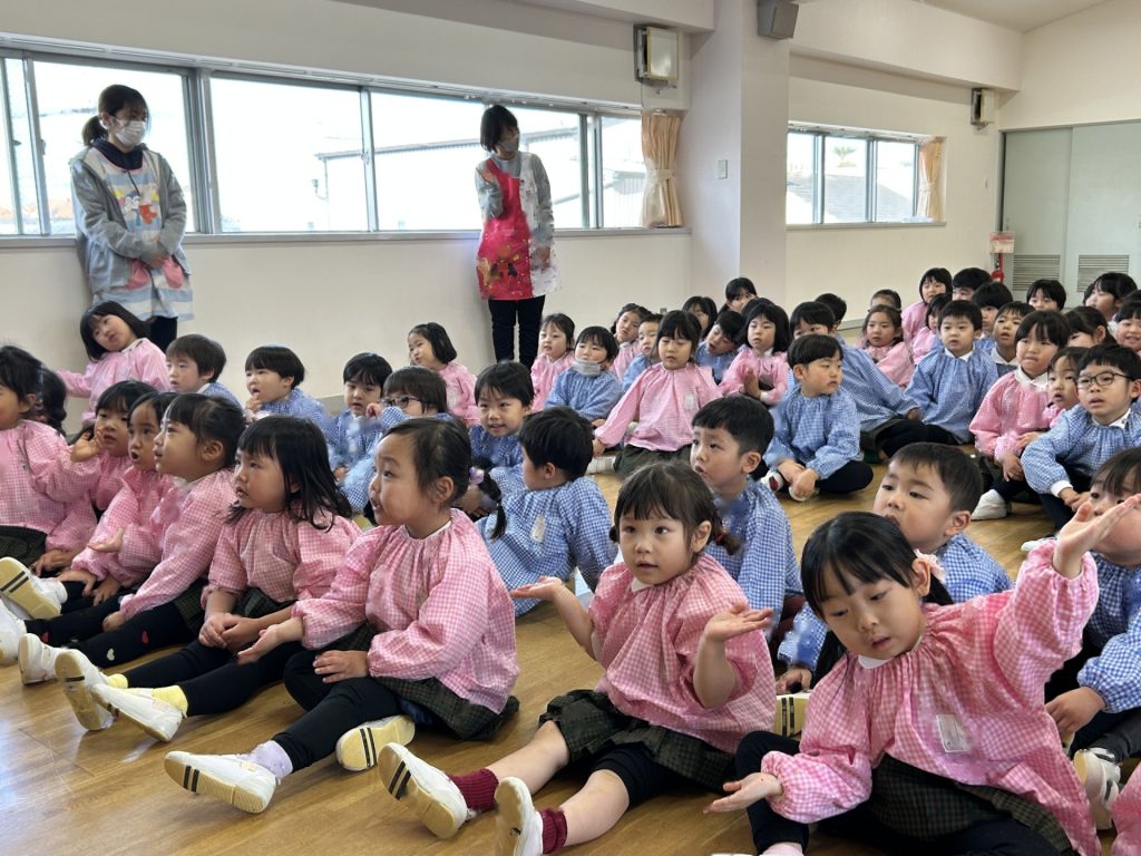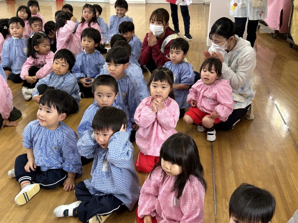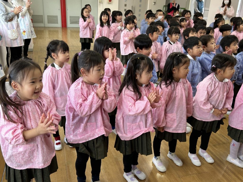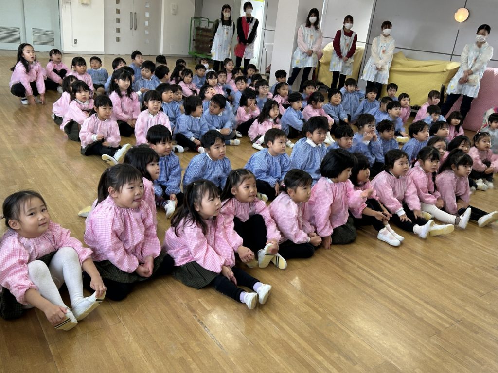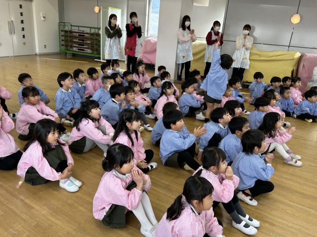 代表で保育者が子どもたちのプレゼントを預かり、みんなでお礼をいいました。