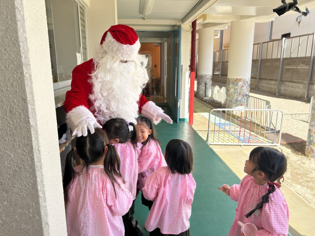 こどもたちは一瞬びっくりした様子でポカーンとしていましたが、「本物のサンタさんがきてくれたよ」の一言で「やったー!!」「さんたさーん!!」と大盛り上がり。みんな嬉しそうに手をふっていましたよ🖐