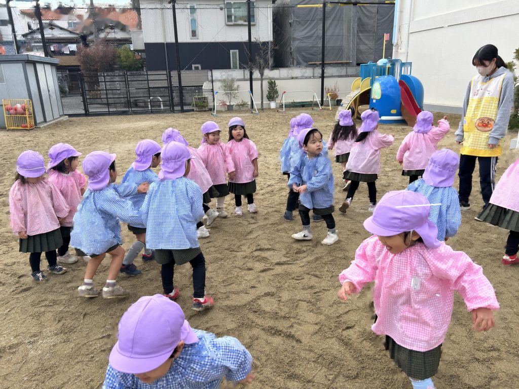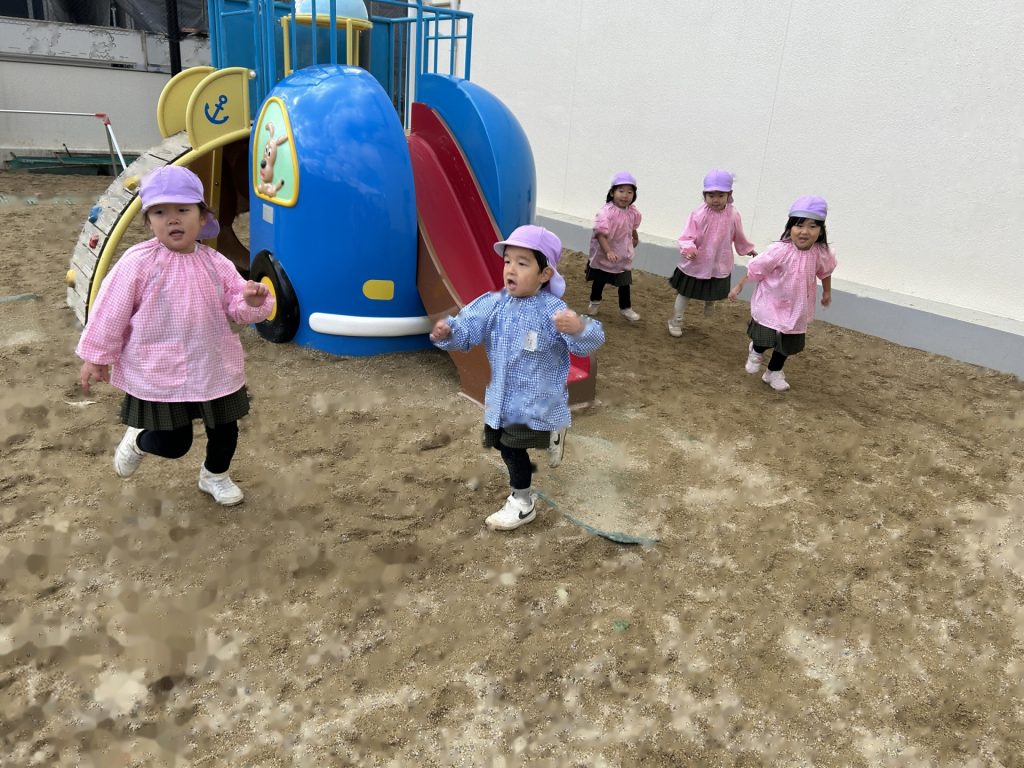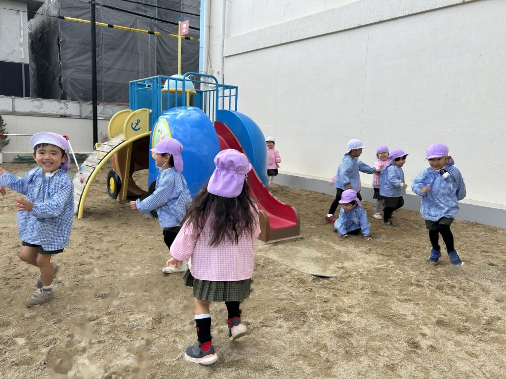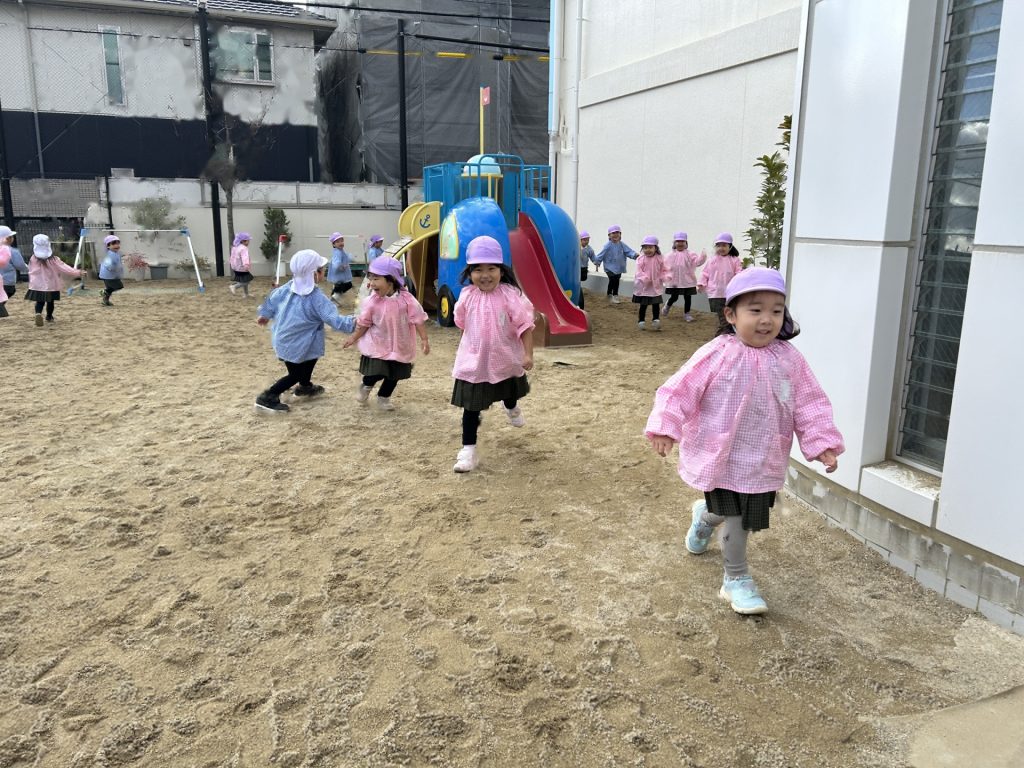 中にはタッチされても「鬼はいやだ」といっていたり、タッチされてもそのまま逃げていたりするおともだちもいましたが、楽しみながらルールも守れるようにしていきたいと思います。