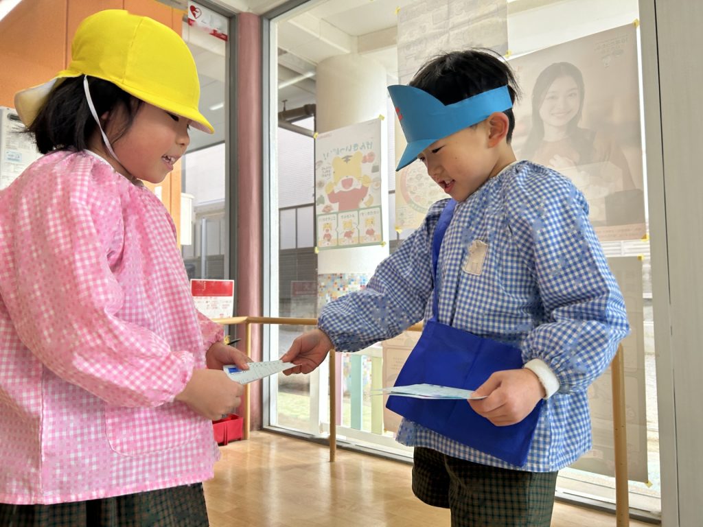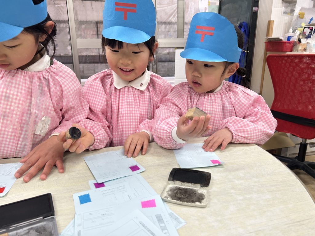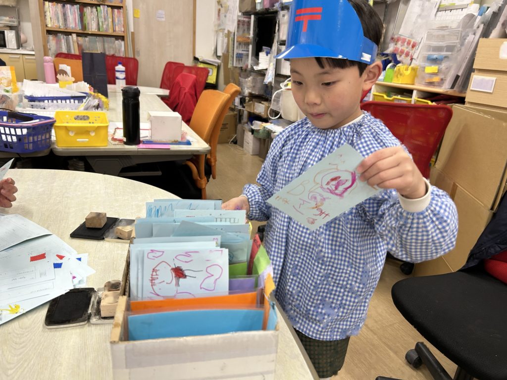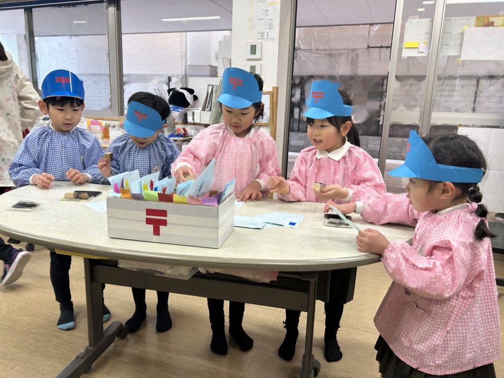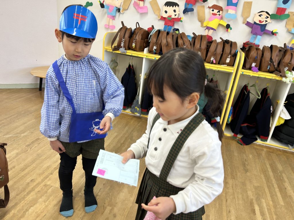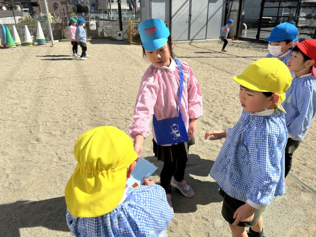 今日は午前中にあやめぐみのスヌーピーグループ、給食後にこすもすぐみのカービーグループが郵便屋さんをしてくれました。