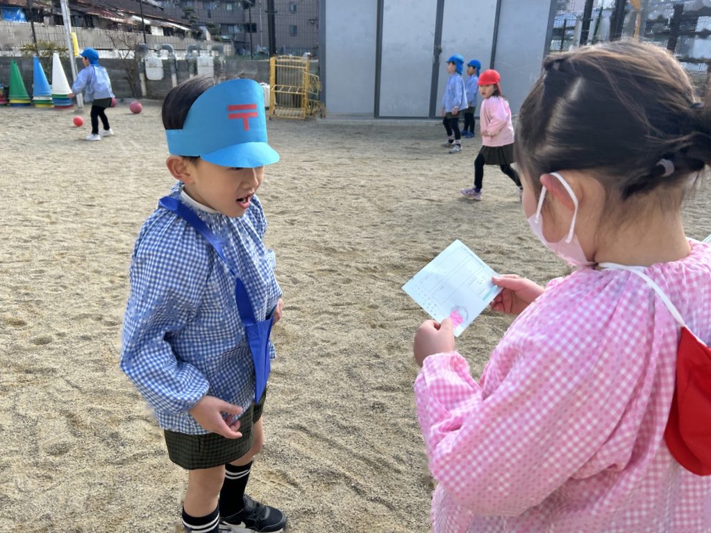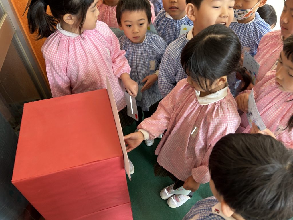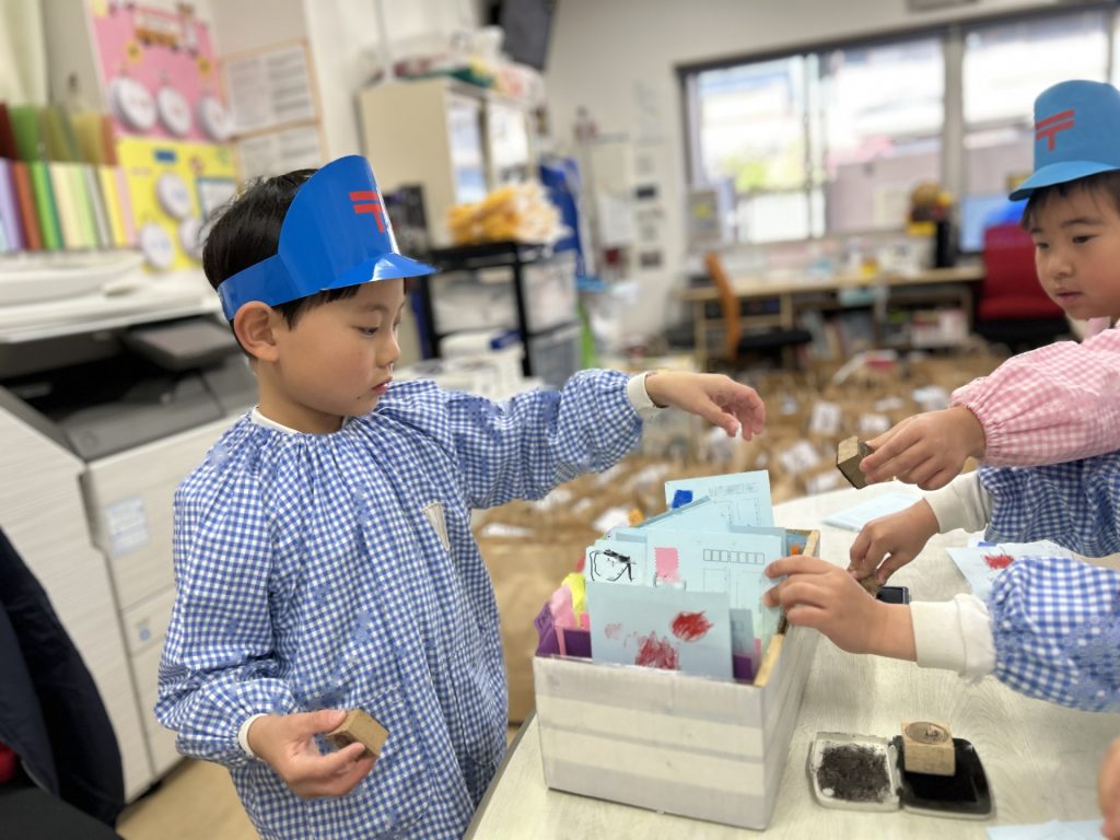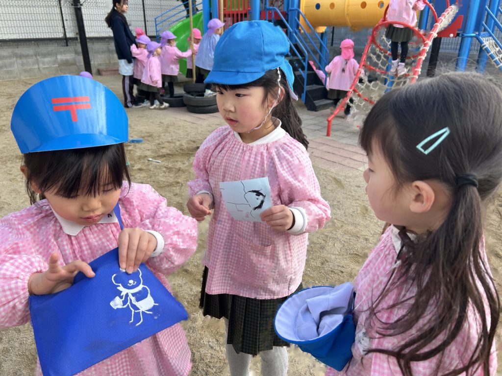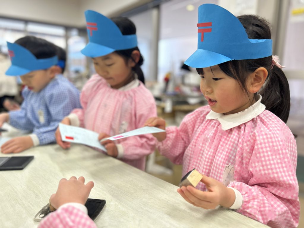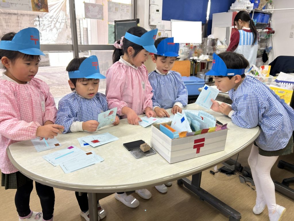 今日は午前中にあやめぐみのスヌーピーグループ、給食後にこすもすぐみのカービーグループが郵便屋さんをしてくれました。