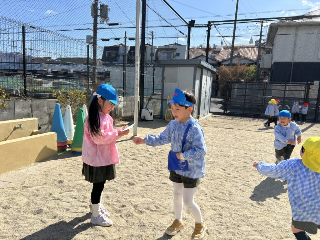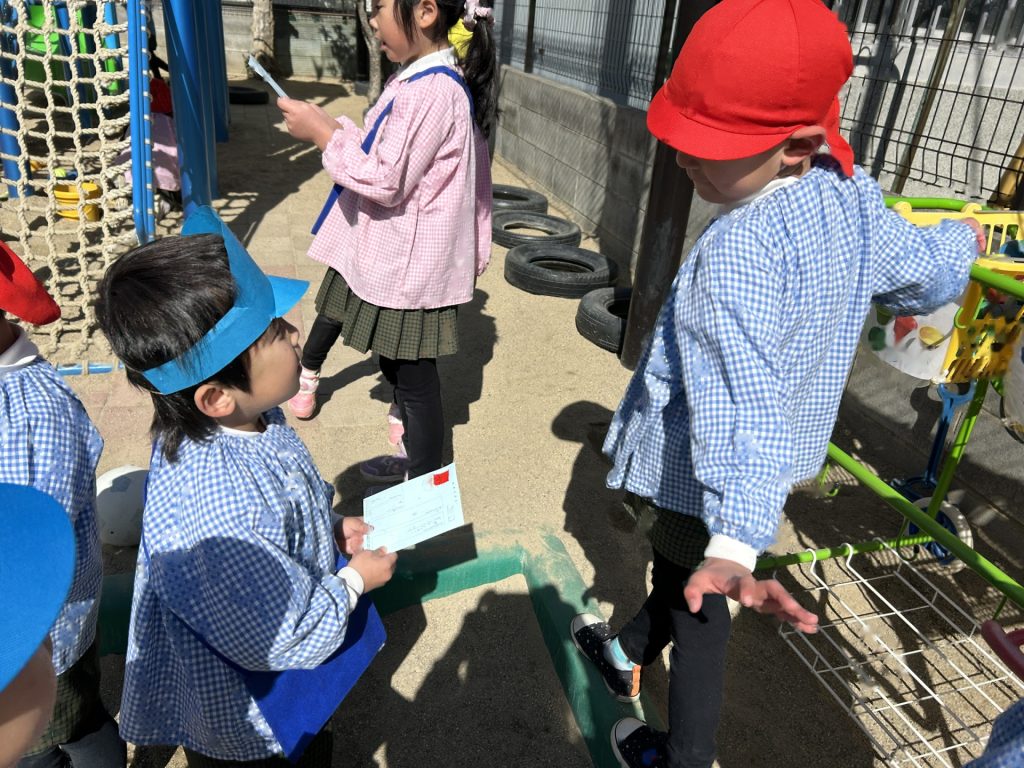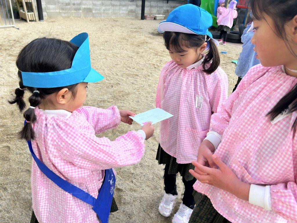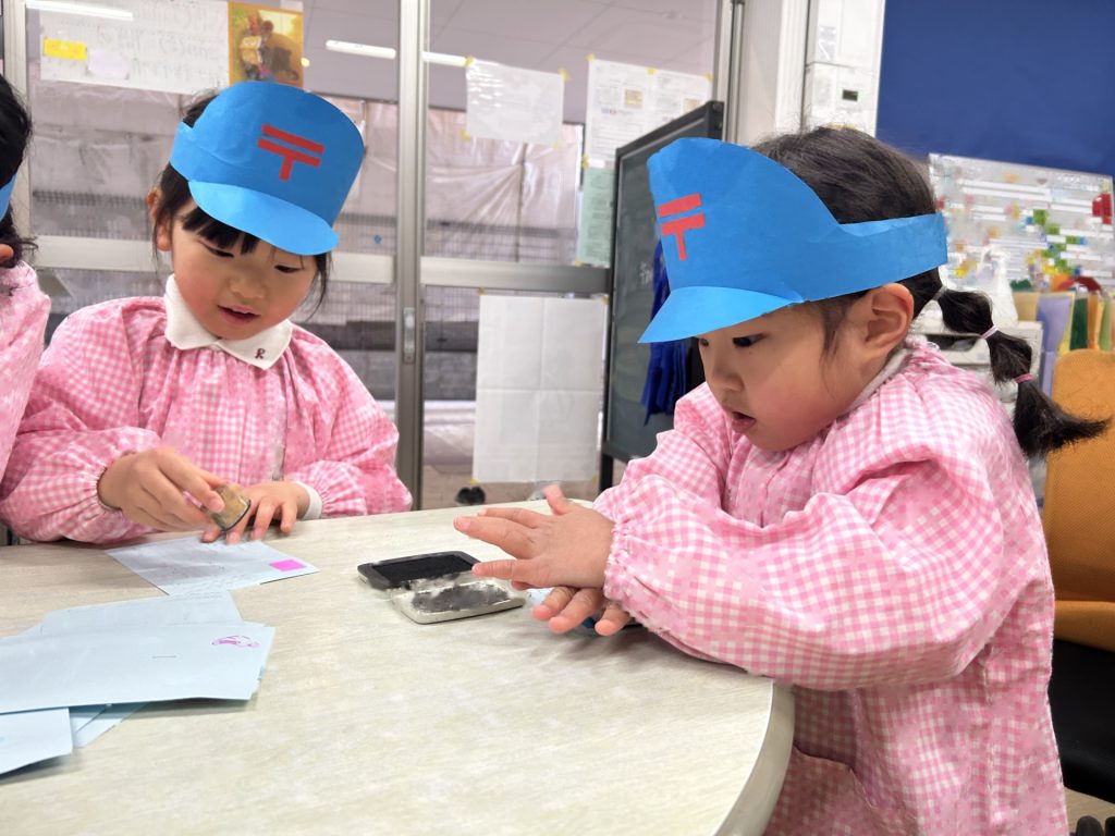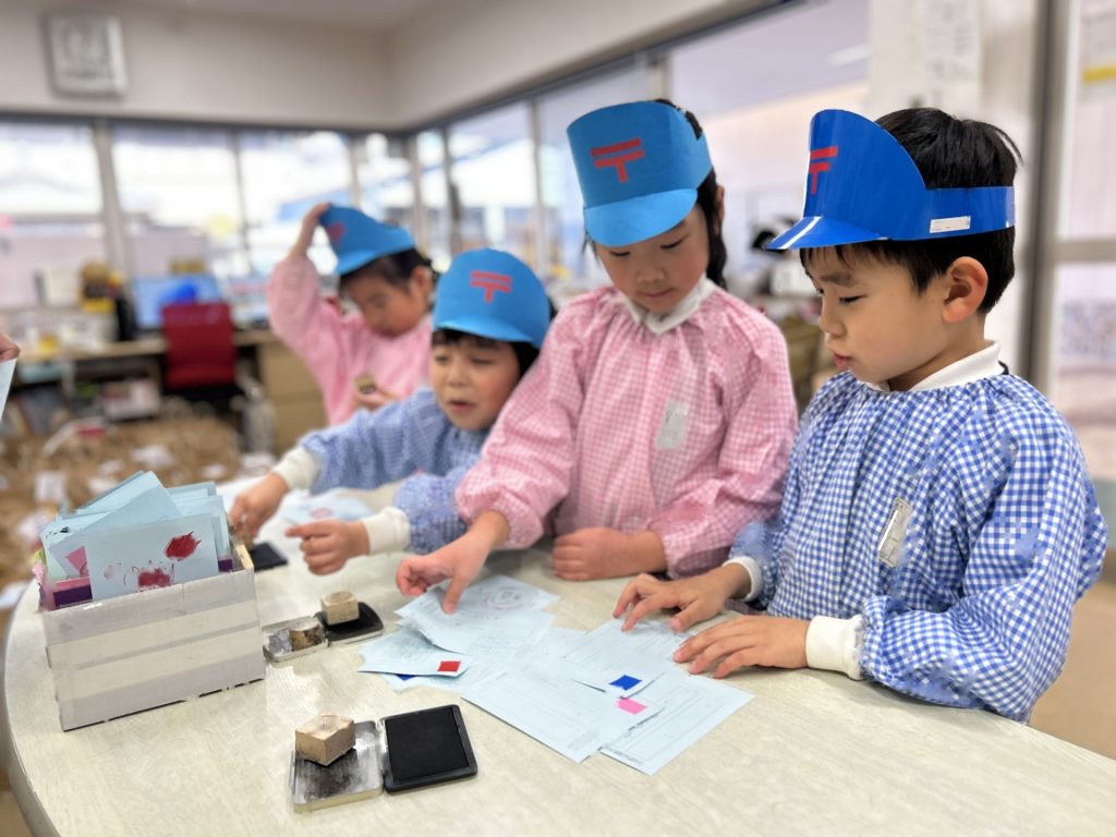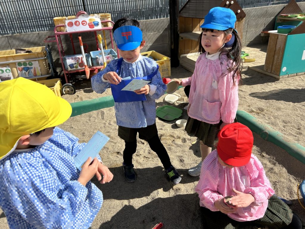 今日は午前中にあやめぐみのスヌーピーグループ、給食後にこすもすぐみのカービーグループが郵便屋さんをしてくれました。