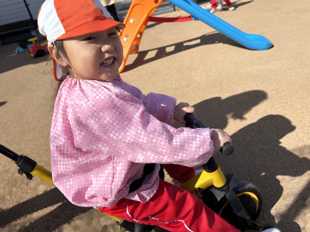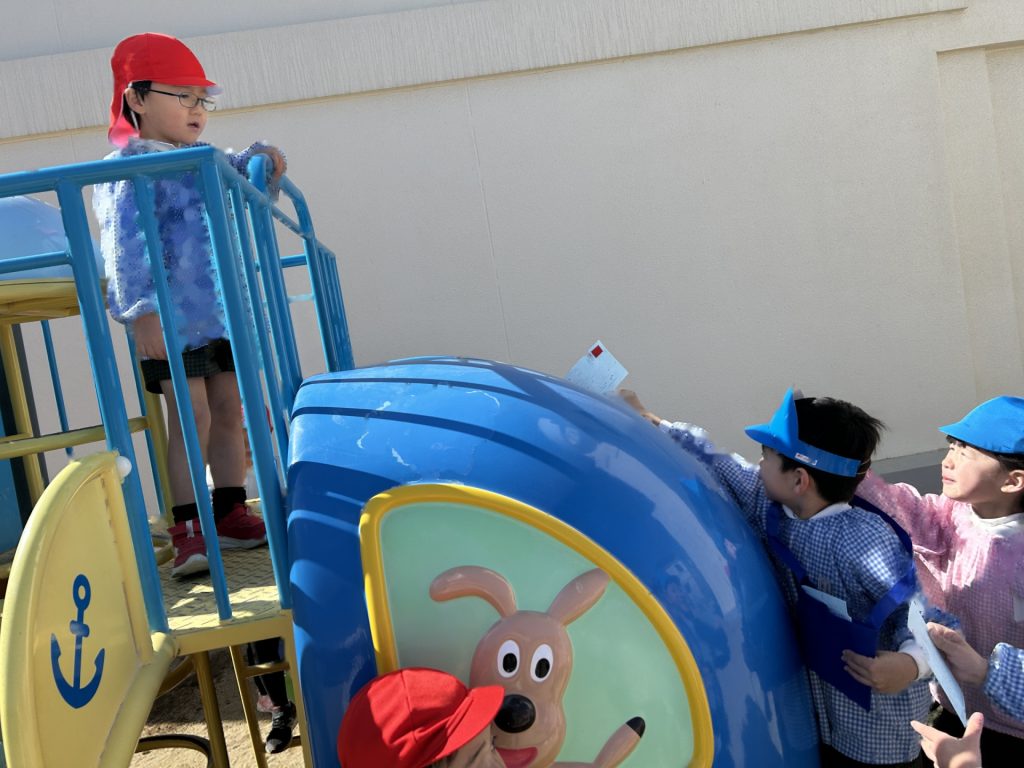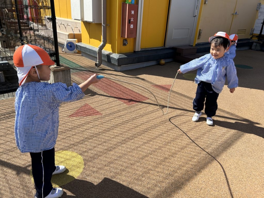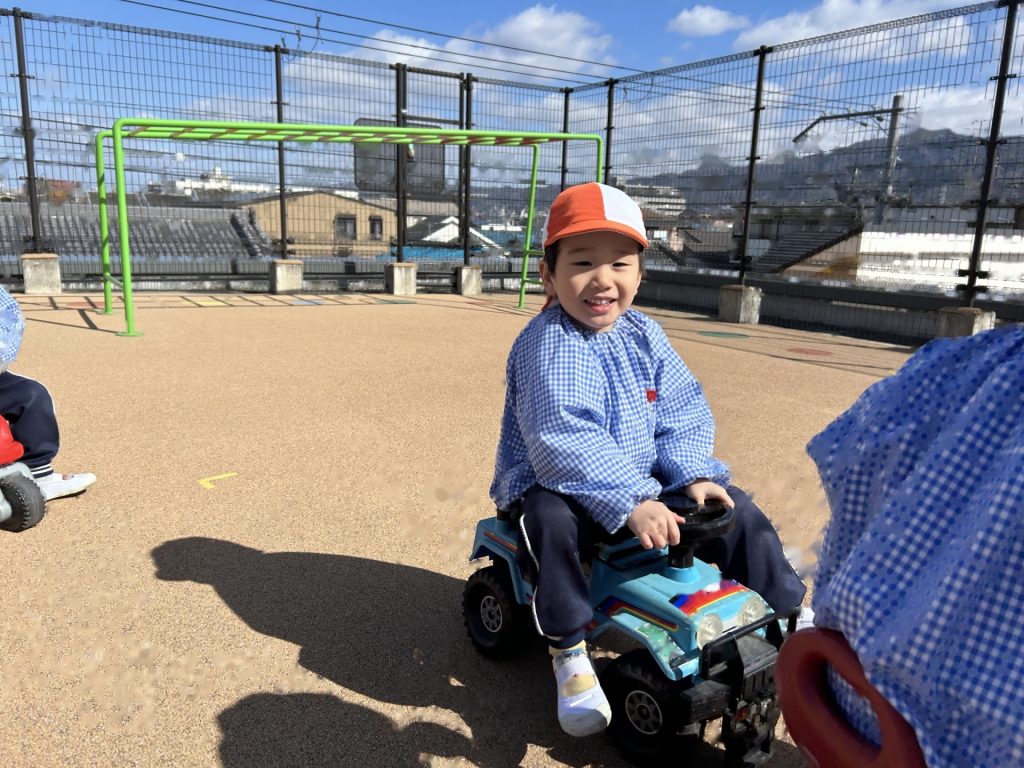 前はできなかったポックリに乗っていたり、乗り物をゆずってあげたり、少し成長した姿も見られました。久しぶりの屋上遊びとっても楽しんでいましたよ。