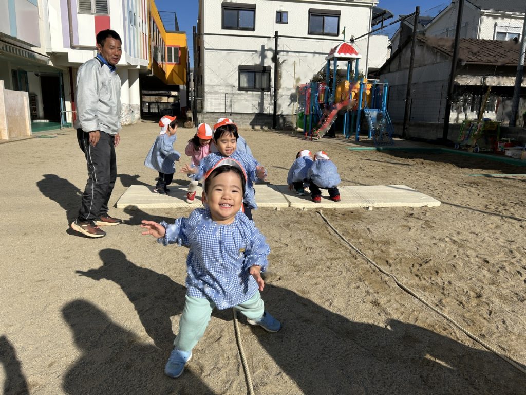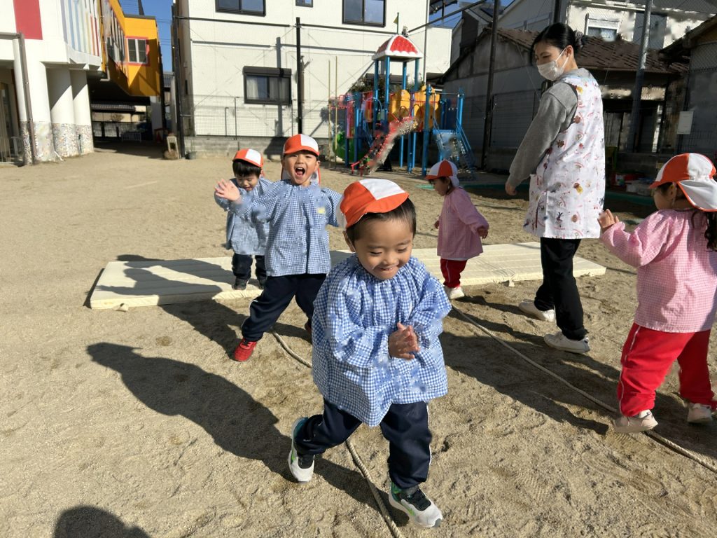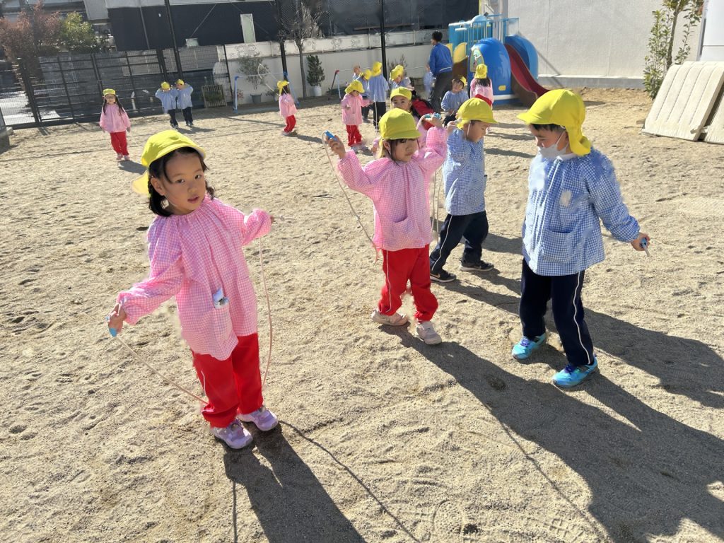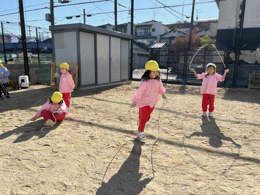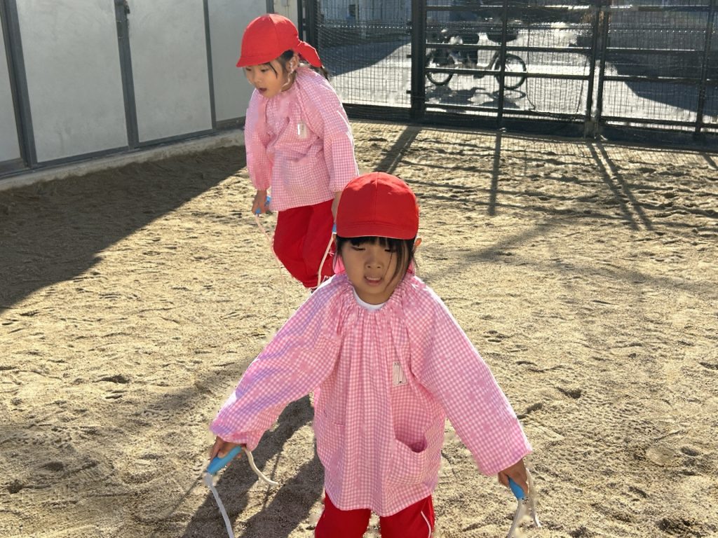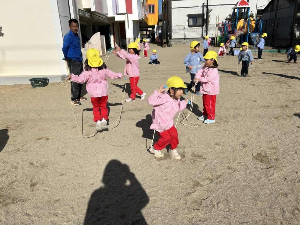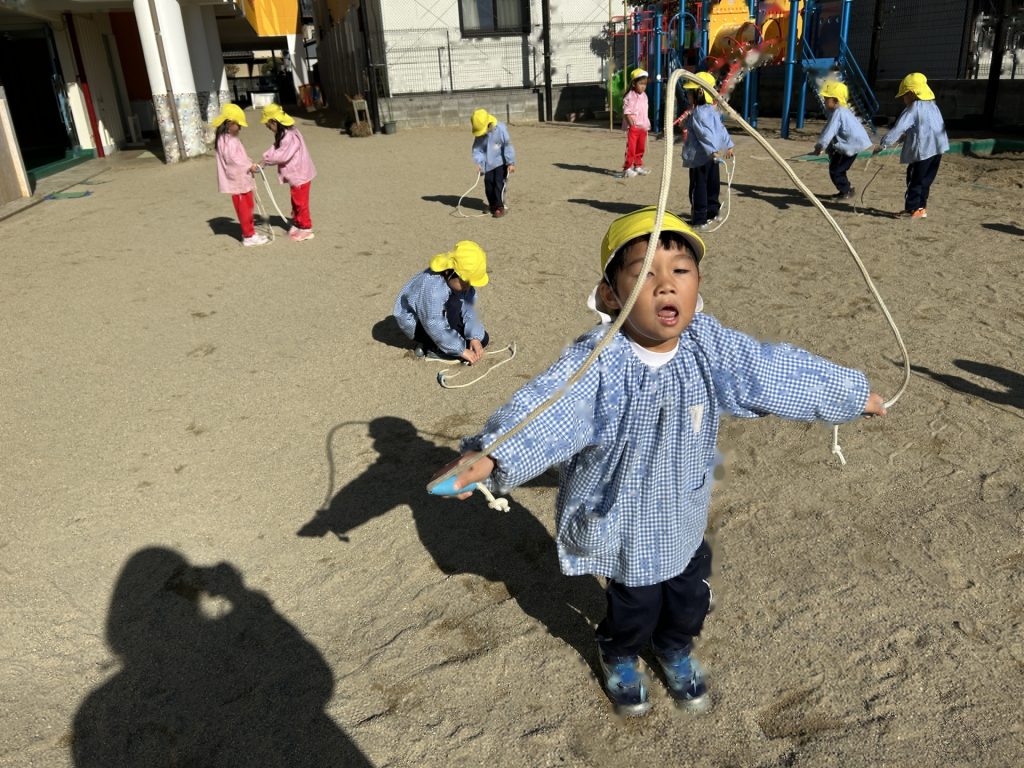 昼間は暖かい日差しが照ると暖かく、過ごしやすいのですが、朝夕は寒くなってきました。毎年この時期になると、縄跳びが流行りだし、園庭で縄跳びの練習をするお友だちが増えてきます。
