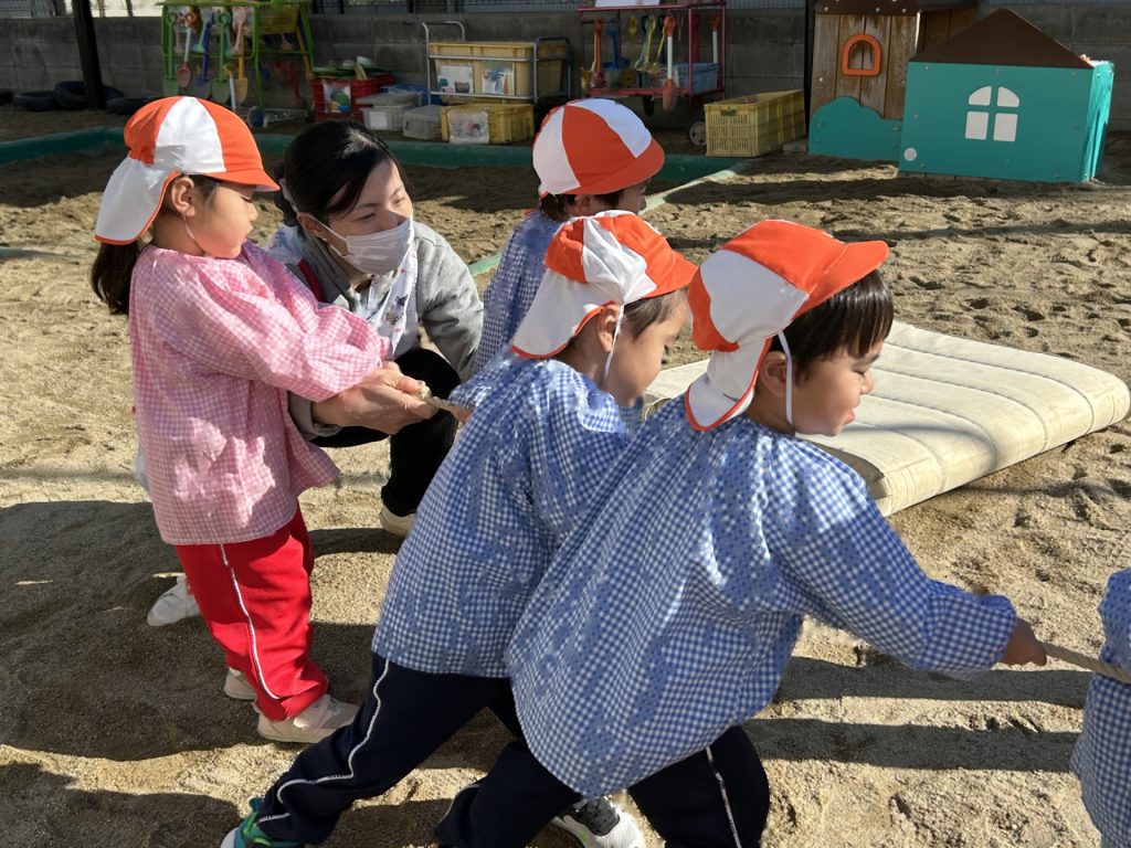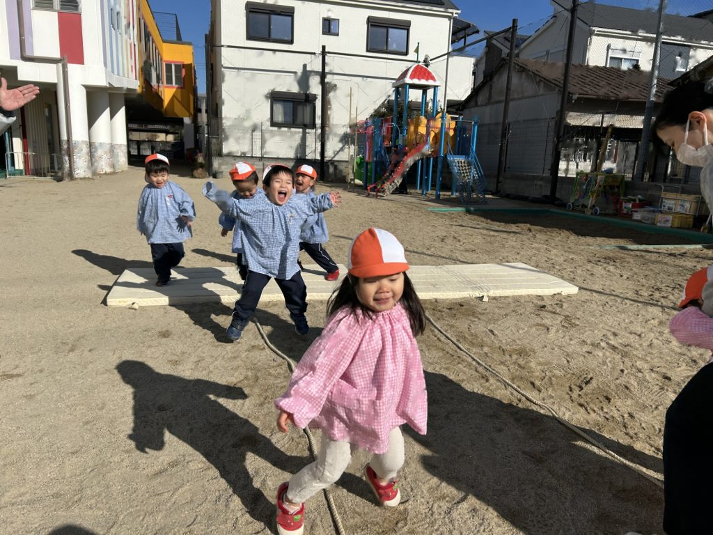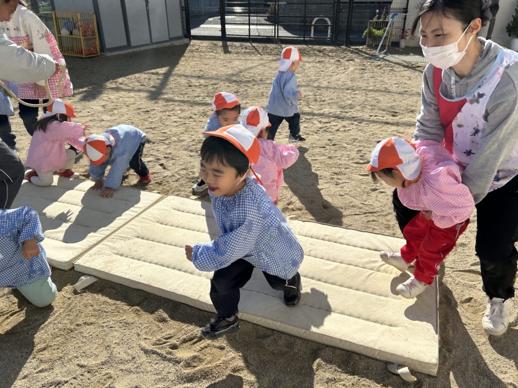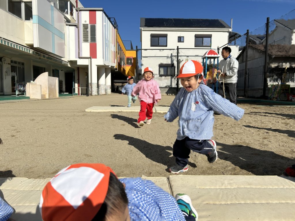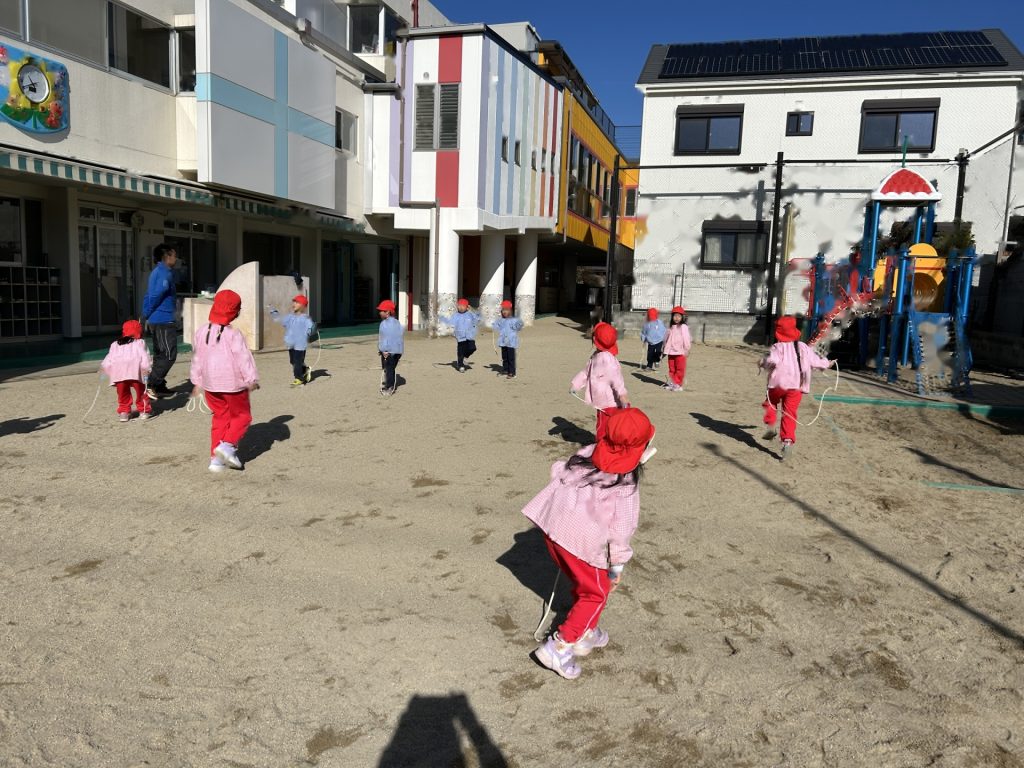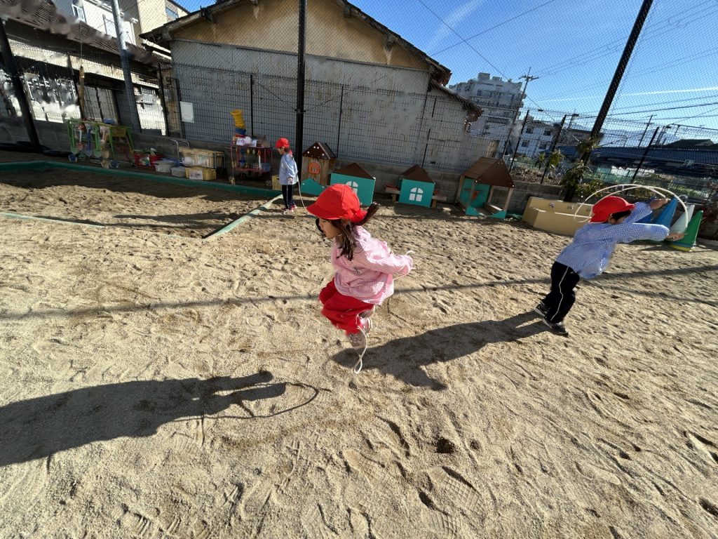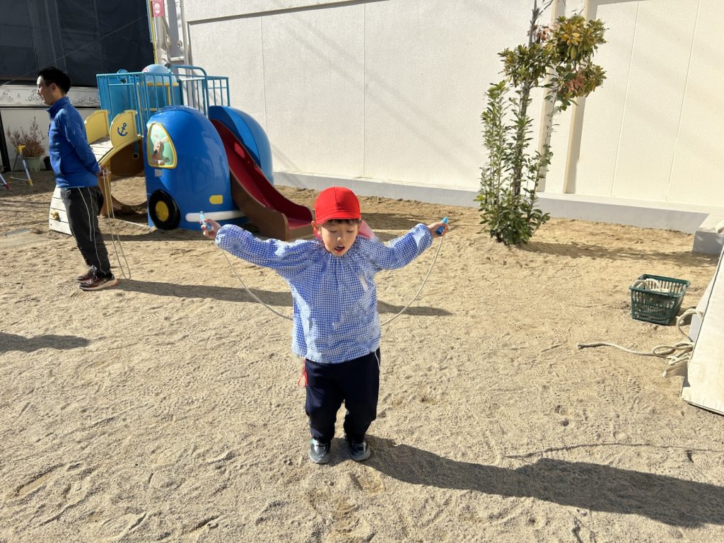 昼間は暖かい日差しが照ると暖かく、過ごしやすいのですが、朝夕は寒くなってきました。毎年この時期になると、縄跳びが流行りだし、園庭で縄跳びの練習をするお友だちが増えてきます。