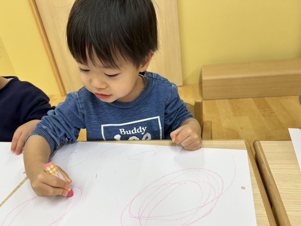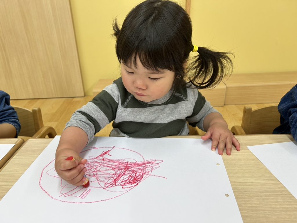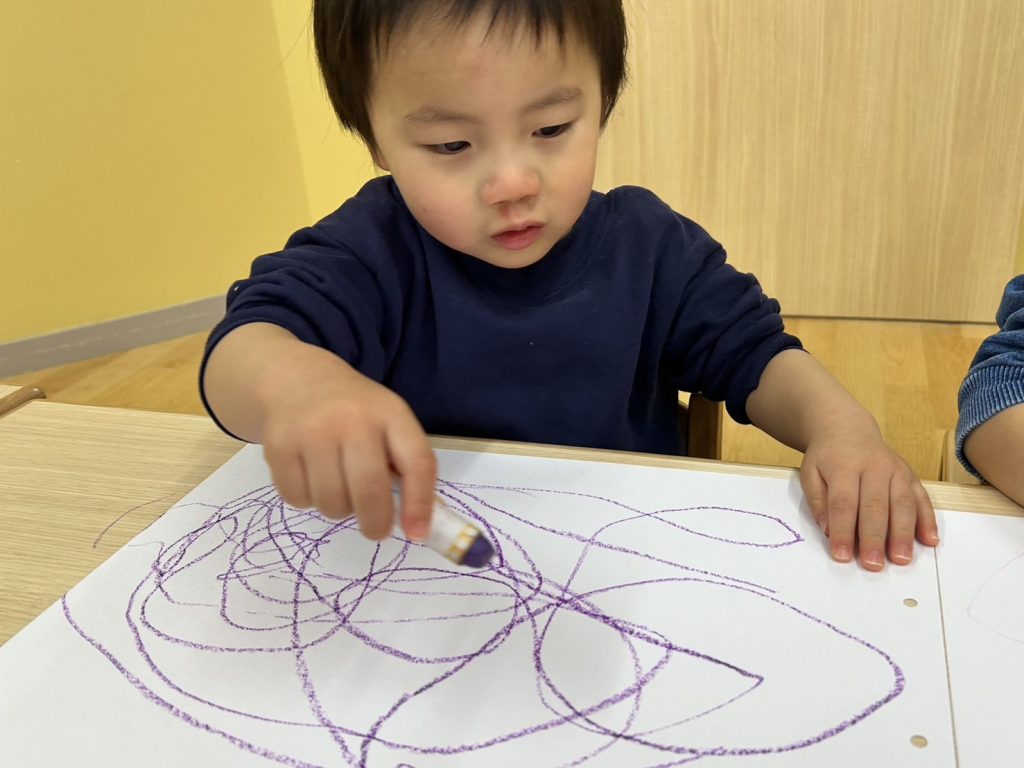 色を変えないことで絵を描くことに集中できるのか30分ほど楽しそうに絵を描いていましたよ。上手に丸を書いたり、目や口を書いて人に見立てたり、とってもじょうずにお絵描きしていましたよ😊