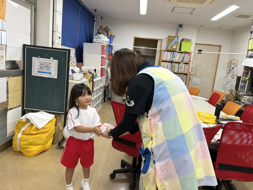 そんな毎日の積み重ねの甲斐もあり、4,5歳児クラスになると「服がぬれたのできがえさせてください」などみんなしっかりいえるようになってきました。