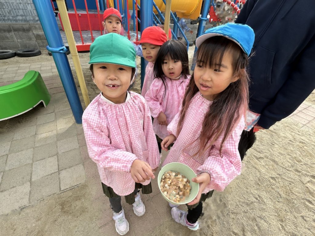 今日は一昨日の豆まきの豆をさがして拾い集めているおともだちがたくさんいました。