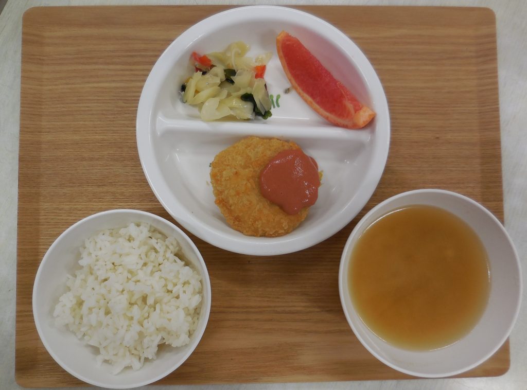 本日の給食メニュー カツをオーロラソースで食べよう!