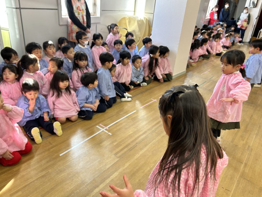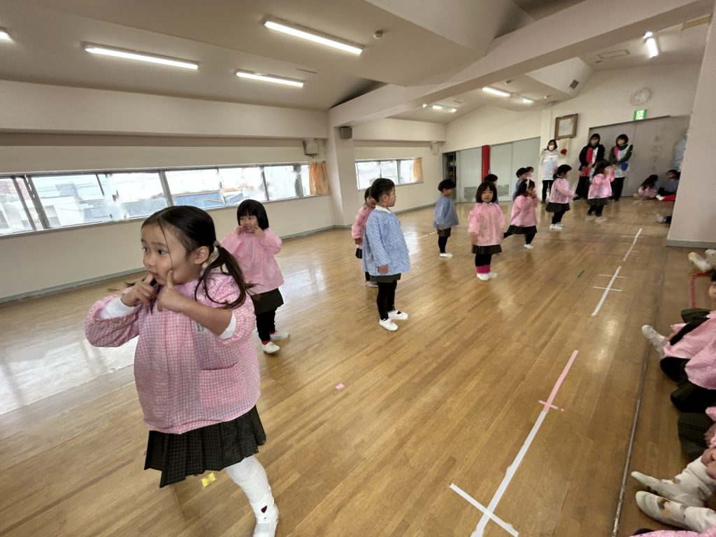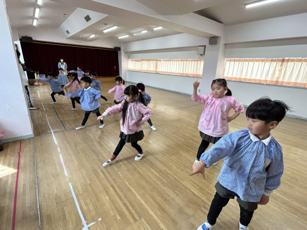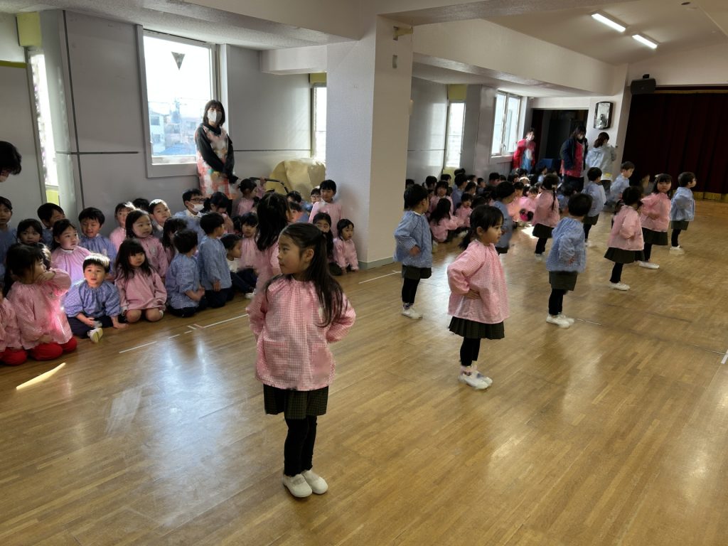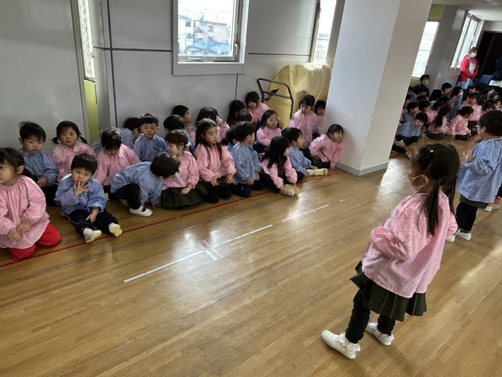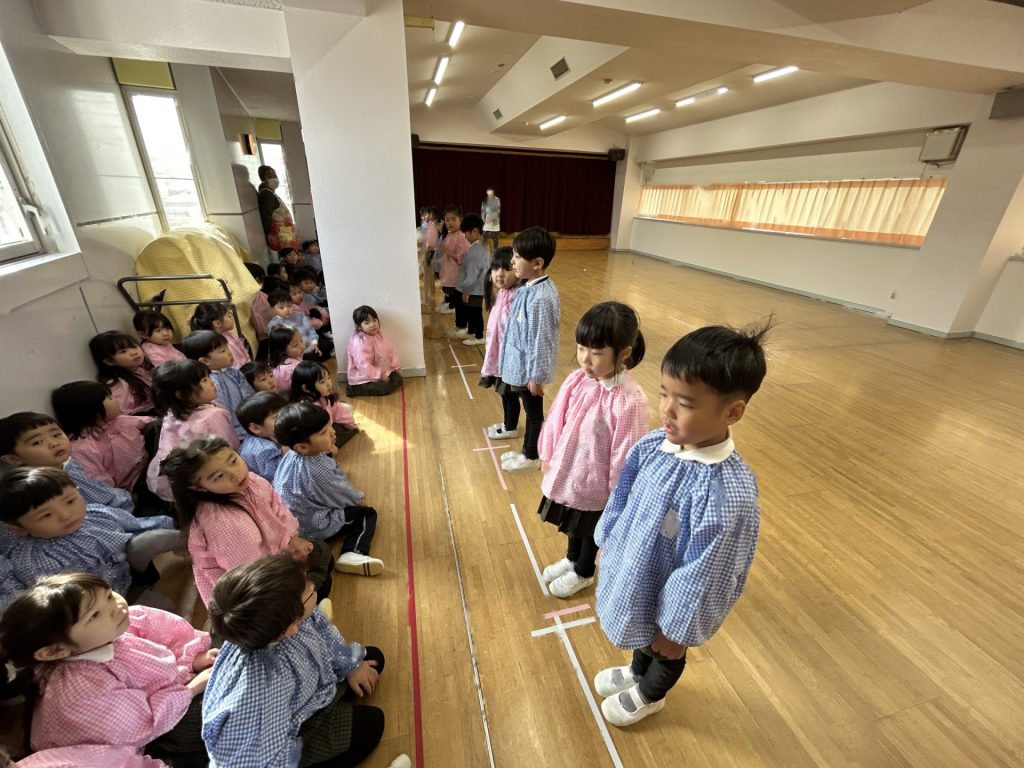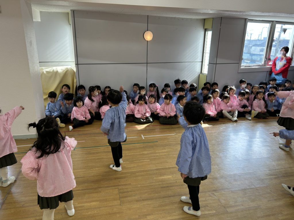 いよいよ明日は発表会です。今日は最後の練習、ほかのクラスのおともだちの頑張りをみんなで見学に行きました。約1ヶ月間練習してきた成果をおうちの人にみてもらうのを子どもたちも楽しみにしています。