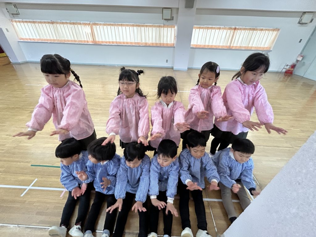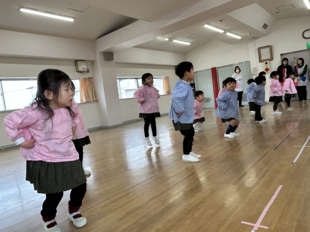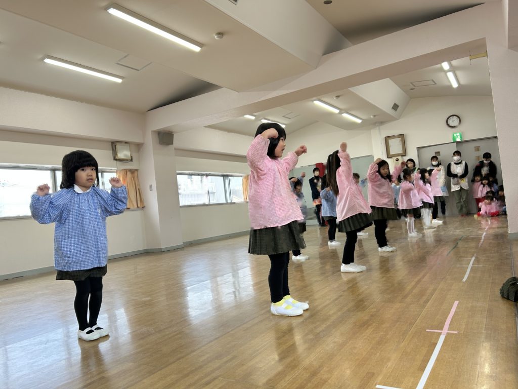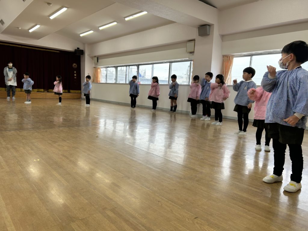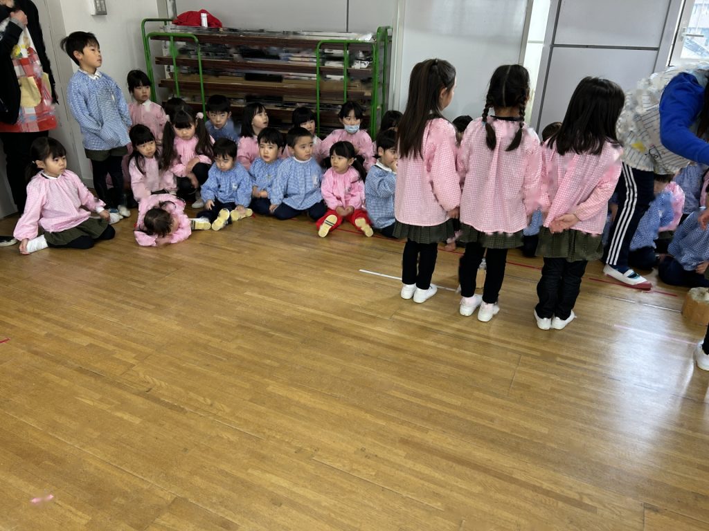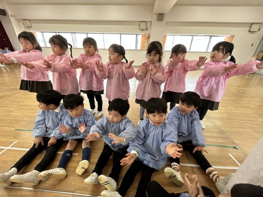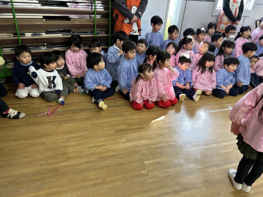 いよいよ明日は発表会です。今日は最後の練習、ほかのクラスのおともだちの頑張りをみんなで見学に行きました。約1ヶ月間練習してきた成果をおうちの人にみてもらうのを子どもたちも楽しみにしています。