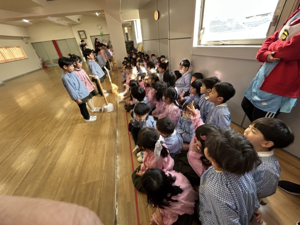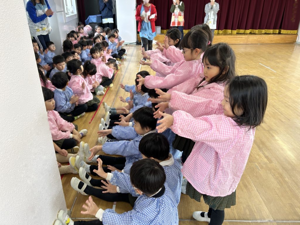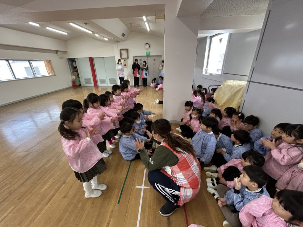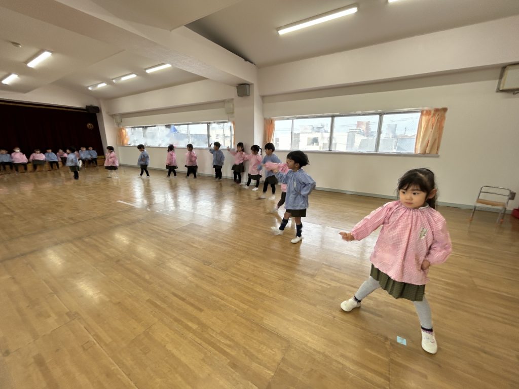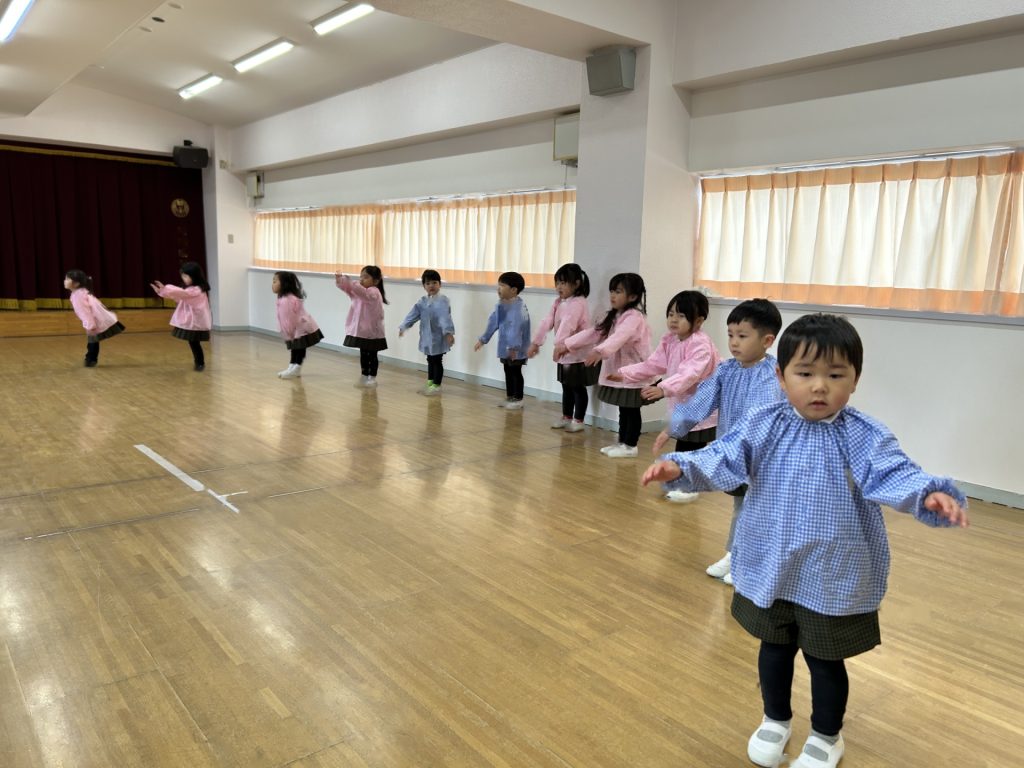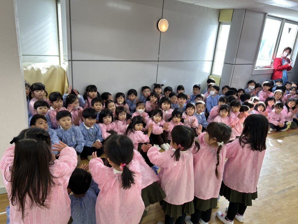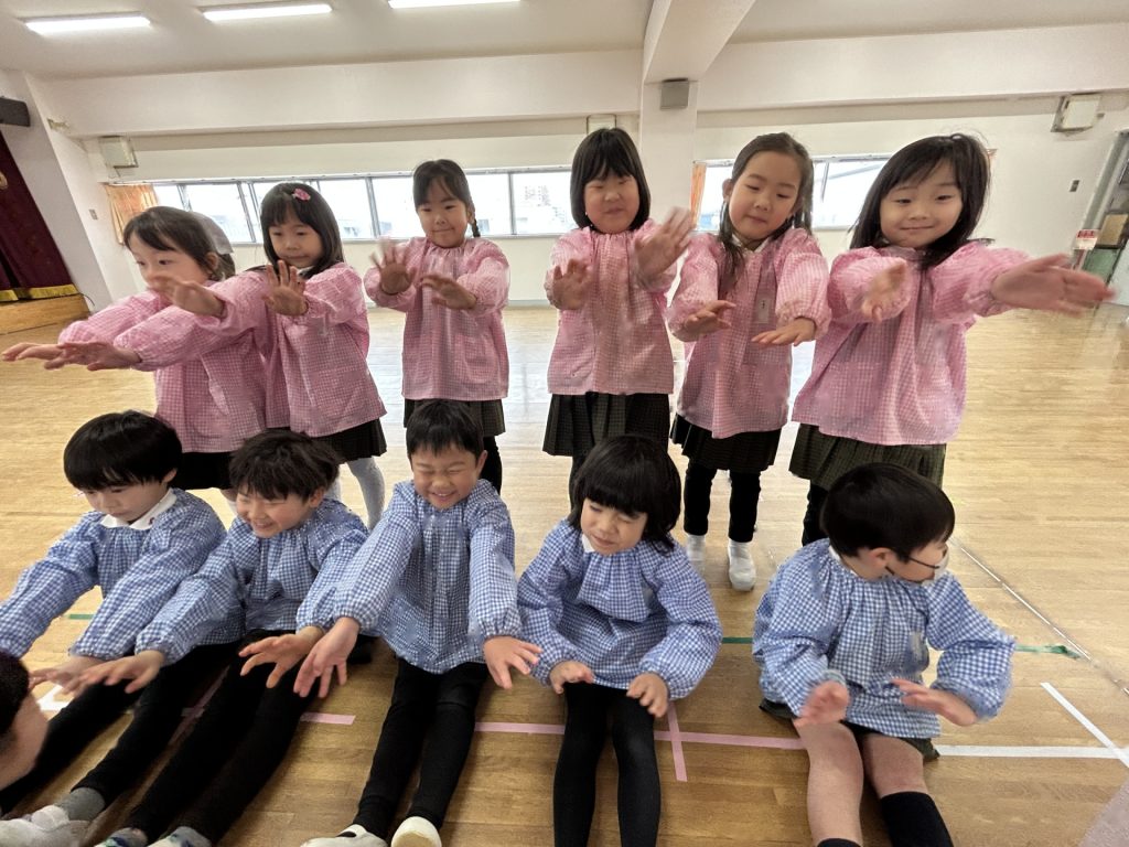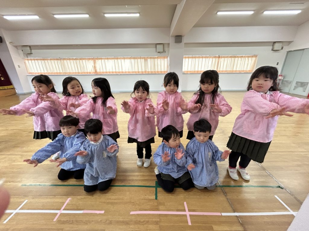 いよいよ明日は発表会です。今日は最後の練習、ほかのクラスのおともだちの頑張りをみんなで見学に行きました。約1ヶ月間練習してきた成果をおうちの人にみてもらうのを子どもたちも楽しみにしています。