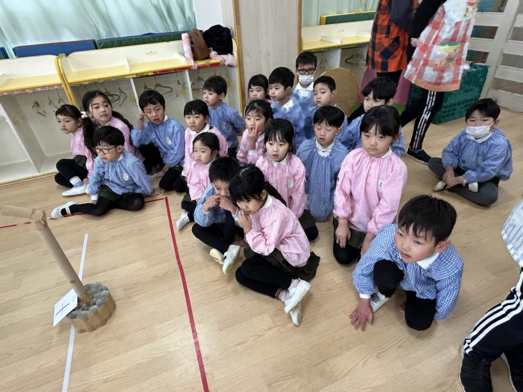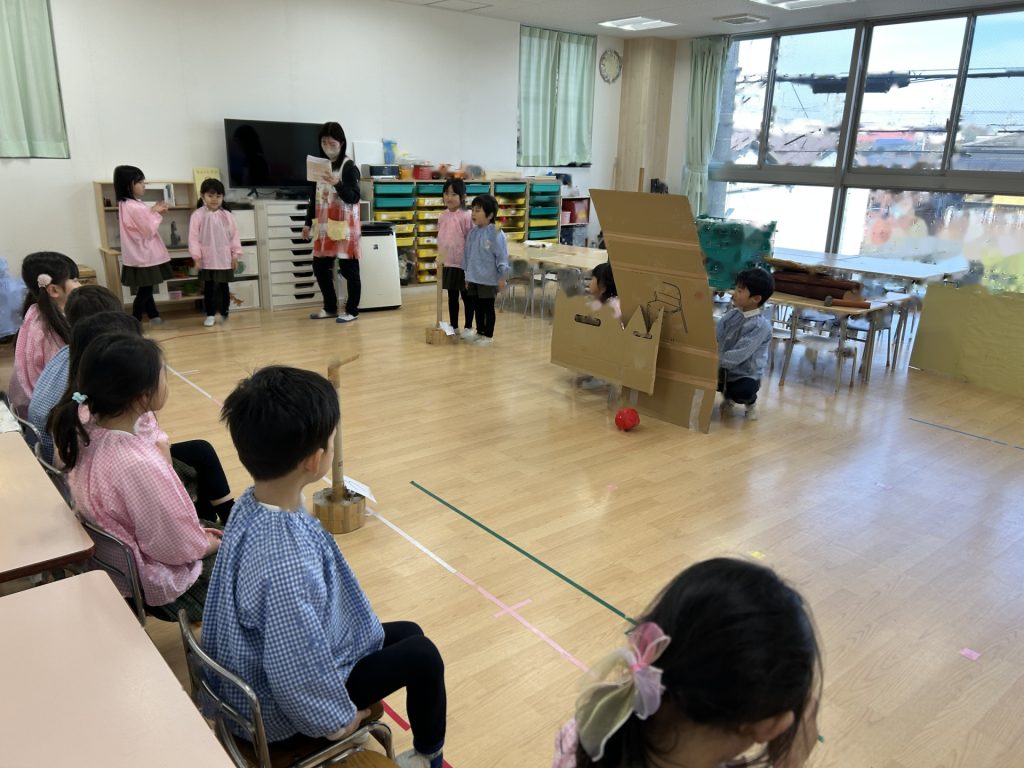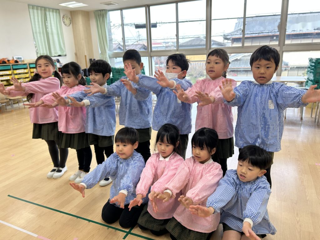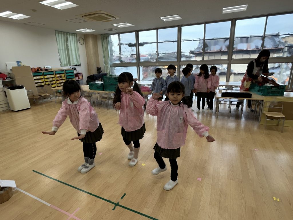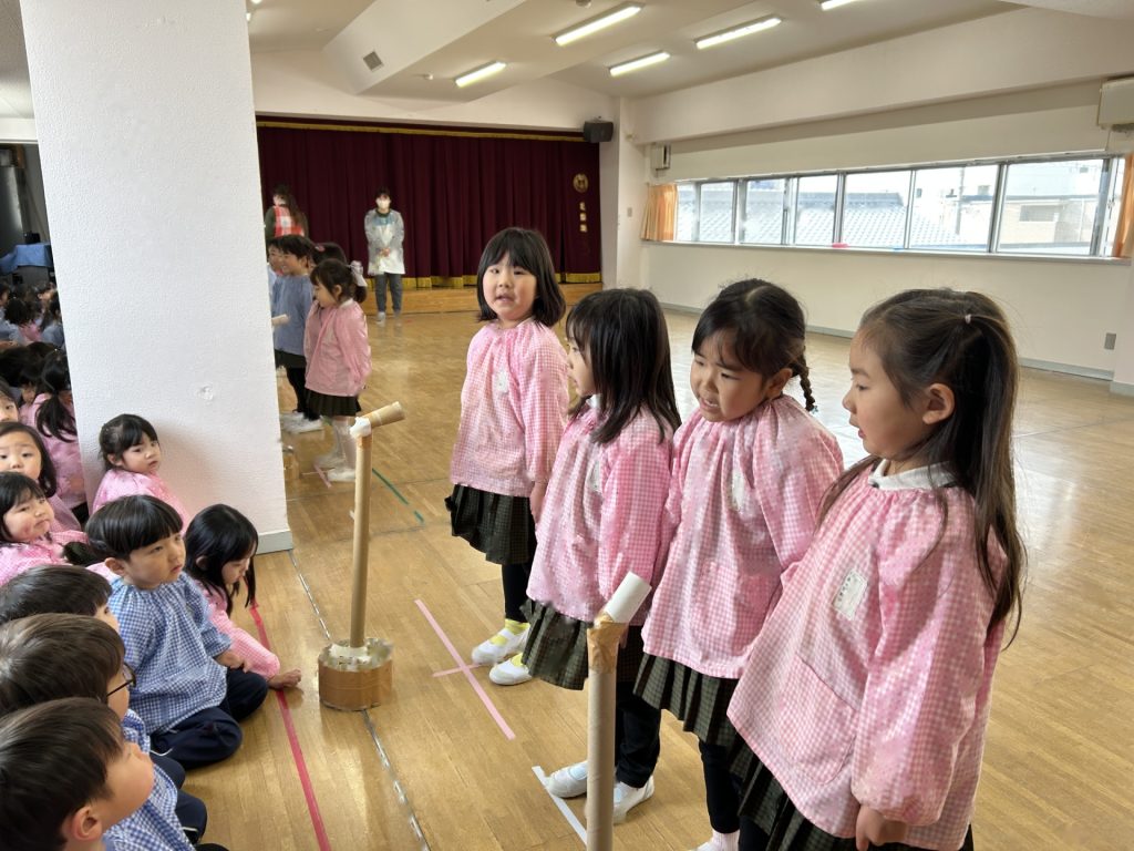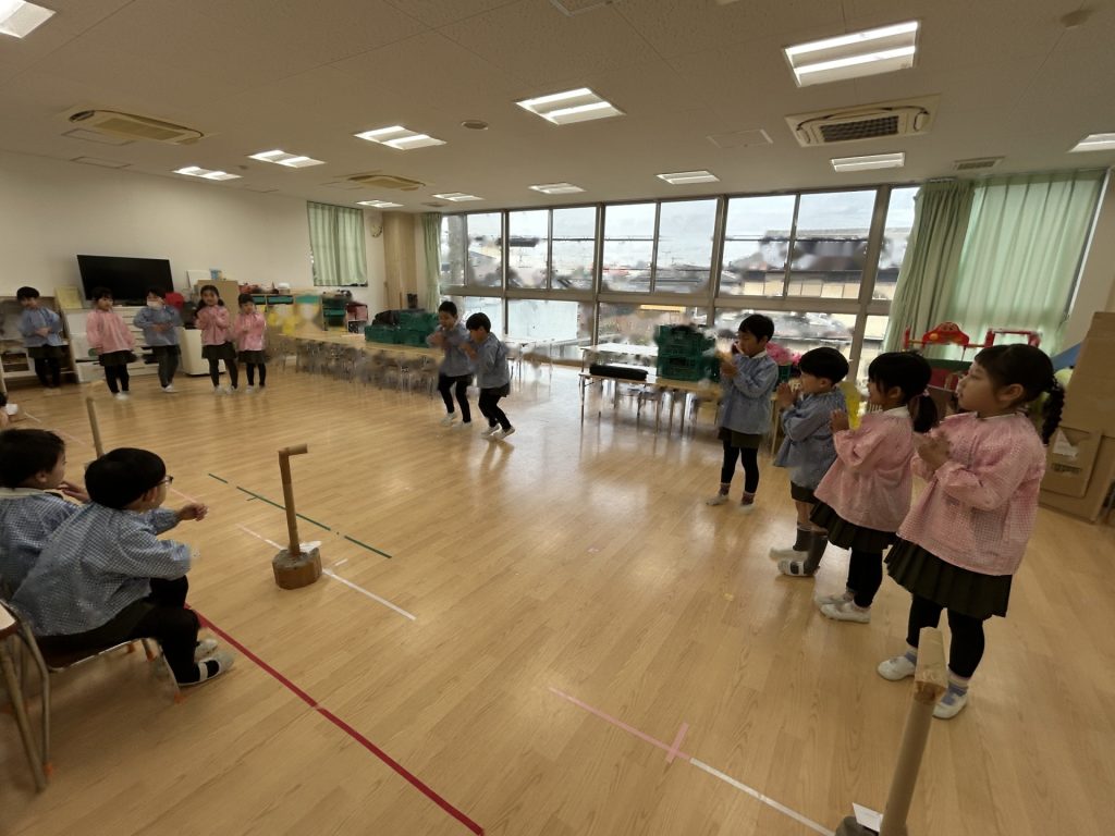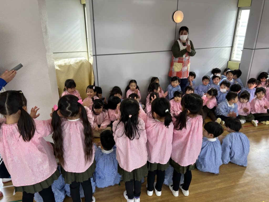 いよいよ明日は発表会です。今日は最後の練習、ほかのクラスのおともだちの頑張りをみんなで見学に行きました。約1ヶ月間練習してきた成果をおうちの人にみてもらうのを子どもたちも楽しみにしています。