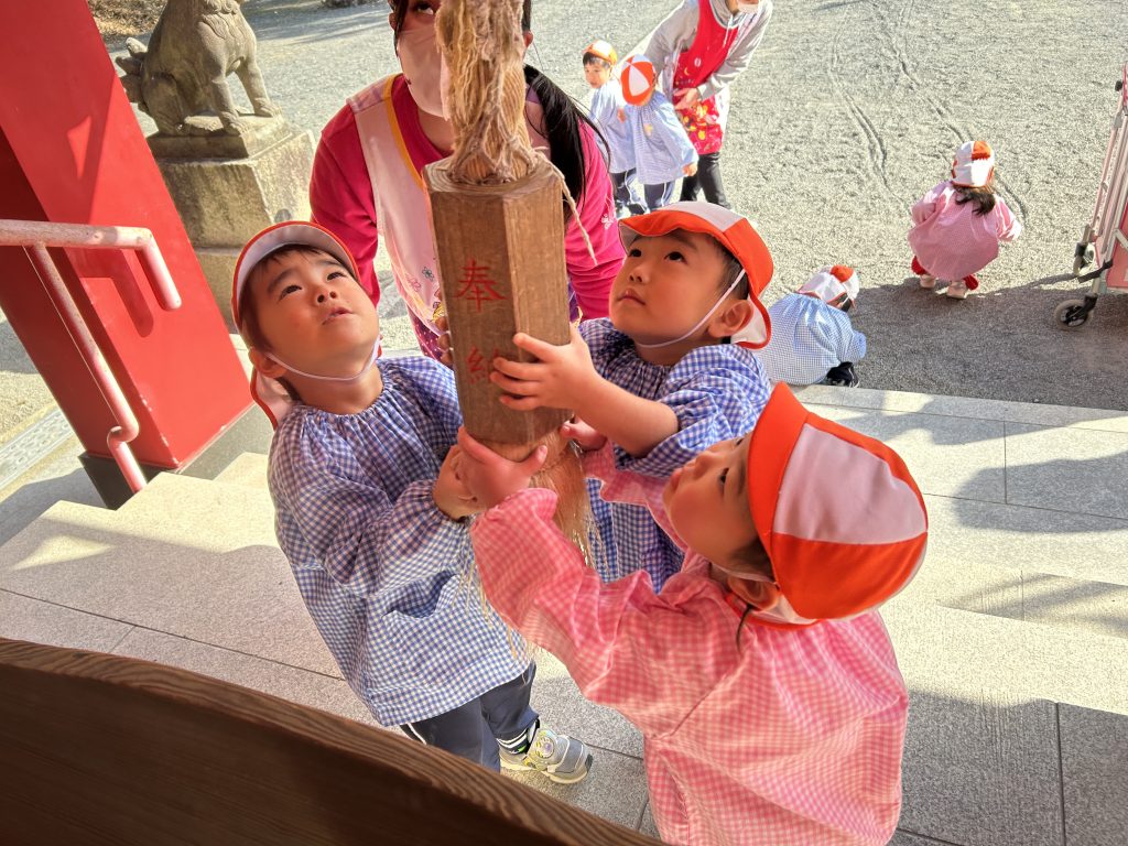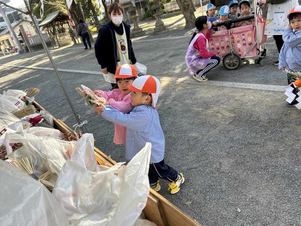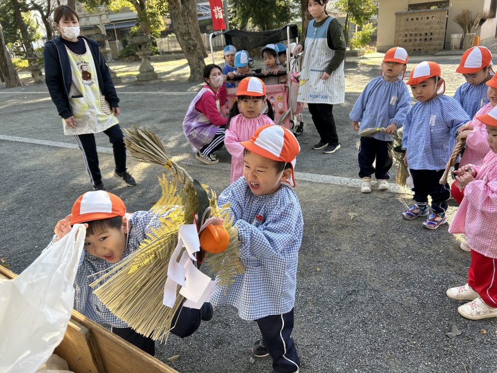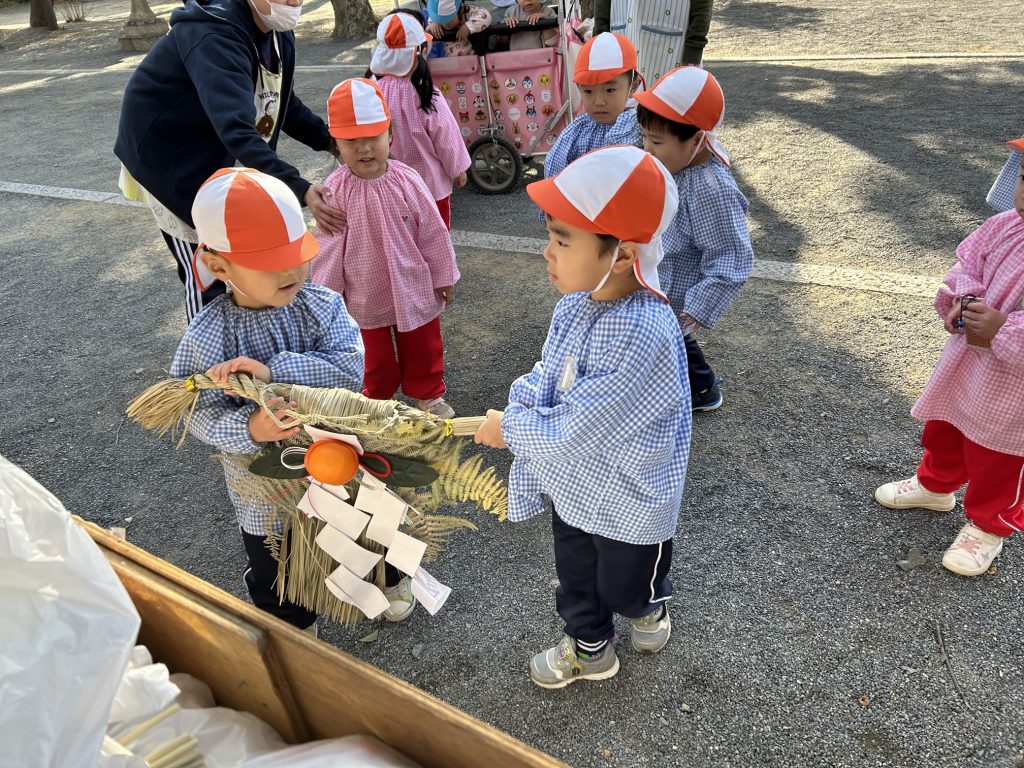 ゆりぐみさんが代表でしめ飾りを納めてくれましたよ。「ありがとうございました」