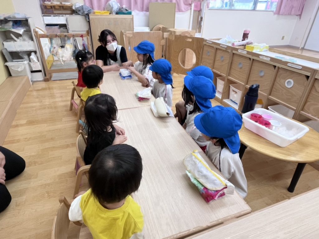 お部屋では一緒に歌を歌ったり、やきいもグーチョキパーの手遊びをしたりして楽しみました。