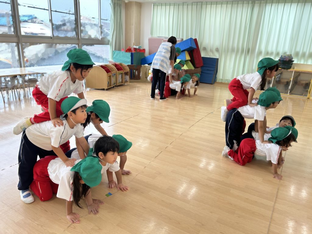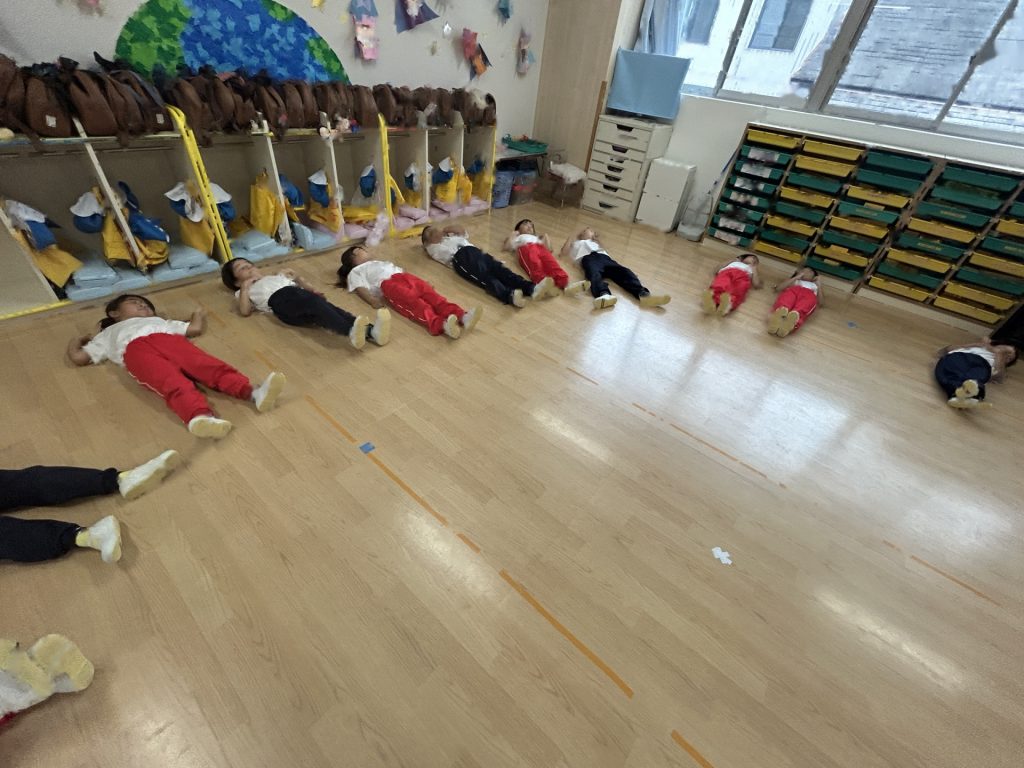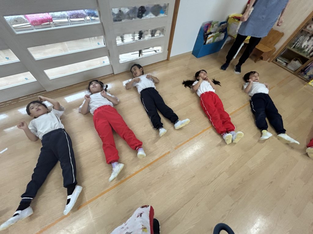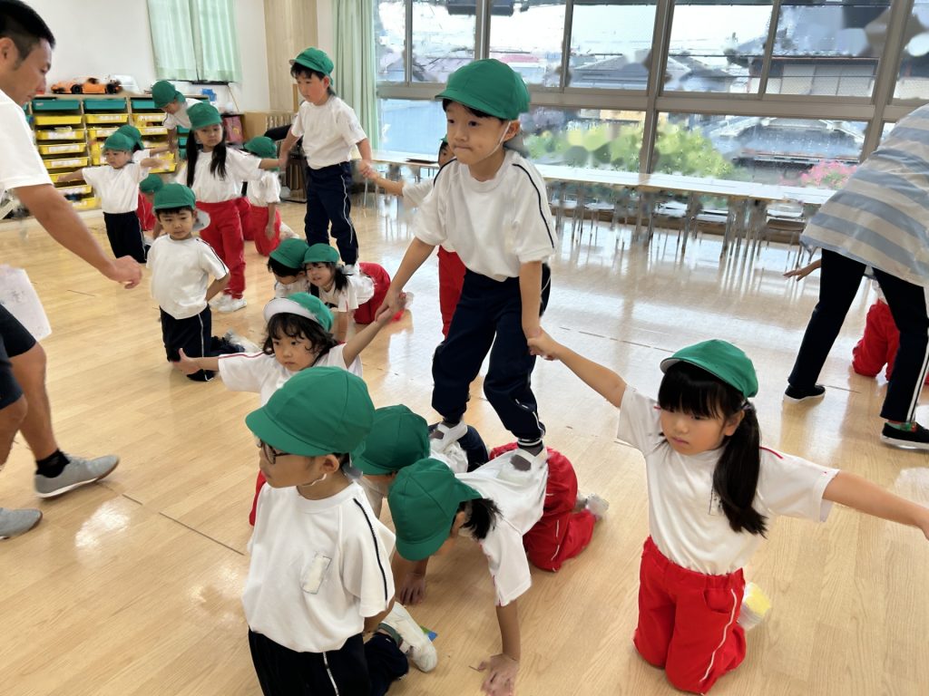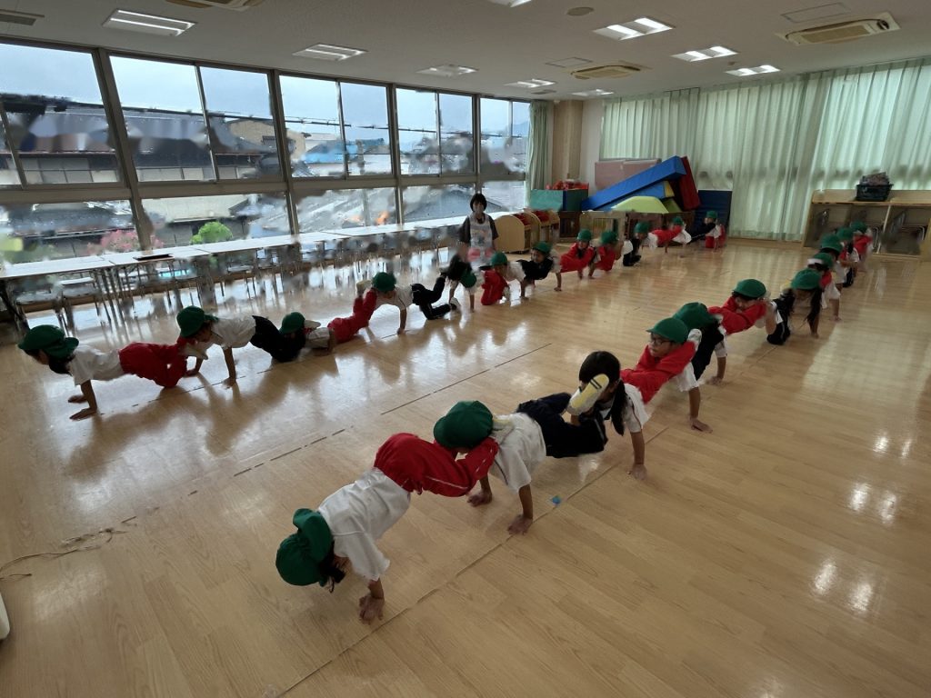 まだ練習を開始して2日目なので、保育者の動きを真似している段階ですが楽しそうに取り組んでいます😊😊😊