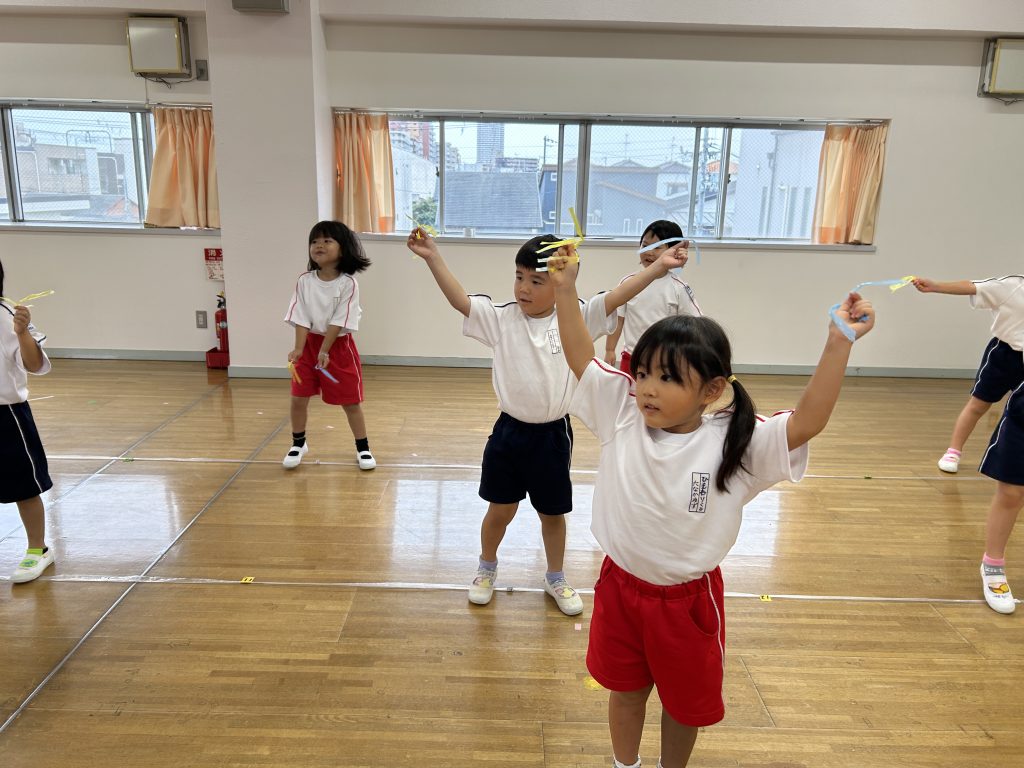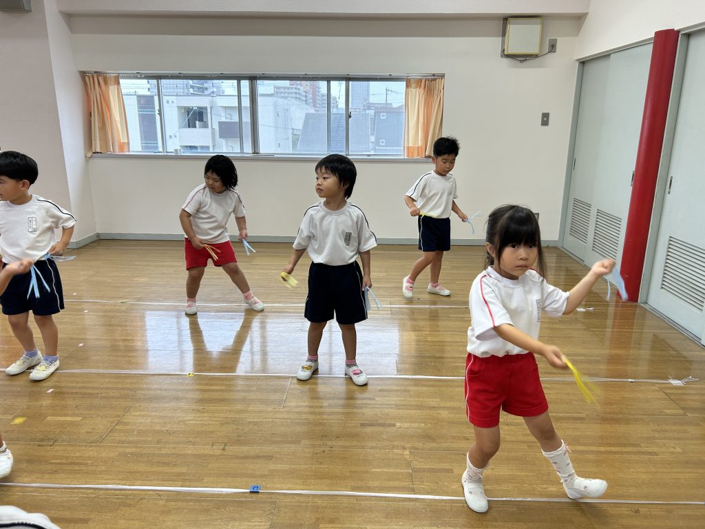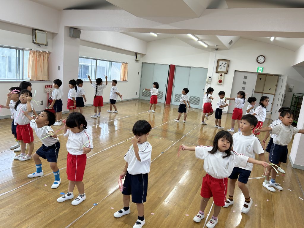 4歳児クラスは隊形移動など3歳児クラスの時に比べると少し難しいことにも挑戦しています。