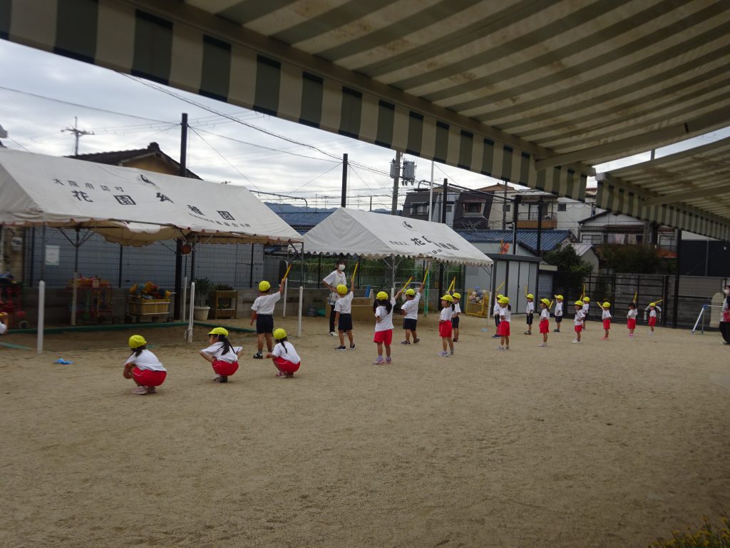 3歳児は、先生の動きを真似して、楽しそうに踊っています。