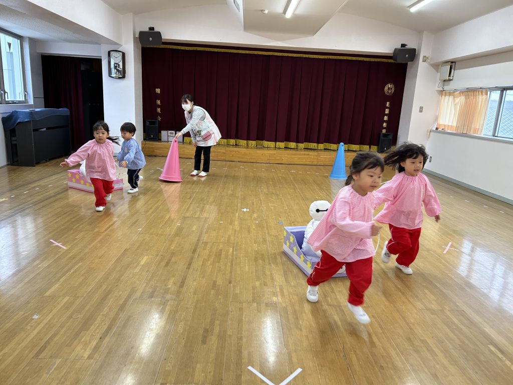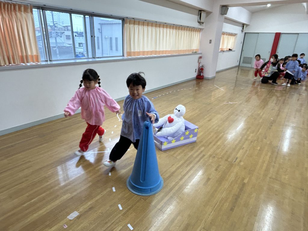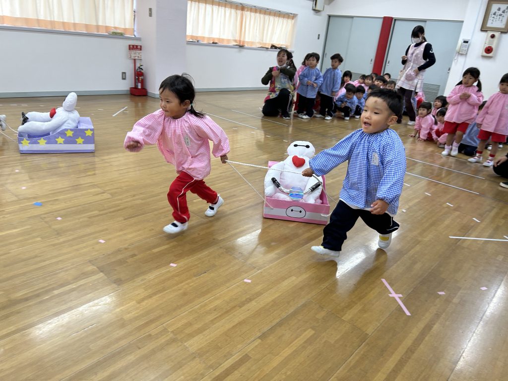 今では走るスピードも少しずつ速くなってきて、最後に「ただ今の結果、1位は〇〇ぐみさん!」と発表すると「やったー!!」とみんな大喜び。競争しているという意味が少しわかってきたかな?という感じでした。