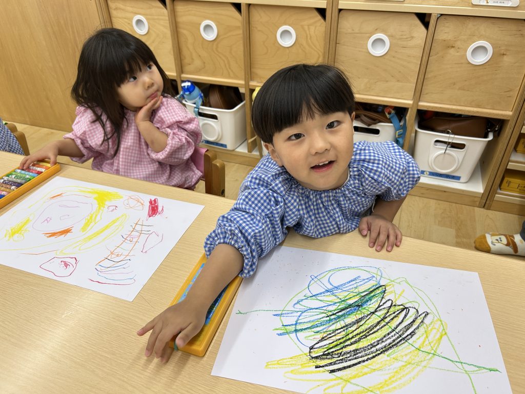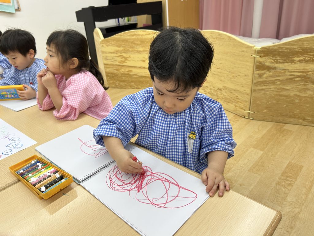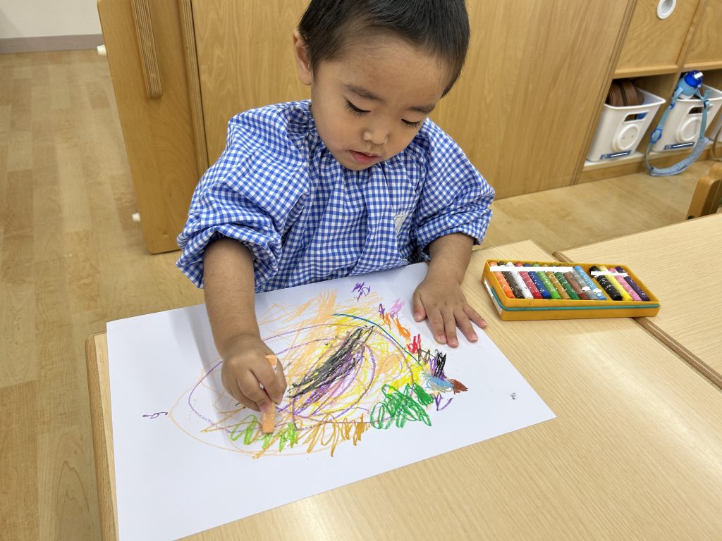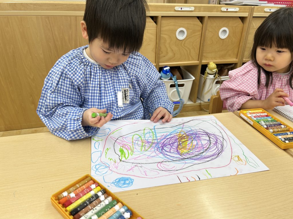 これは〇〇!と想像力を働かせて描くことを楽しむ様子もたくさん見られるようになってきました😊