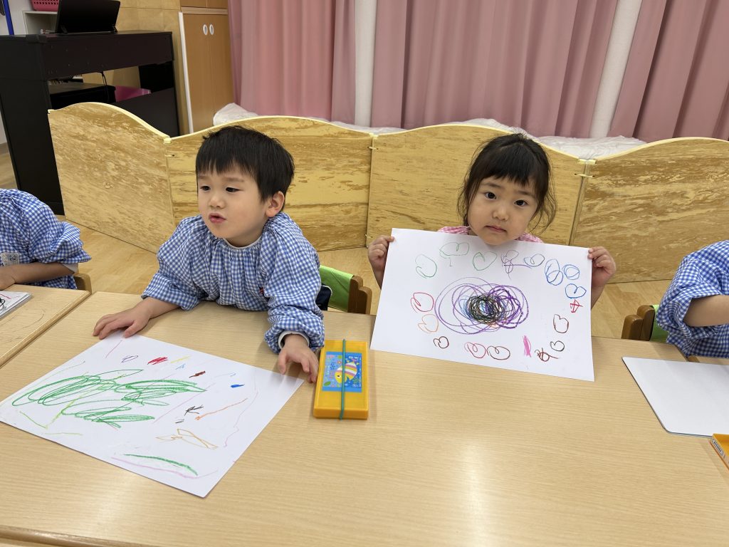 筆圧も強くなり、形のあるものを描くおともだちもでてきました。