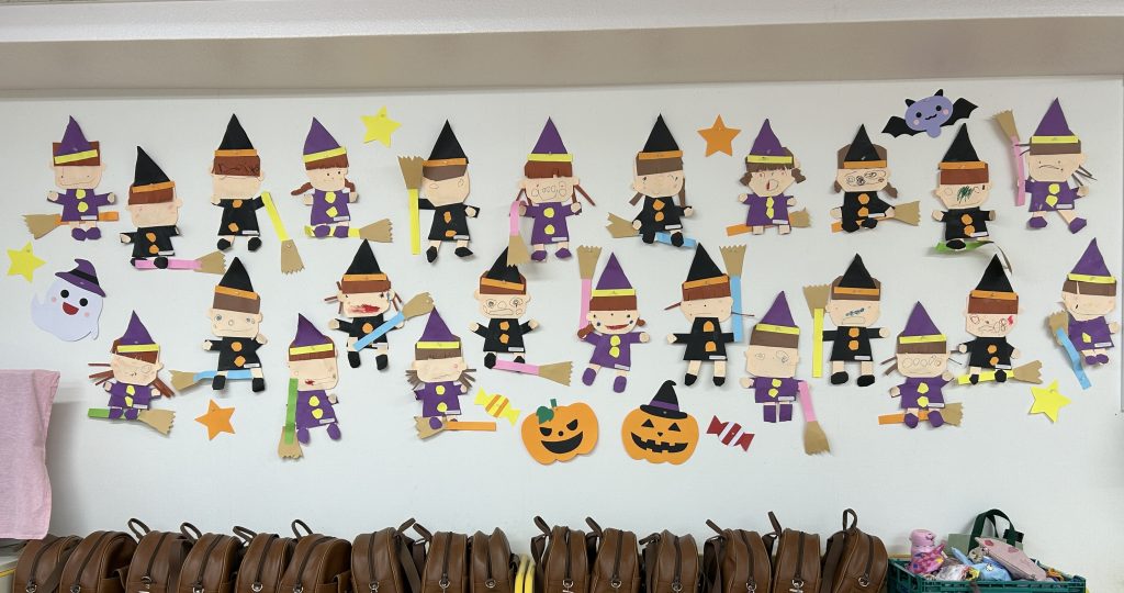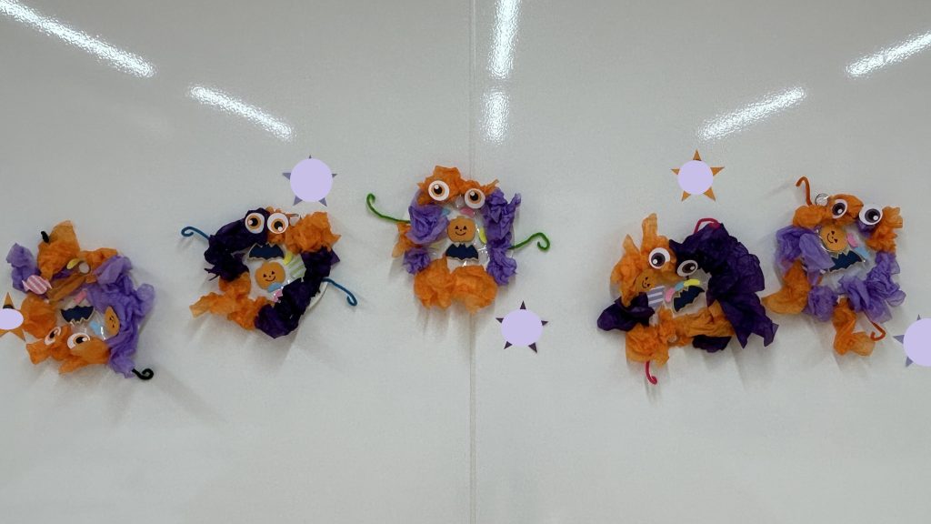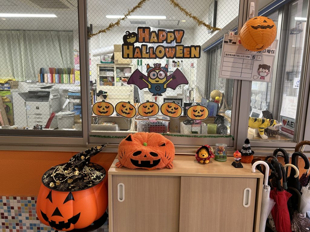 園のピロティでも少しですが、ハロウィンの飾りつけをしていました😊