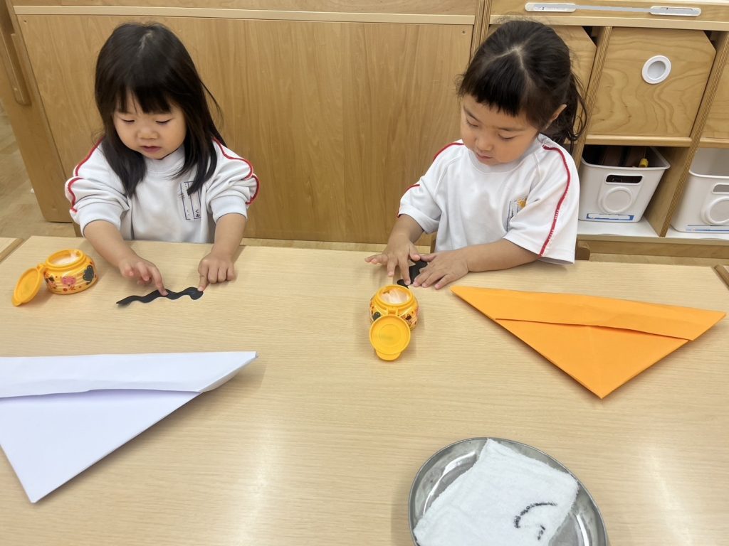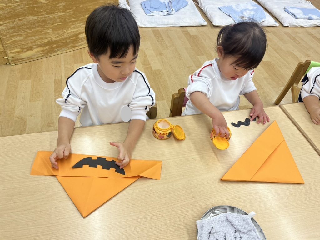 1,2歳児クラスも以前にハロウィン製作を行いました。