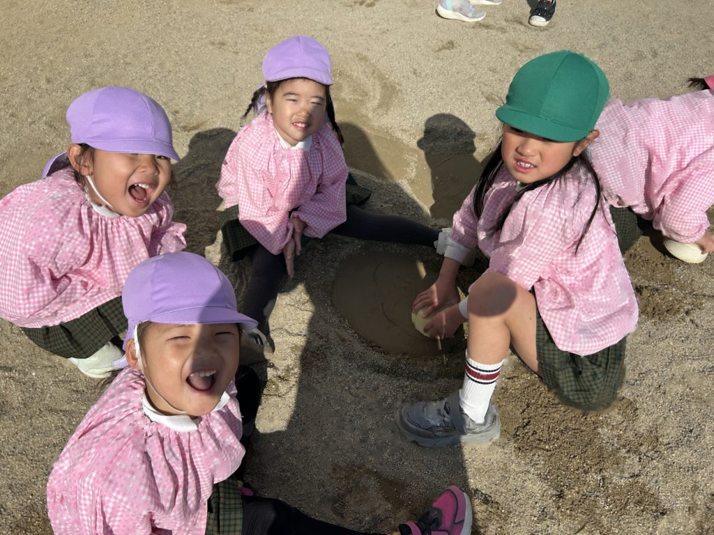 ドッチボールをしたり、穴掘りやごっこ遊びをしたり楽しそうでした。ダンゴムシの赤ちゃんも生まれてきたようで、虫探しをしているおともだちもたくさんいました。
