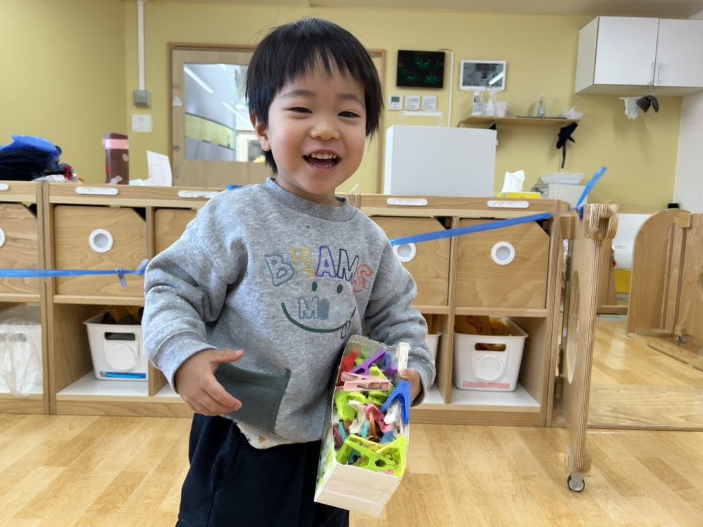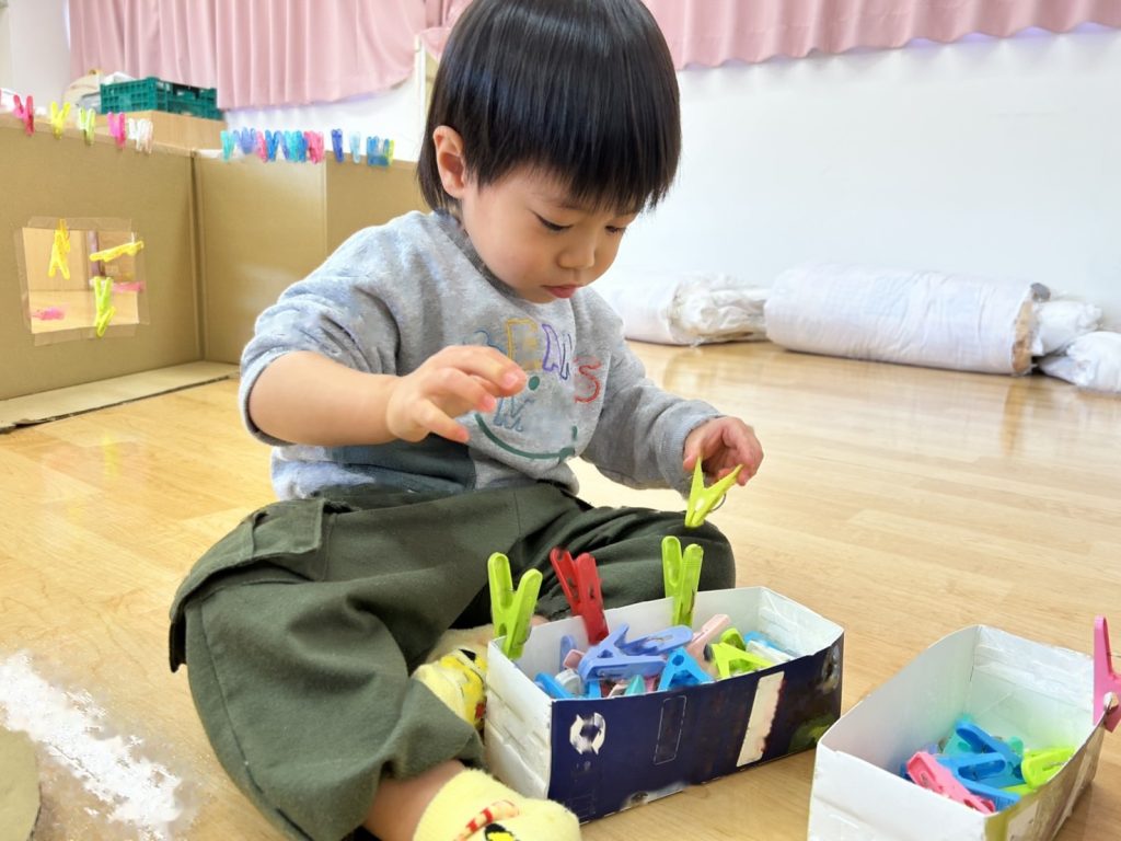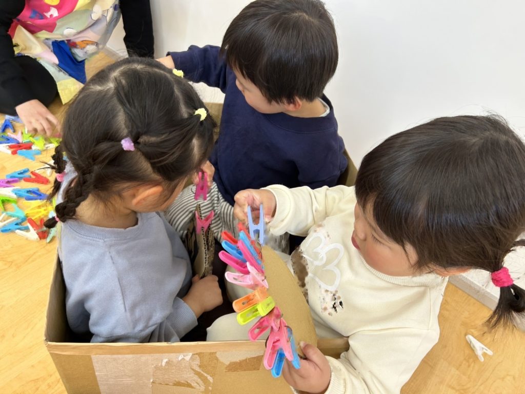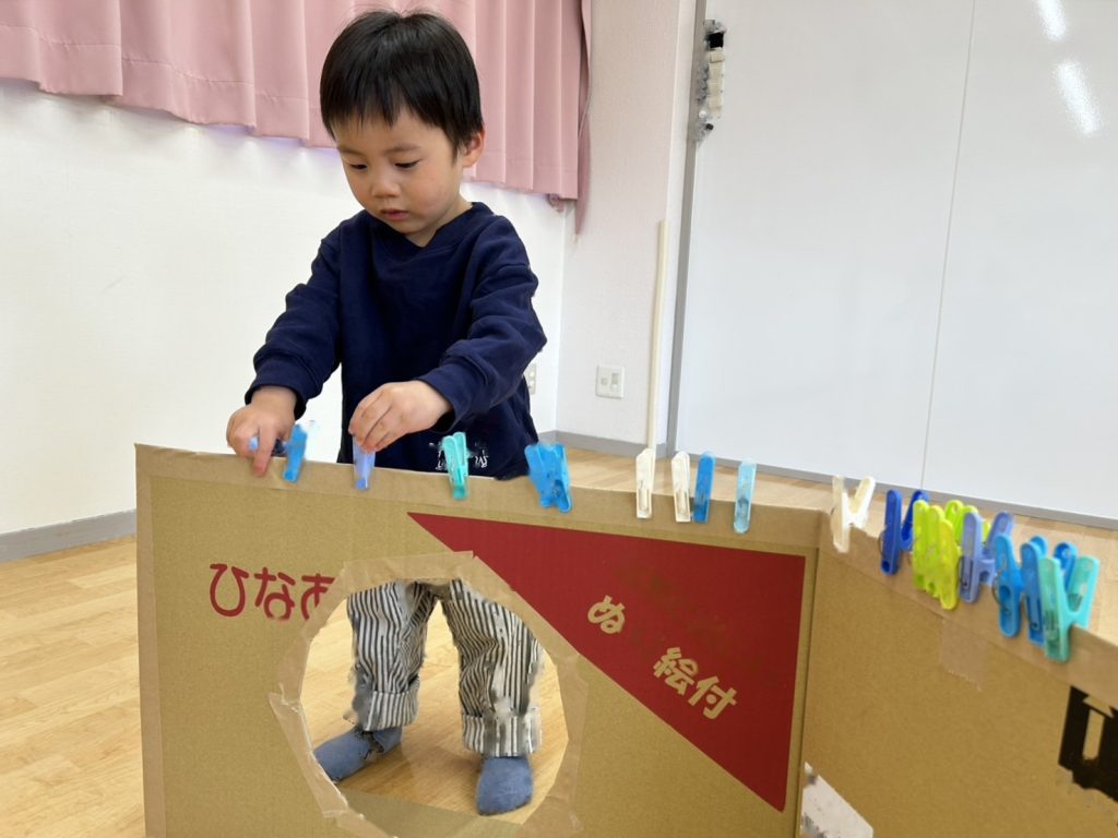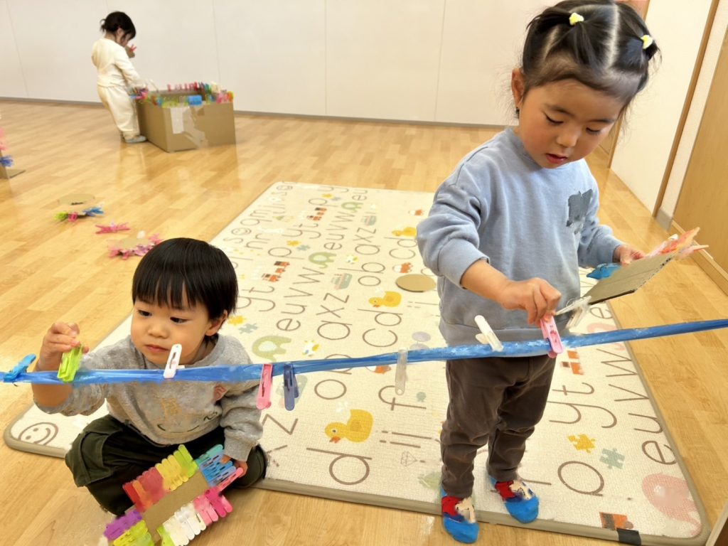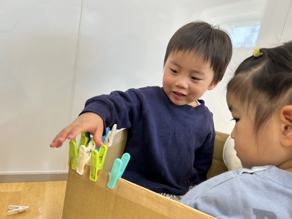 指先の力を養うことをねらいとしたせんたくばさみ遊びをしました。