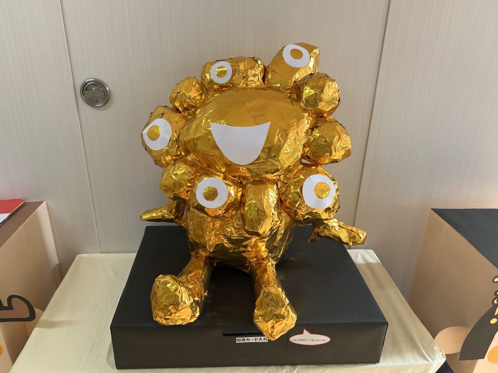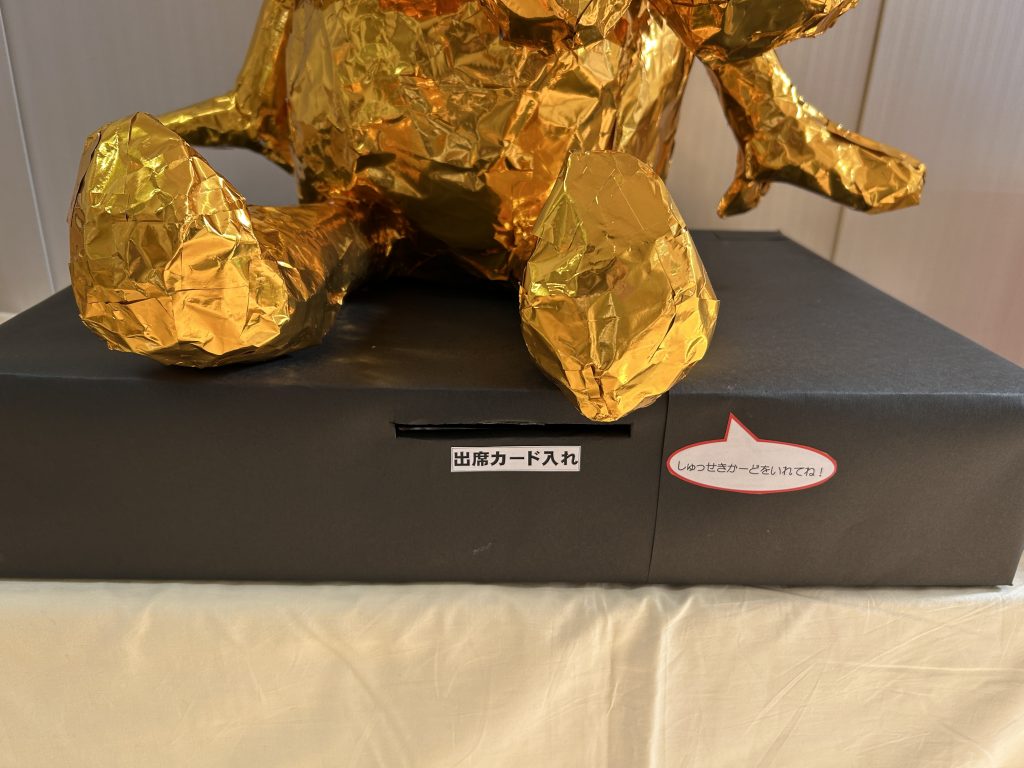 また、3階ホールに上がる際、階段前(2階踊り場)にチケットを入れる金のミャクミャクを設置していますので、出席カードを入れてから3階ホールにお上がりください。