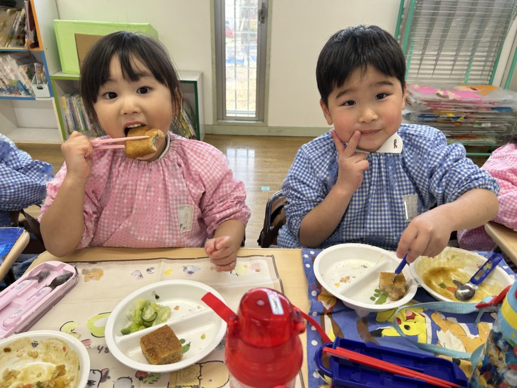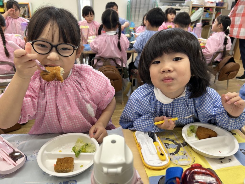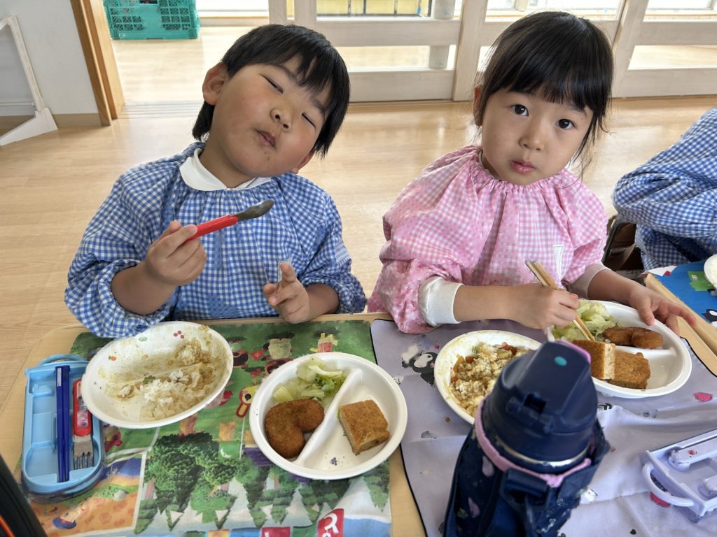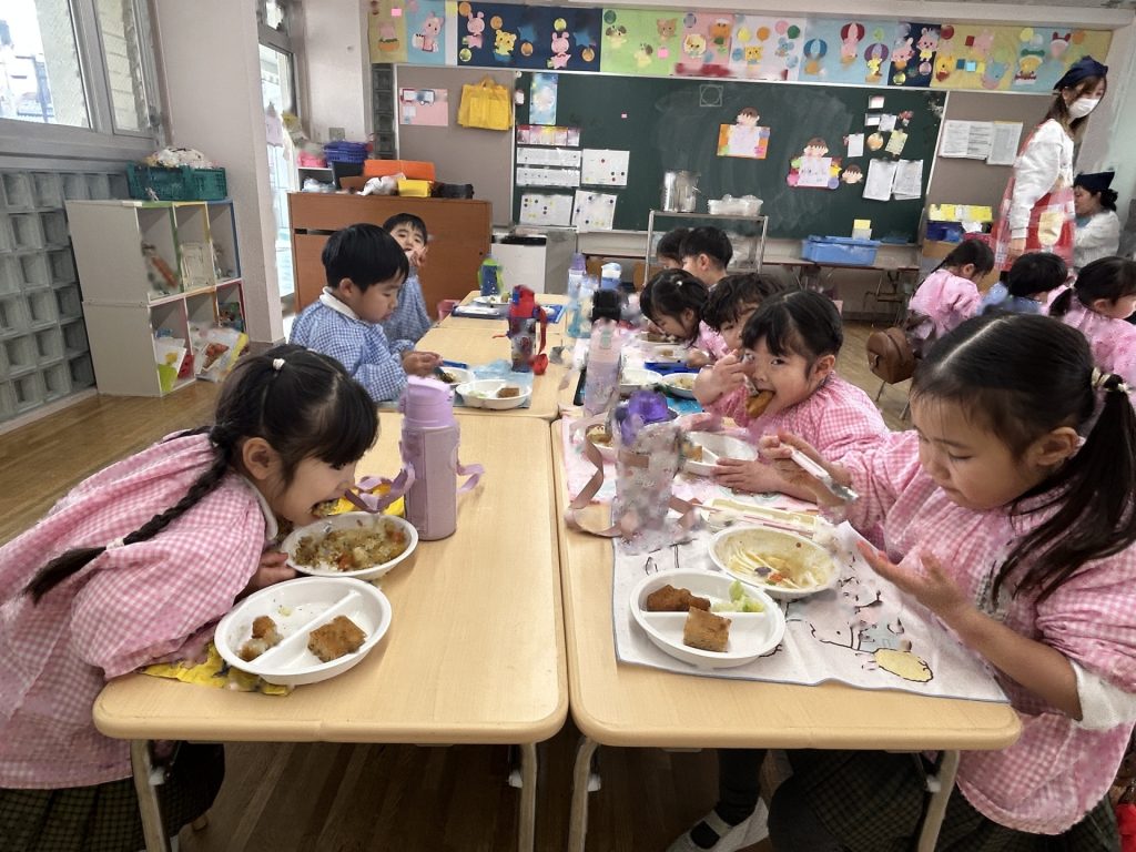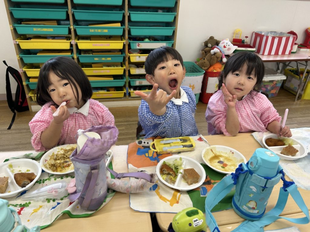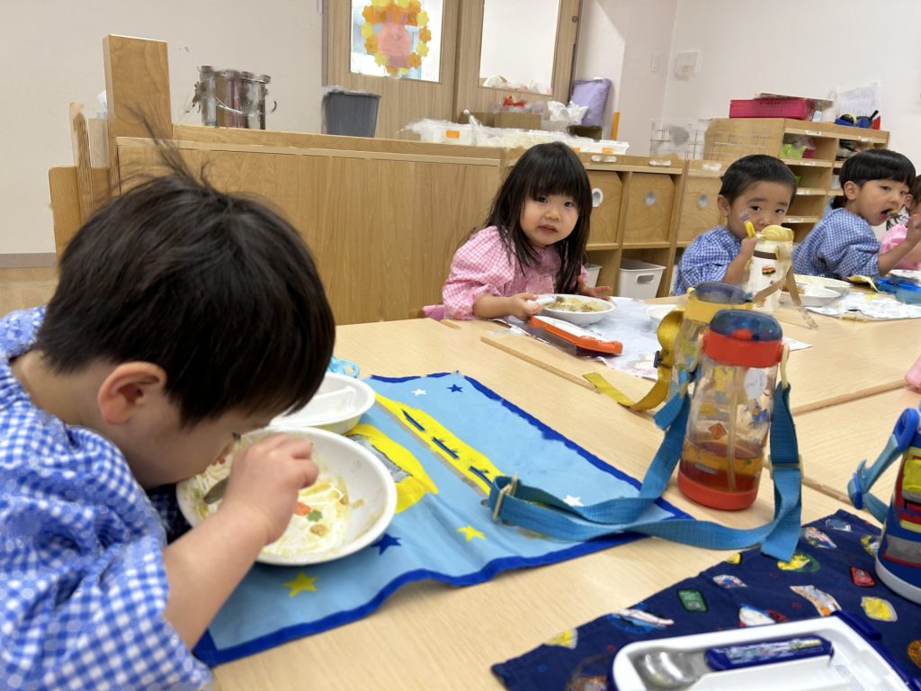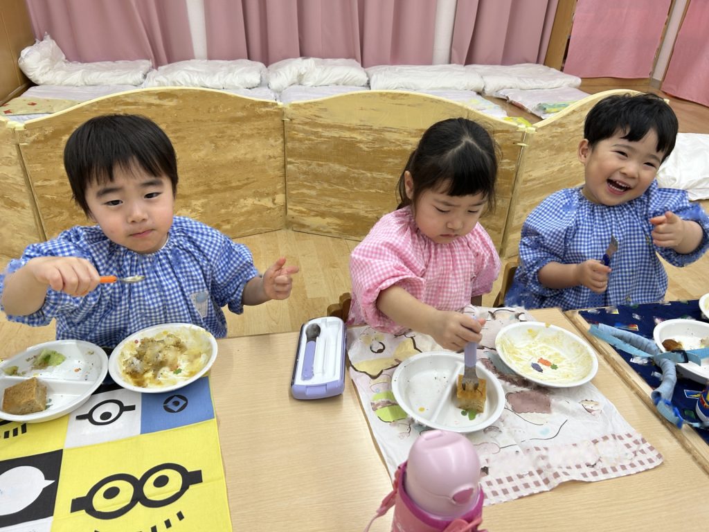 カレーライスは子どもたちに大人気でいつも完食するのに時間が掛かるおともだちもカレーの日はペロッと完食しています。
